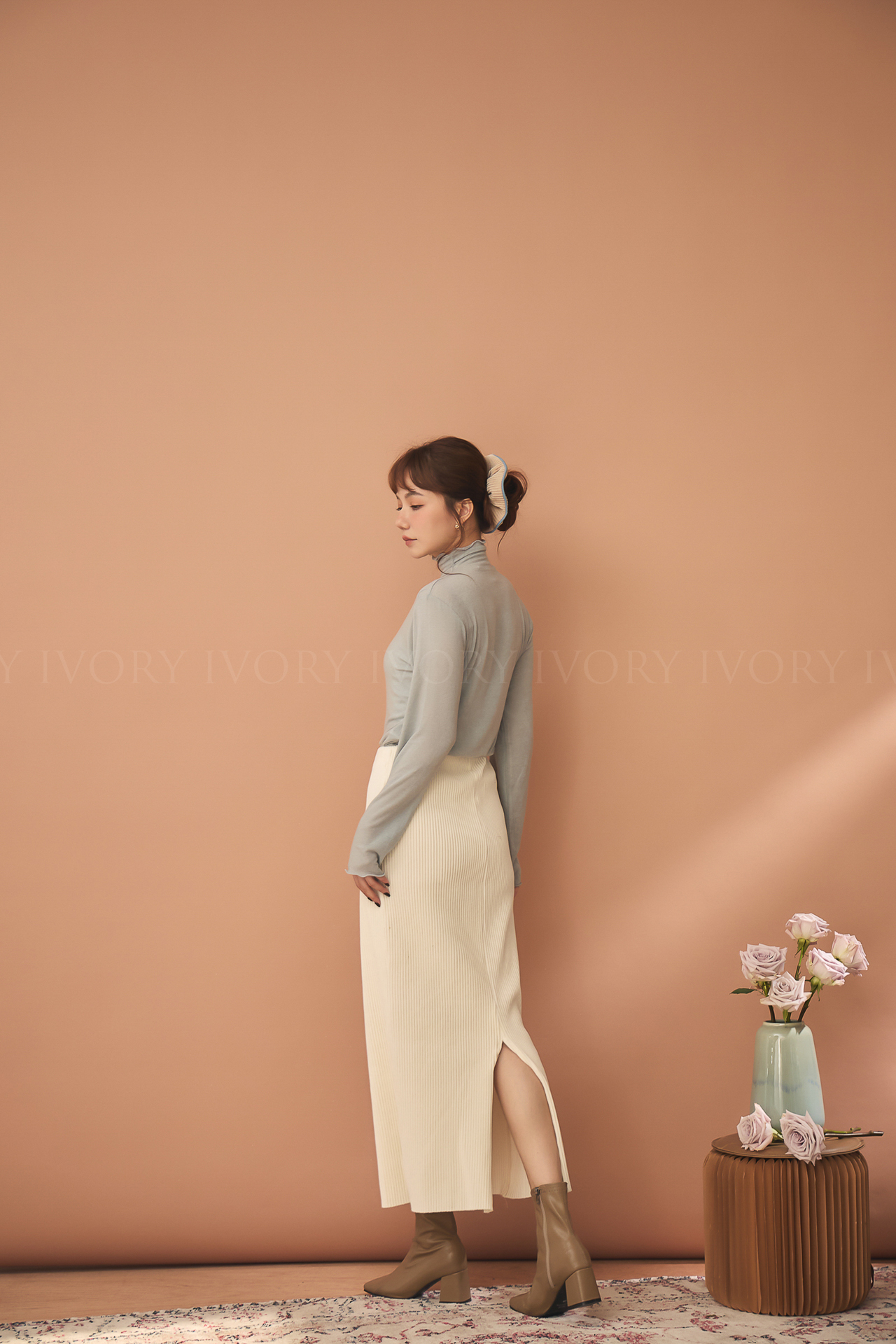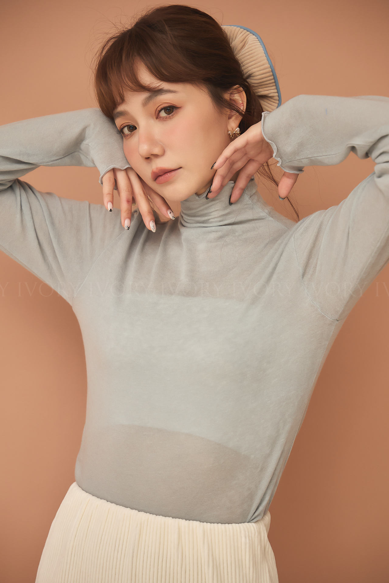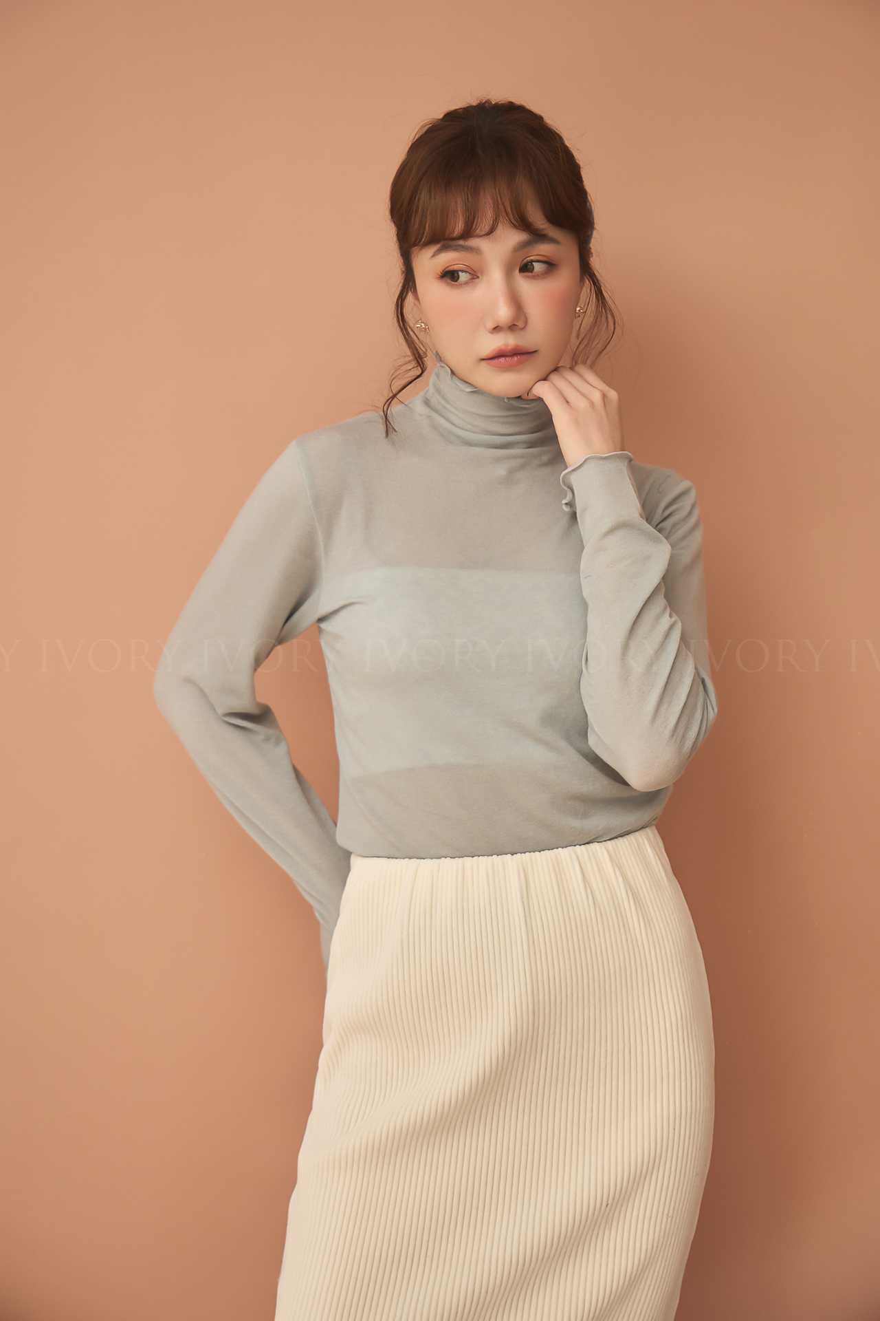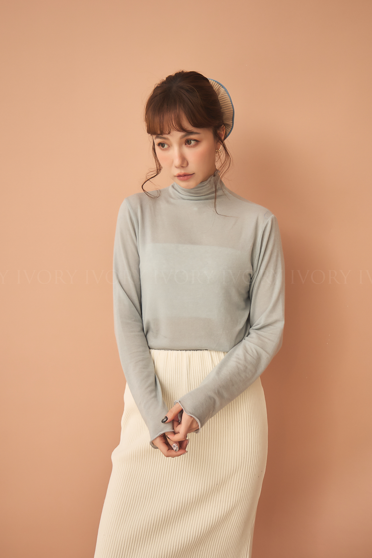 D51214捲捲波浪滾邊羊毛高領內搭
