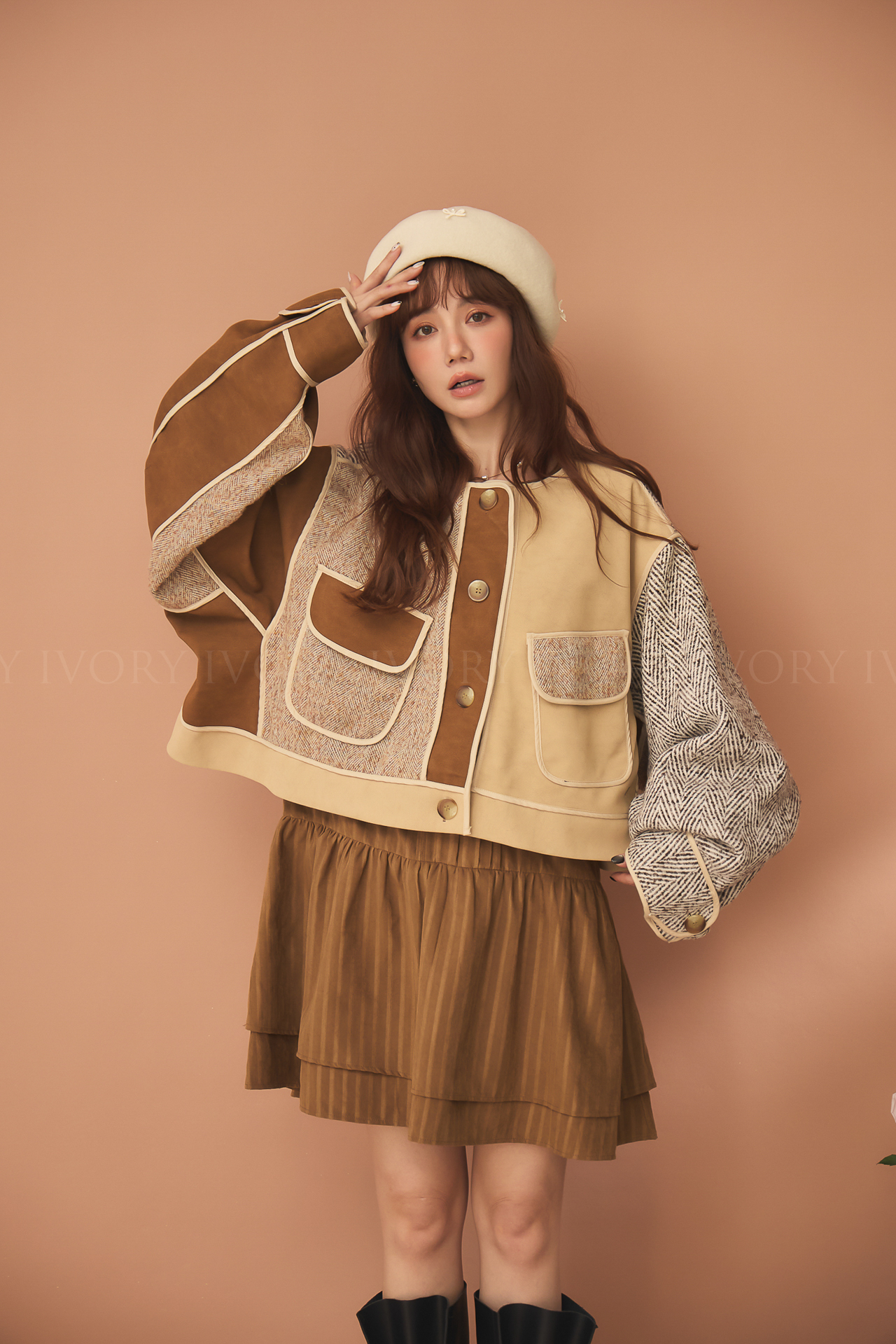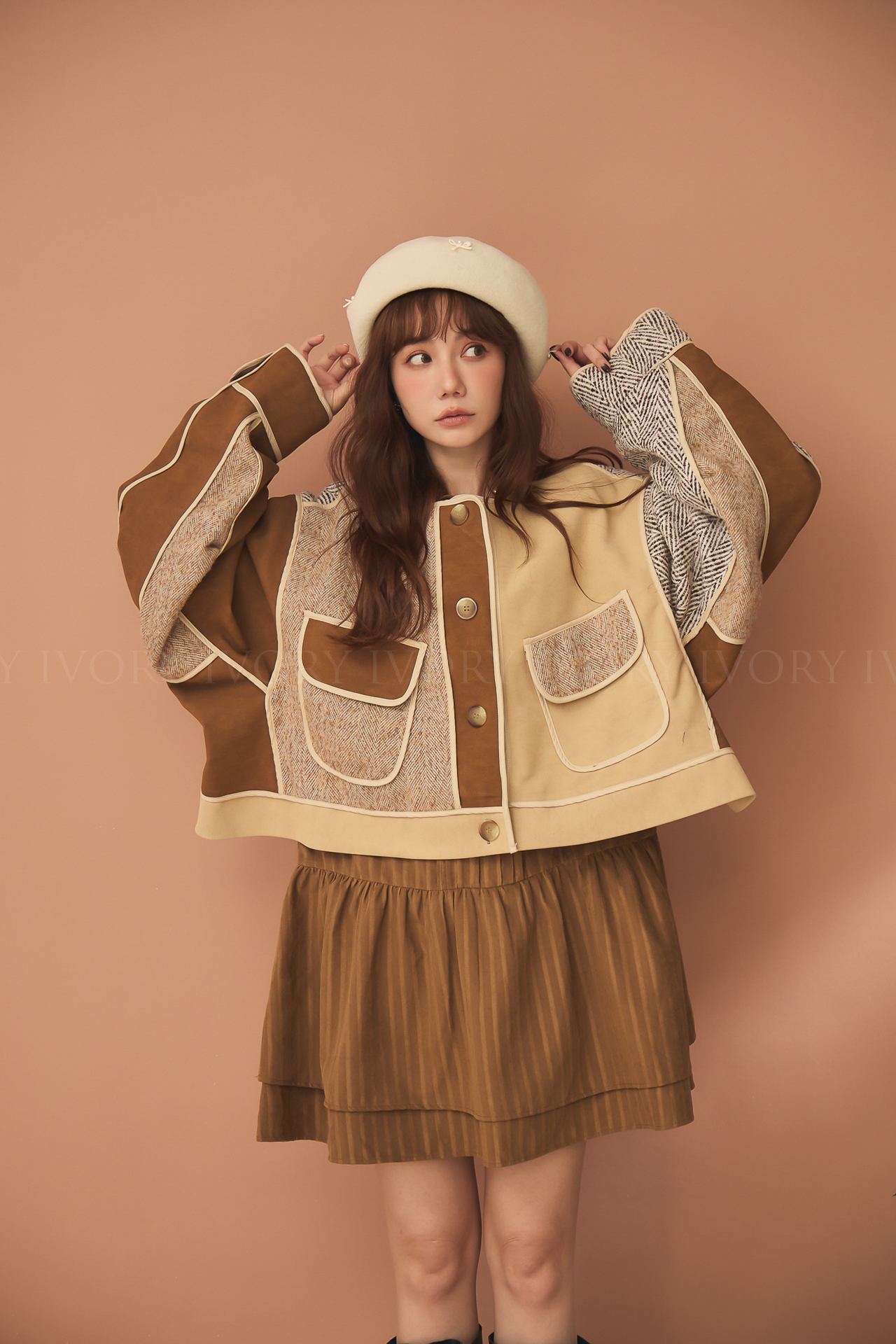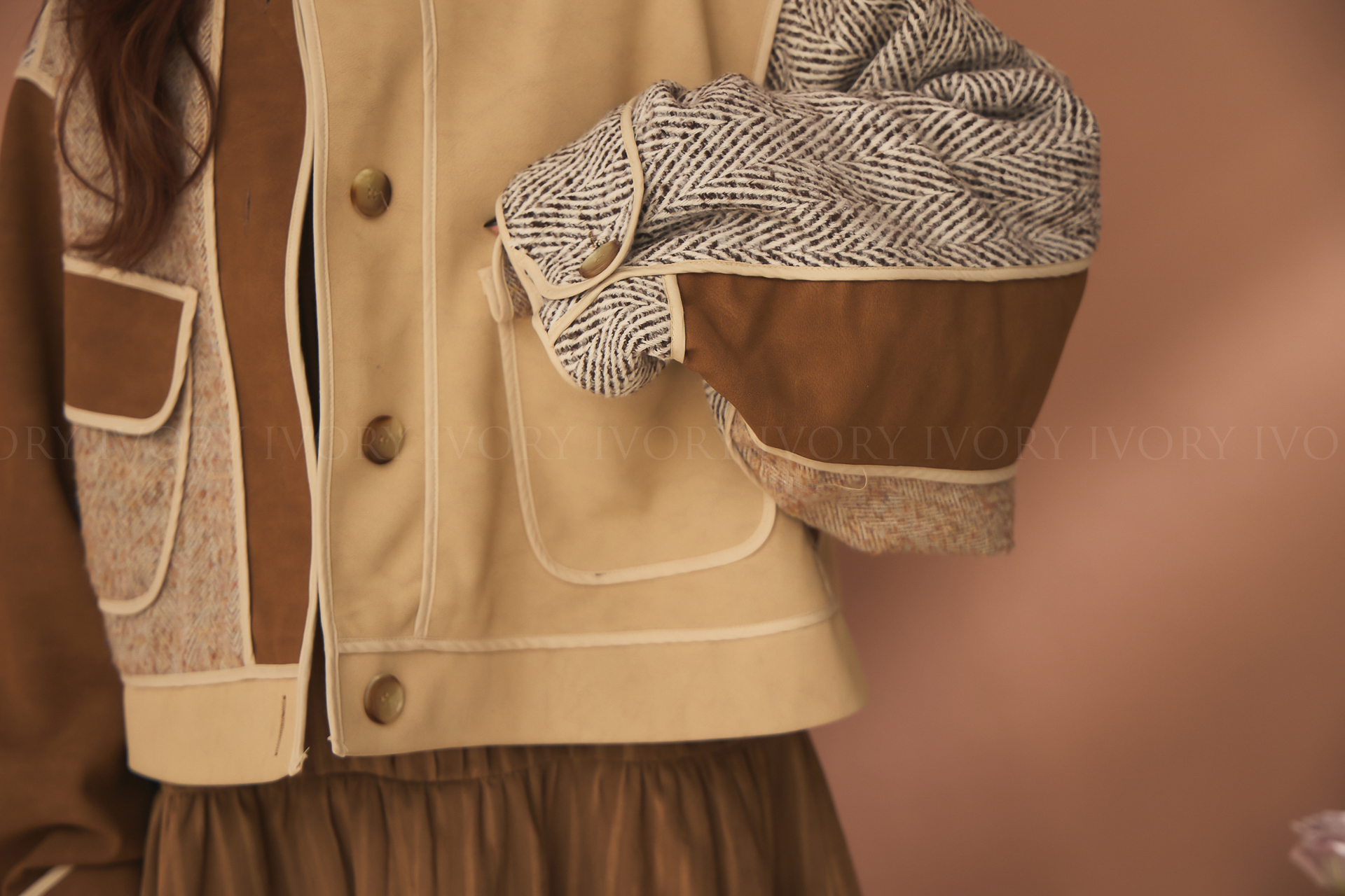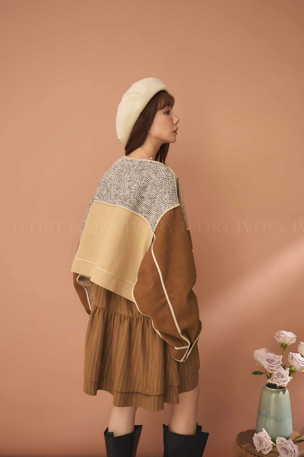 D51242超美設計師款撞色異材質拼接外套[謝琦琦清單]
