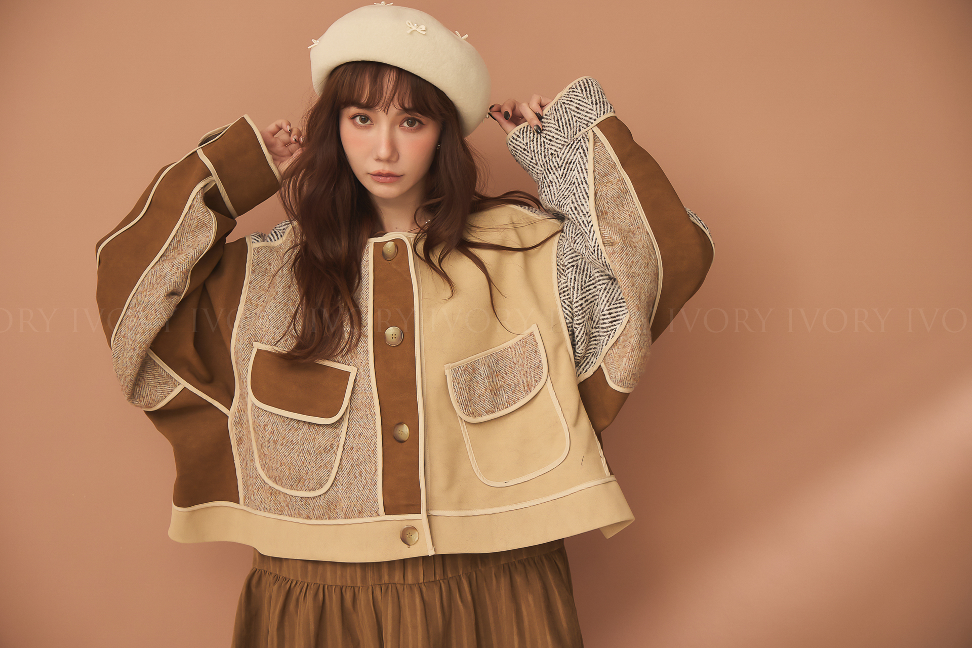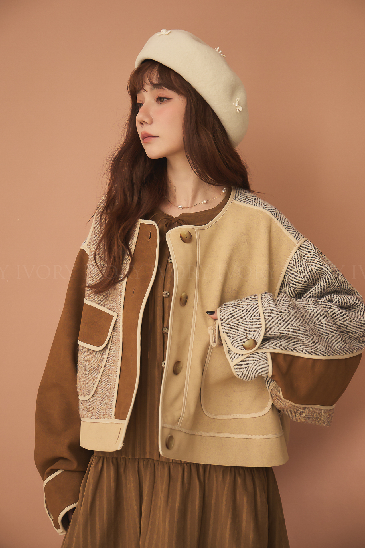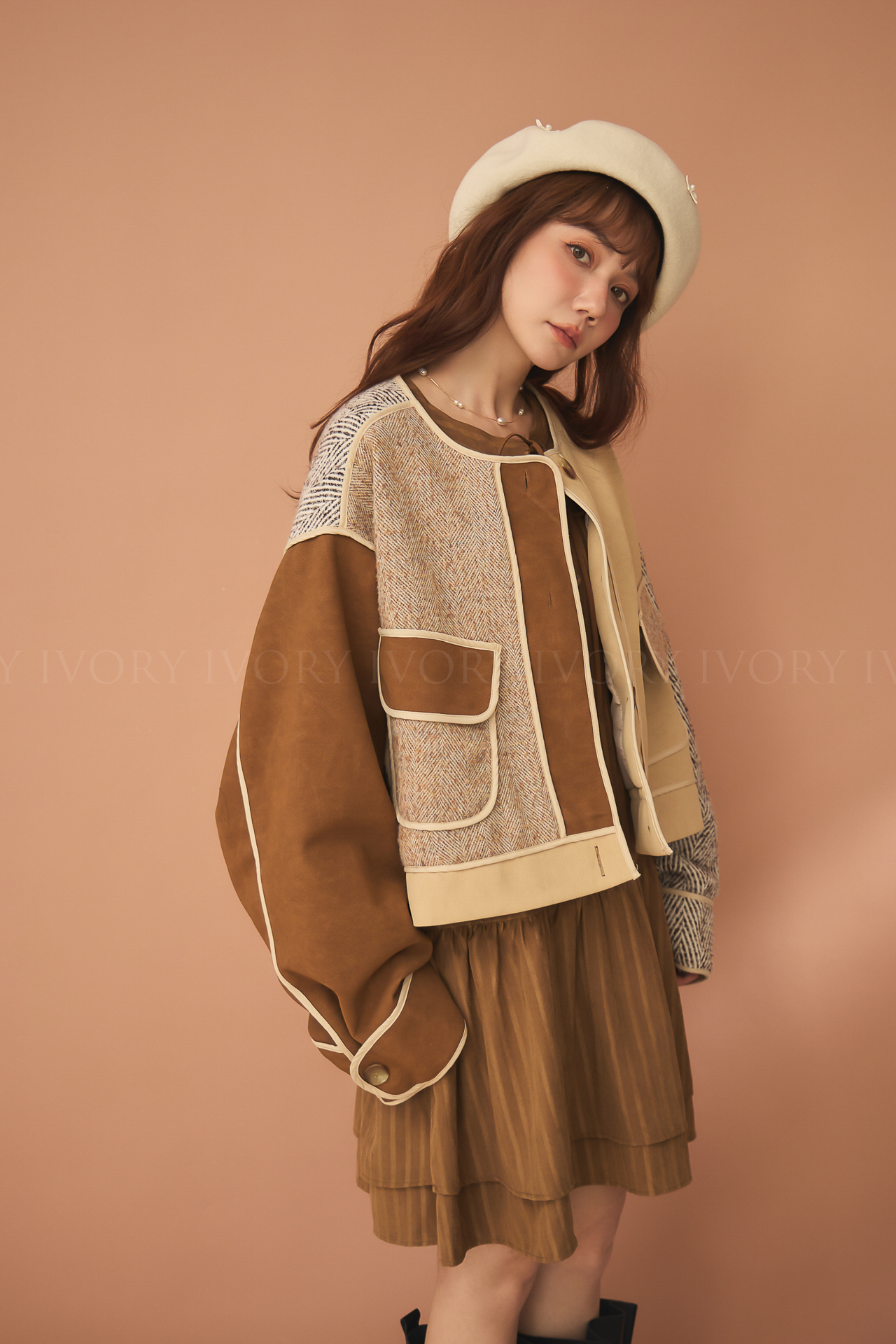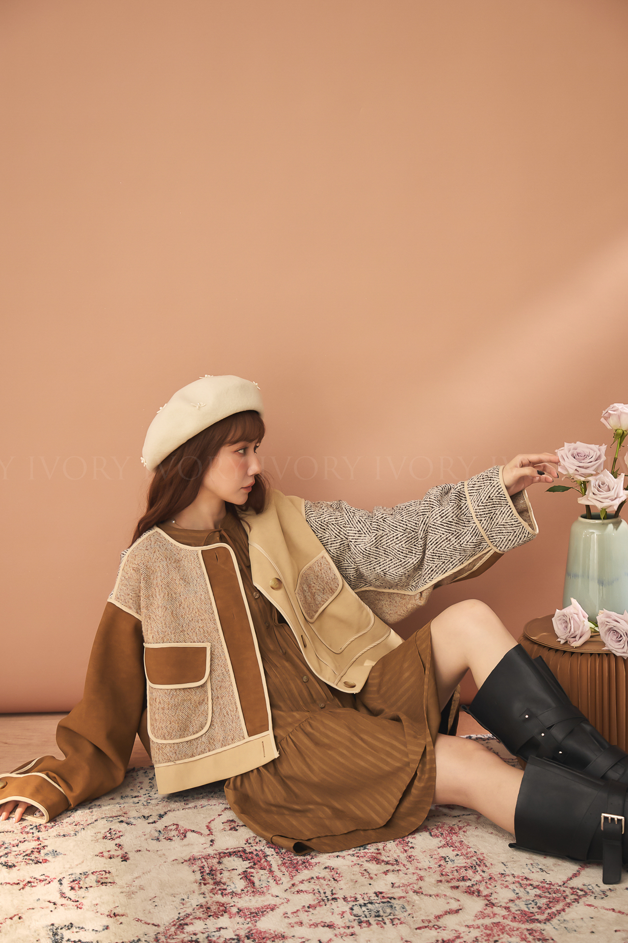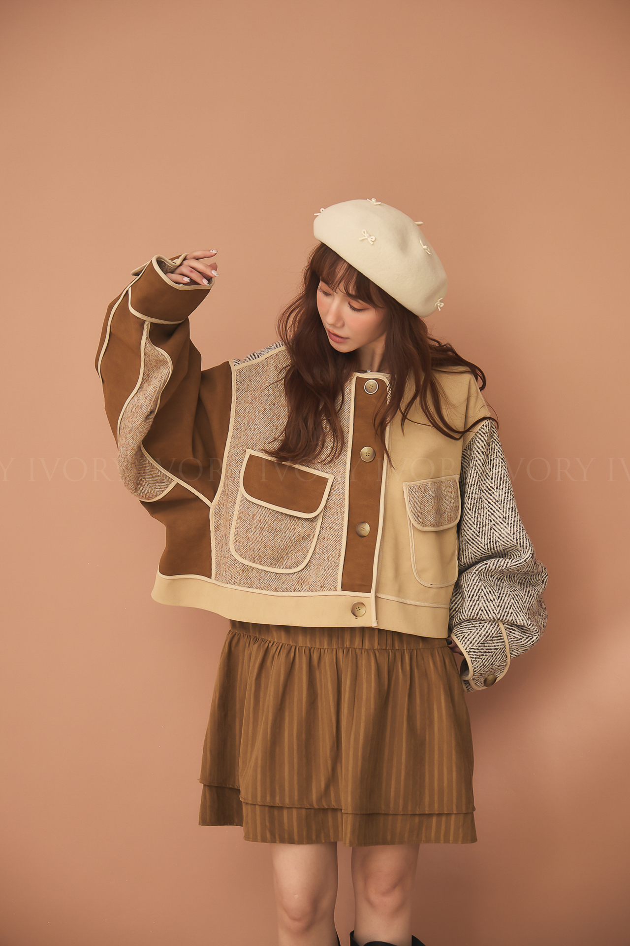 D51242超美設計師款撞色異材質拼接外套[謝琦琦清單]