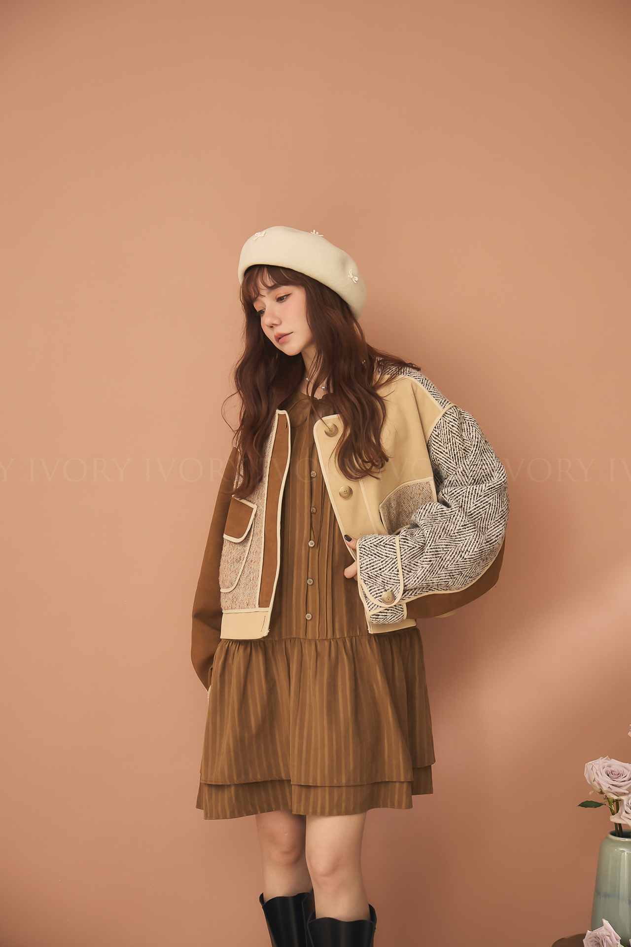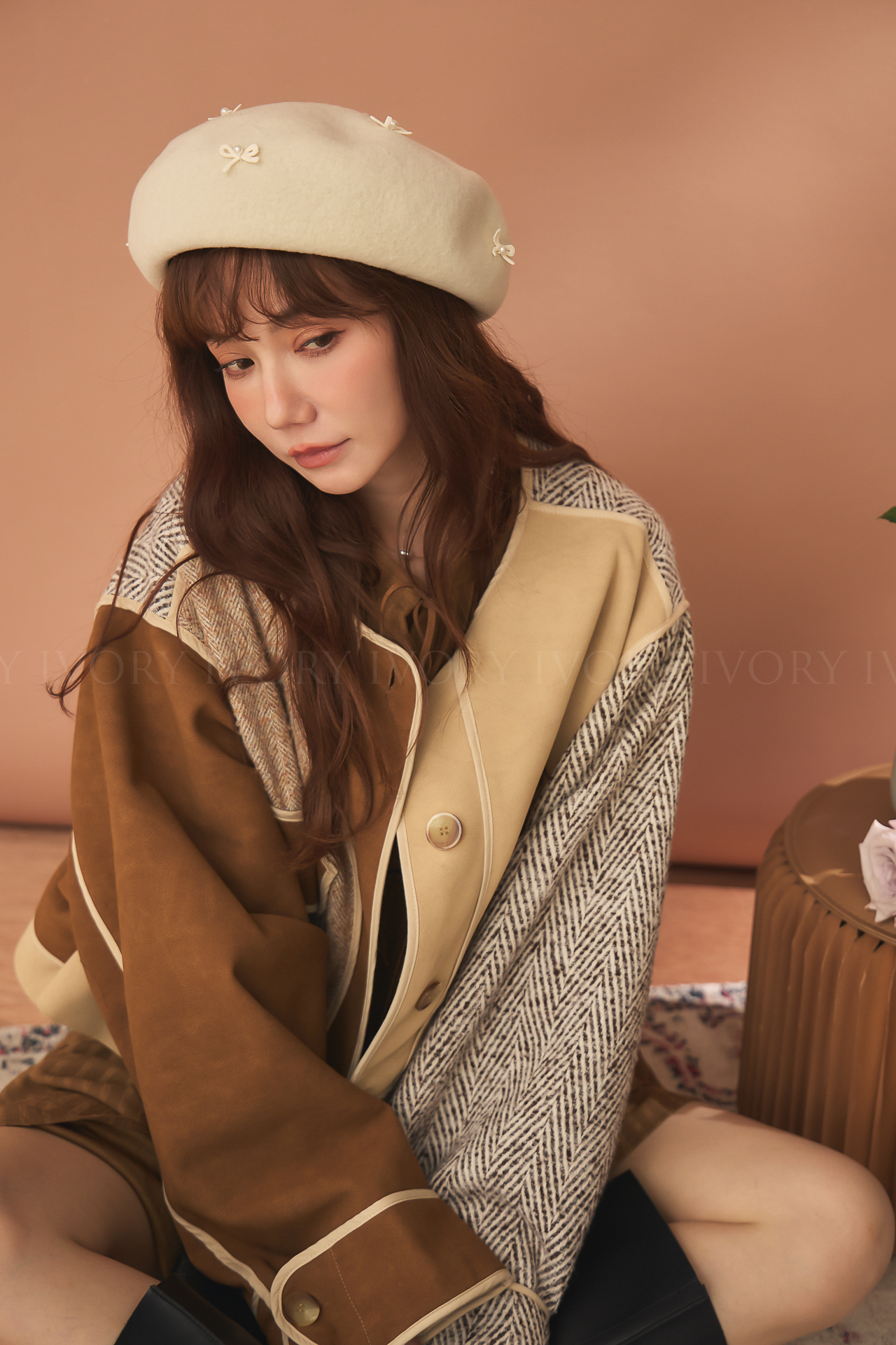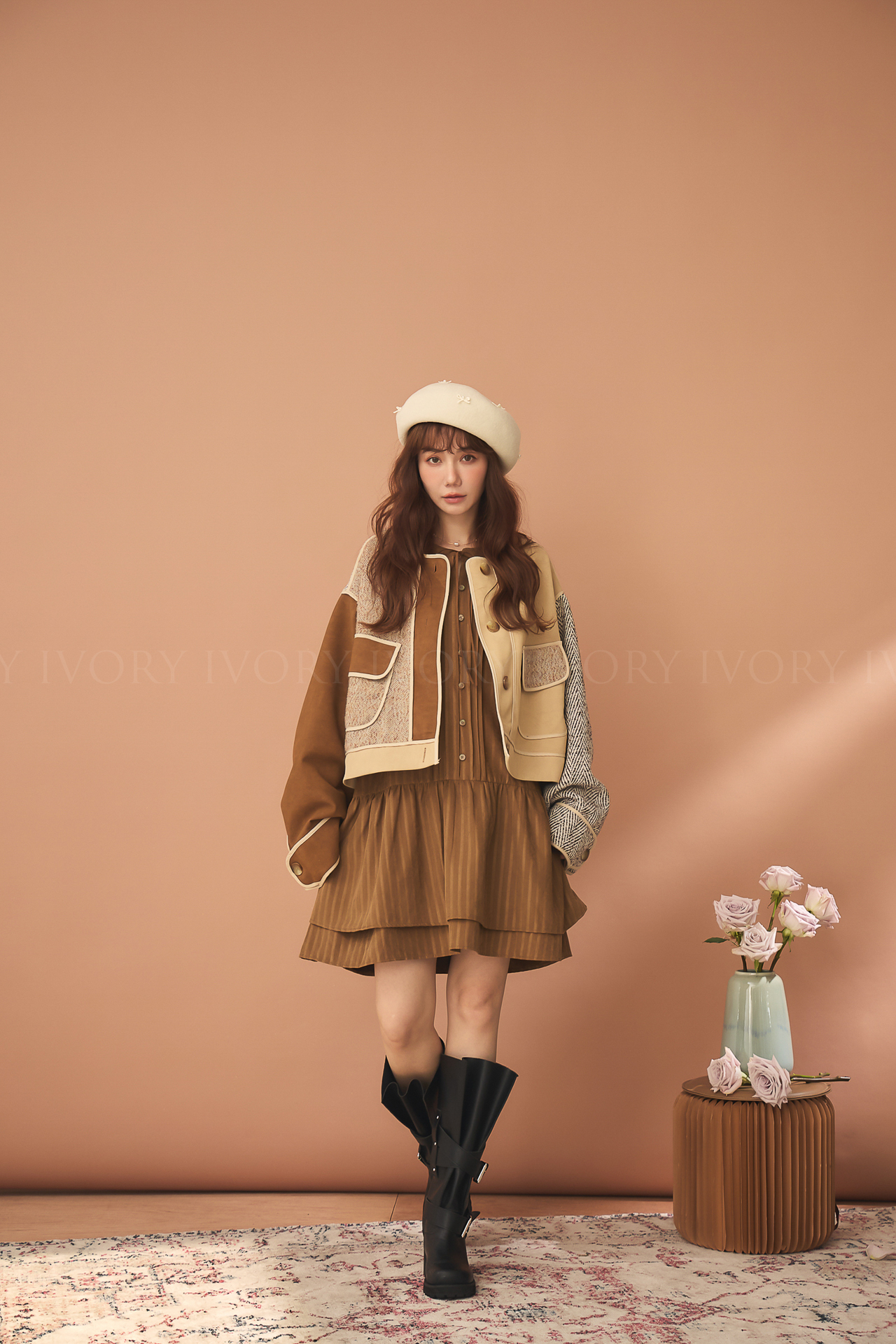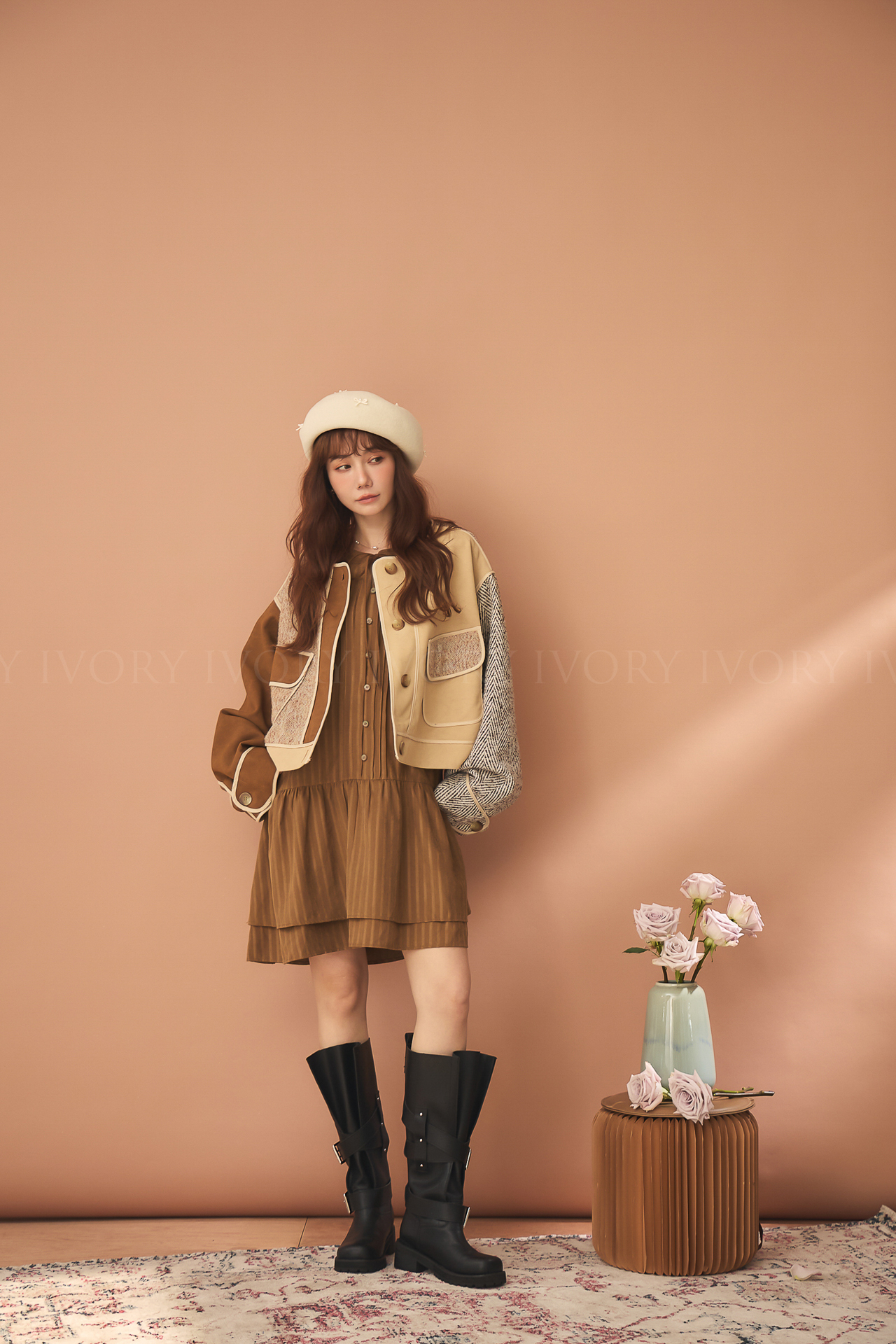 D51242超美設計師款撞色異材質拼接外套[謝琦琦清單]