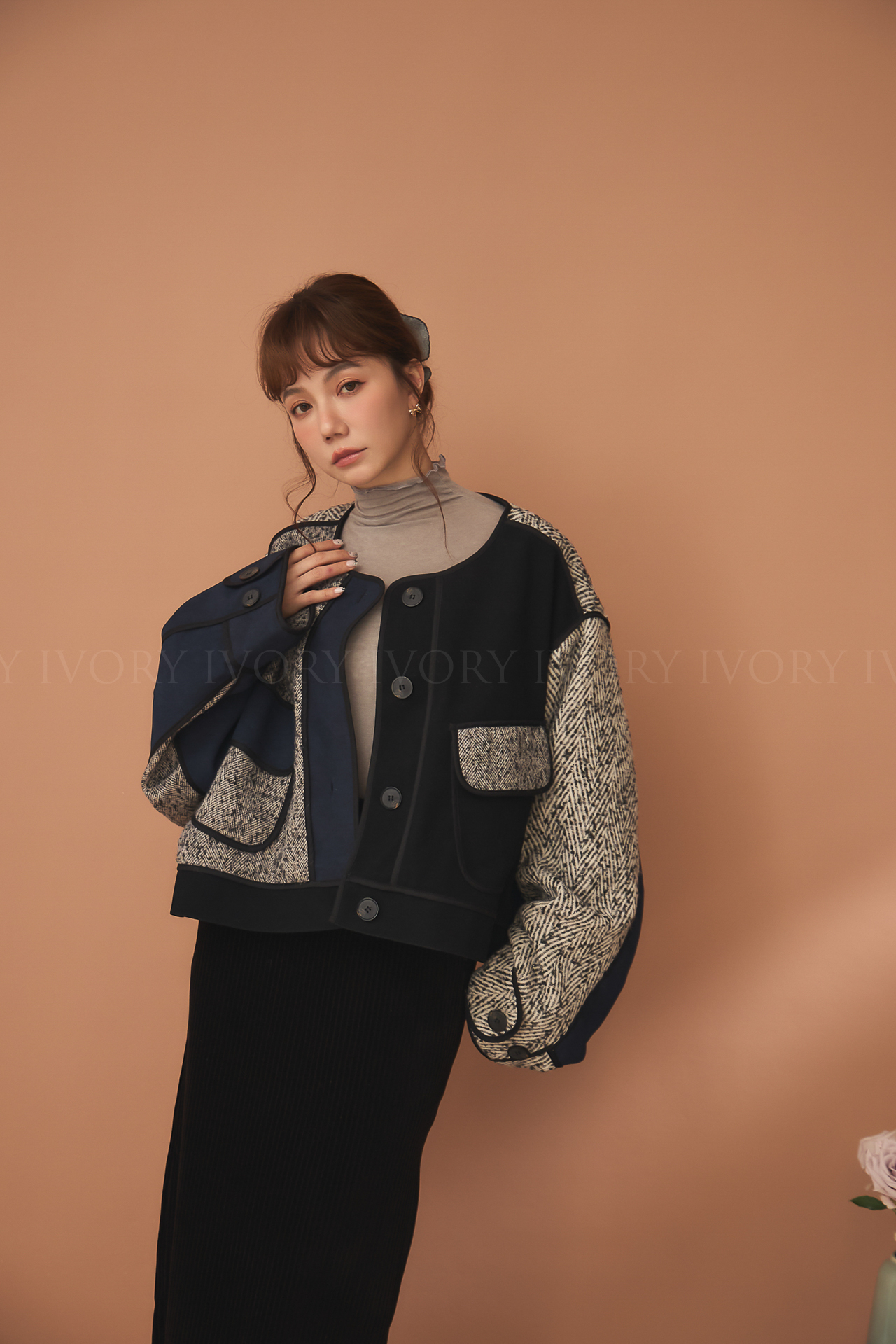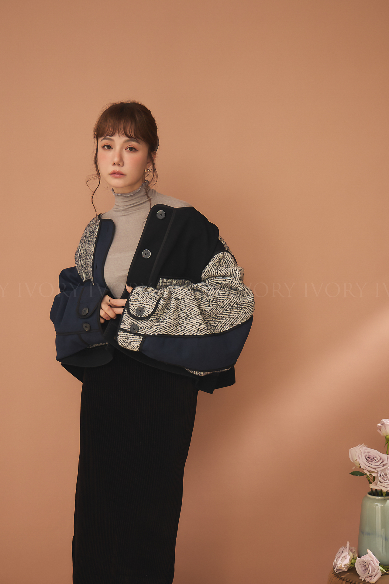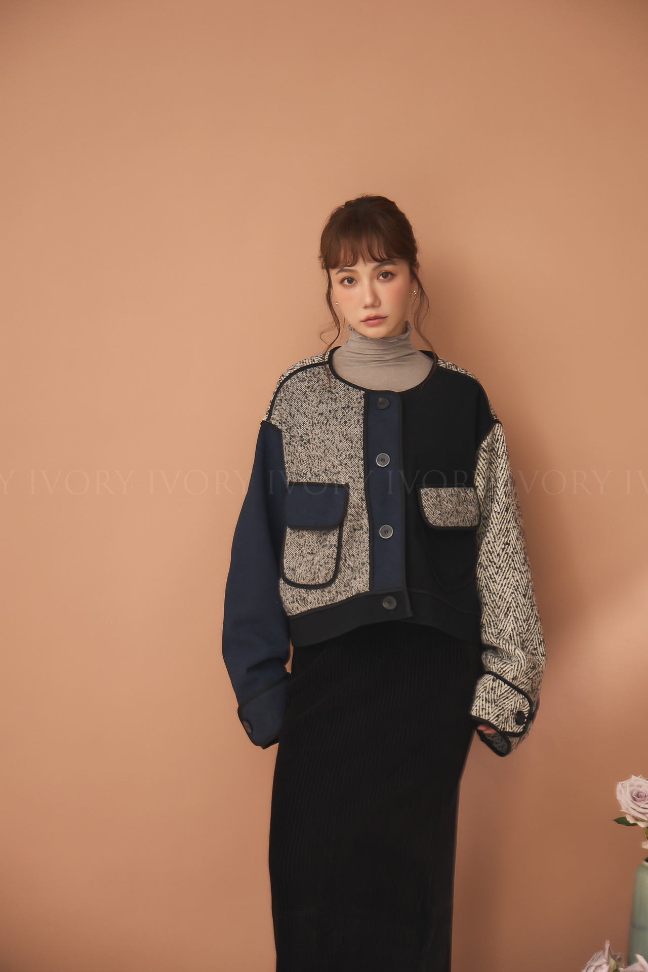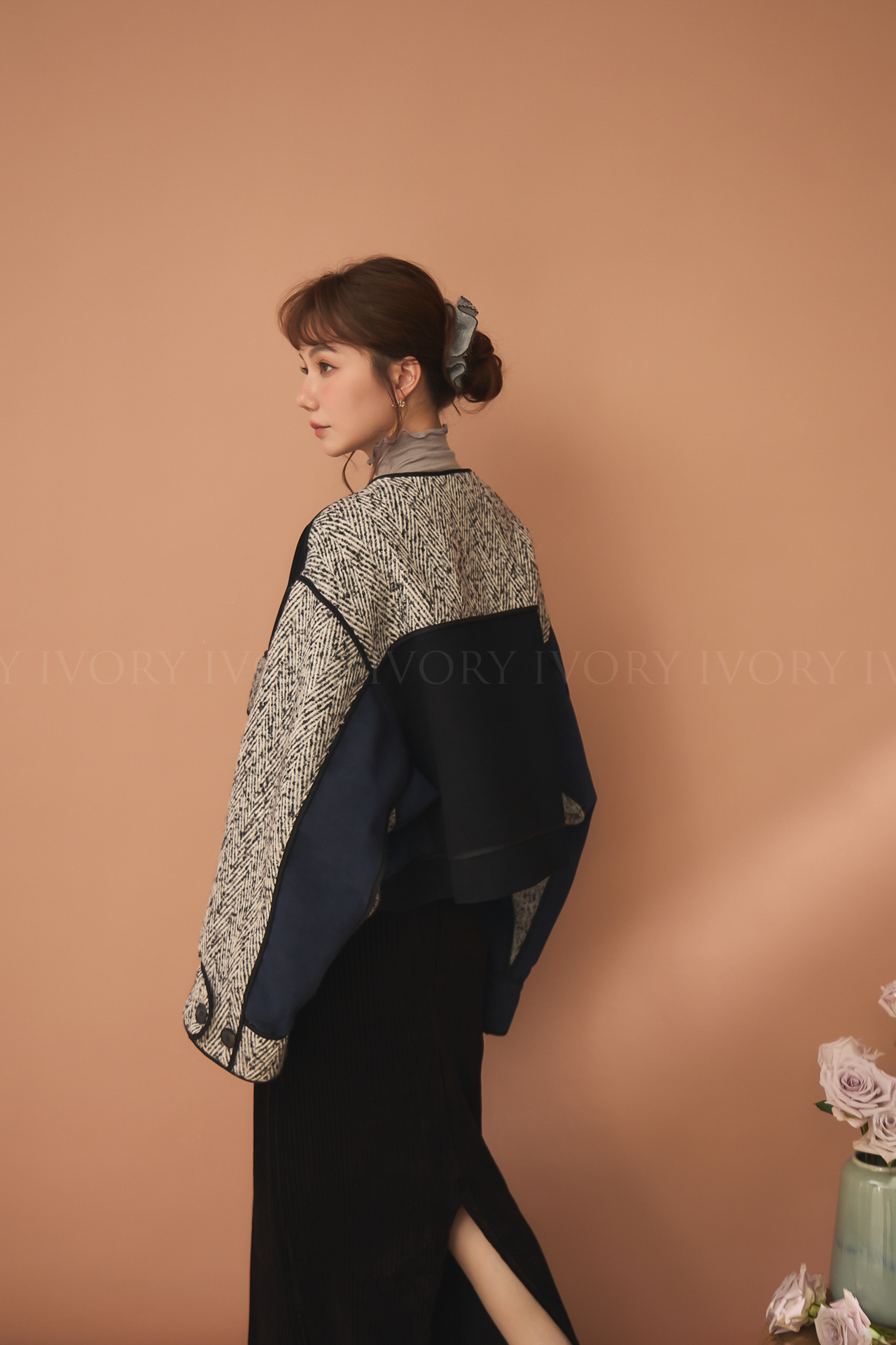 D51242超美設計師款撞色異材質拼接外套[謝琦琦清單]