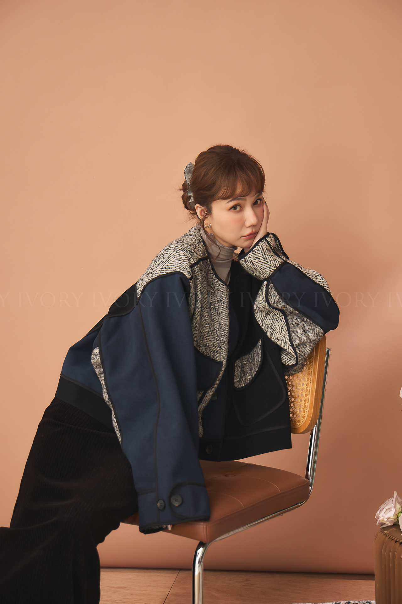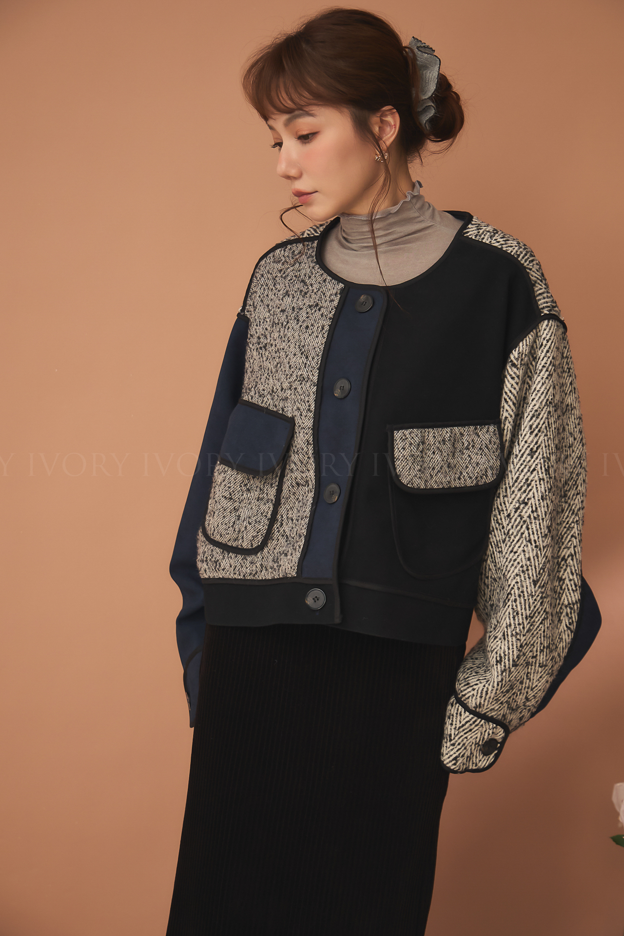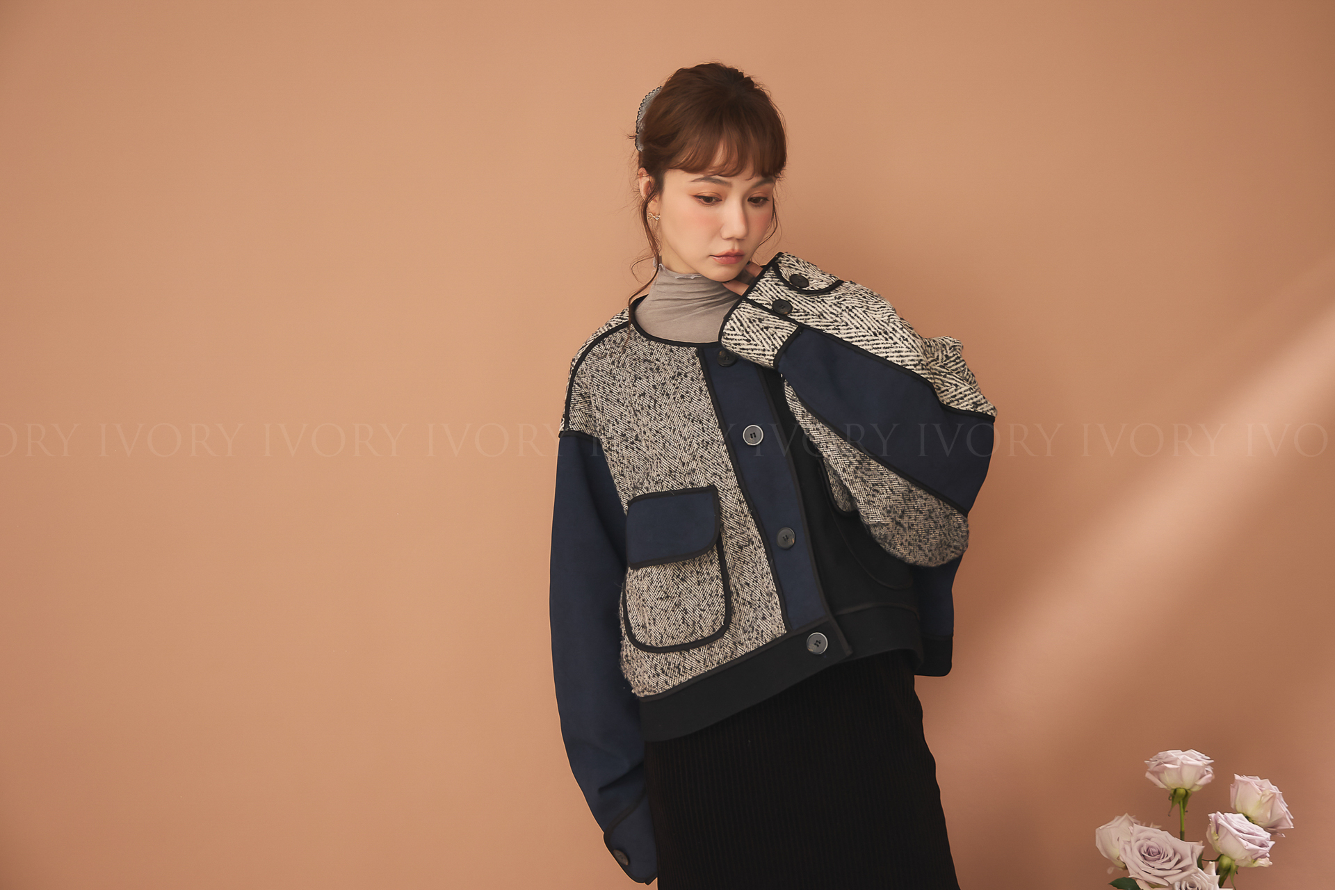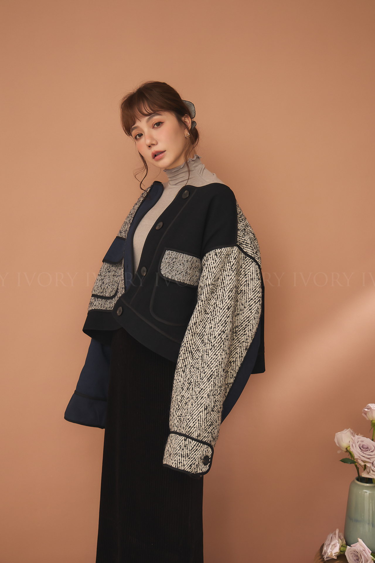 D51242超美設計師款撞色異材質拼接外套[謝琦琦清單]