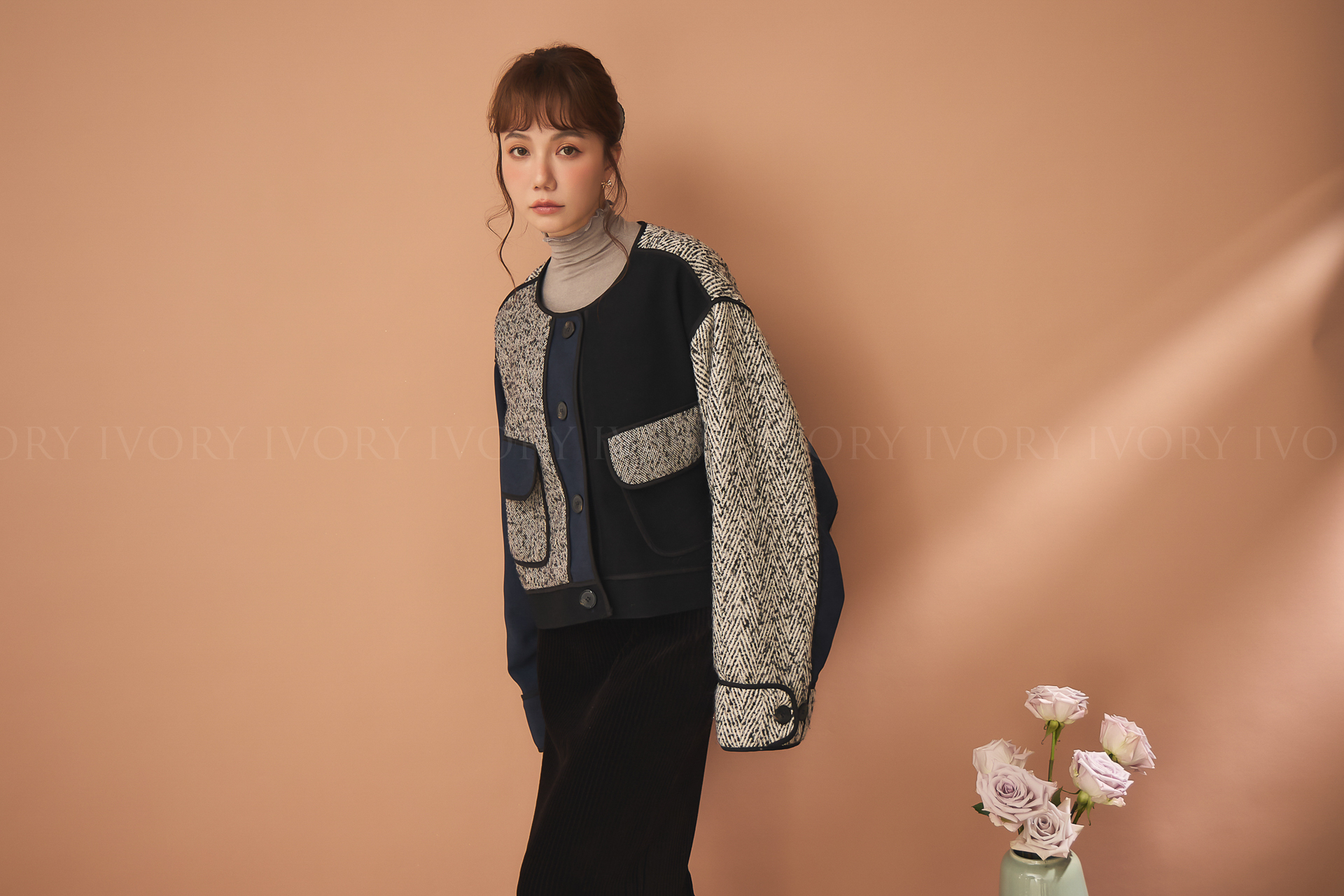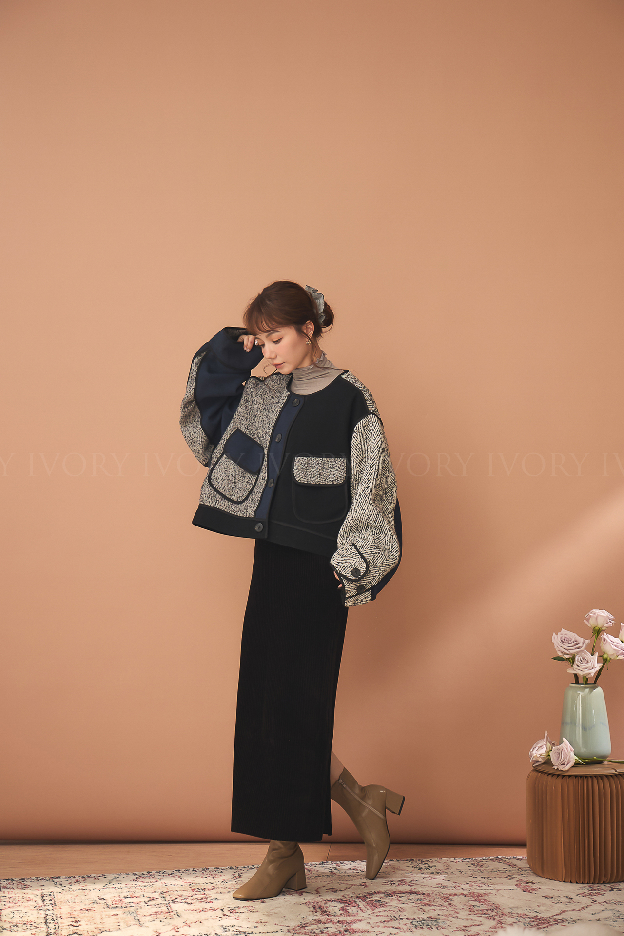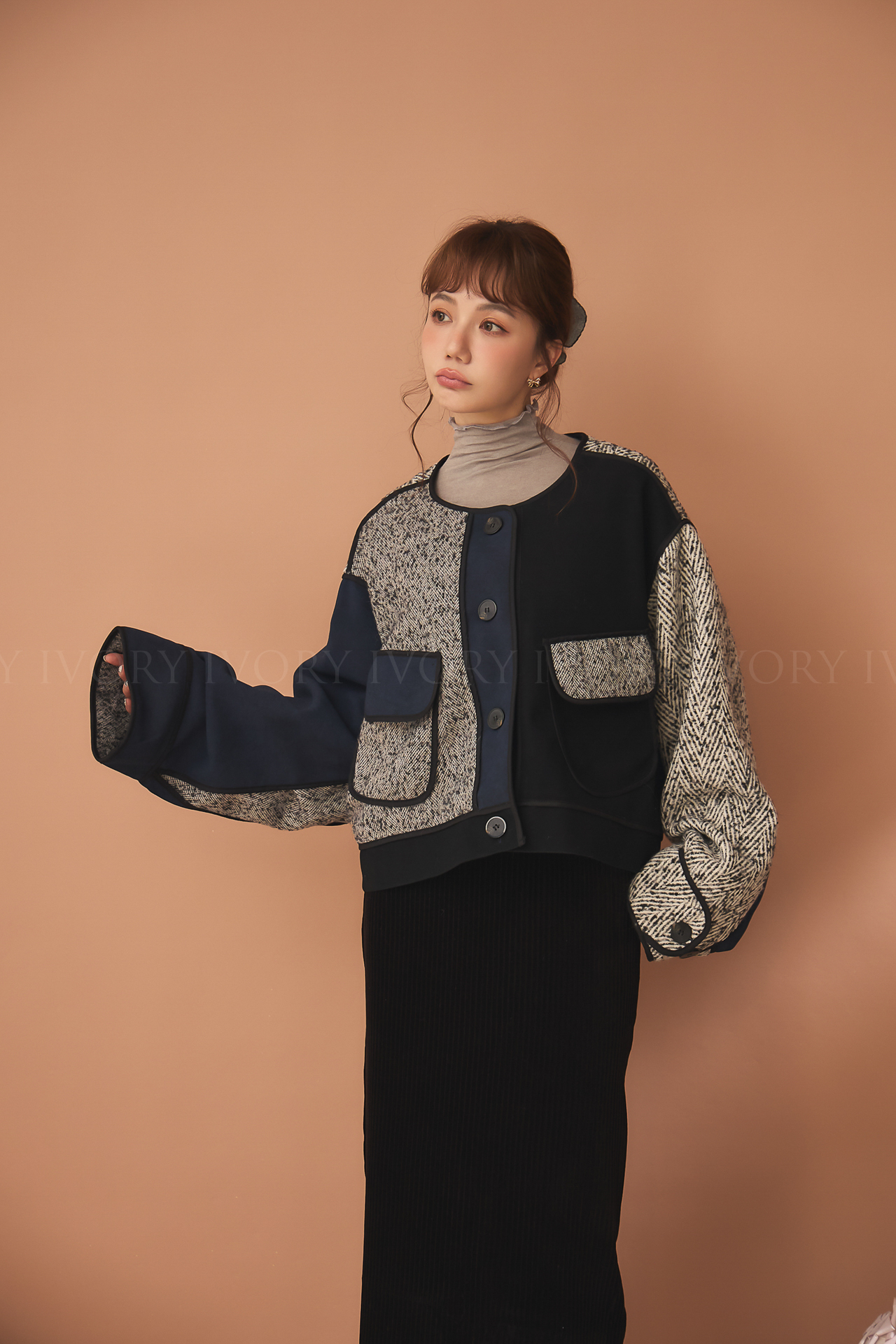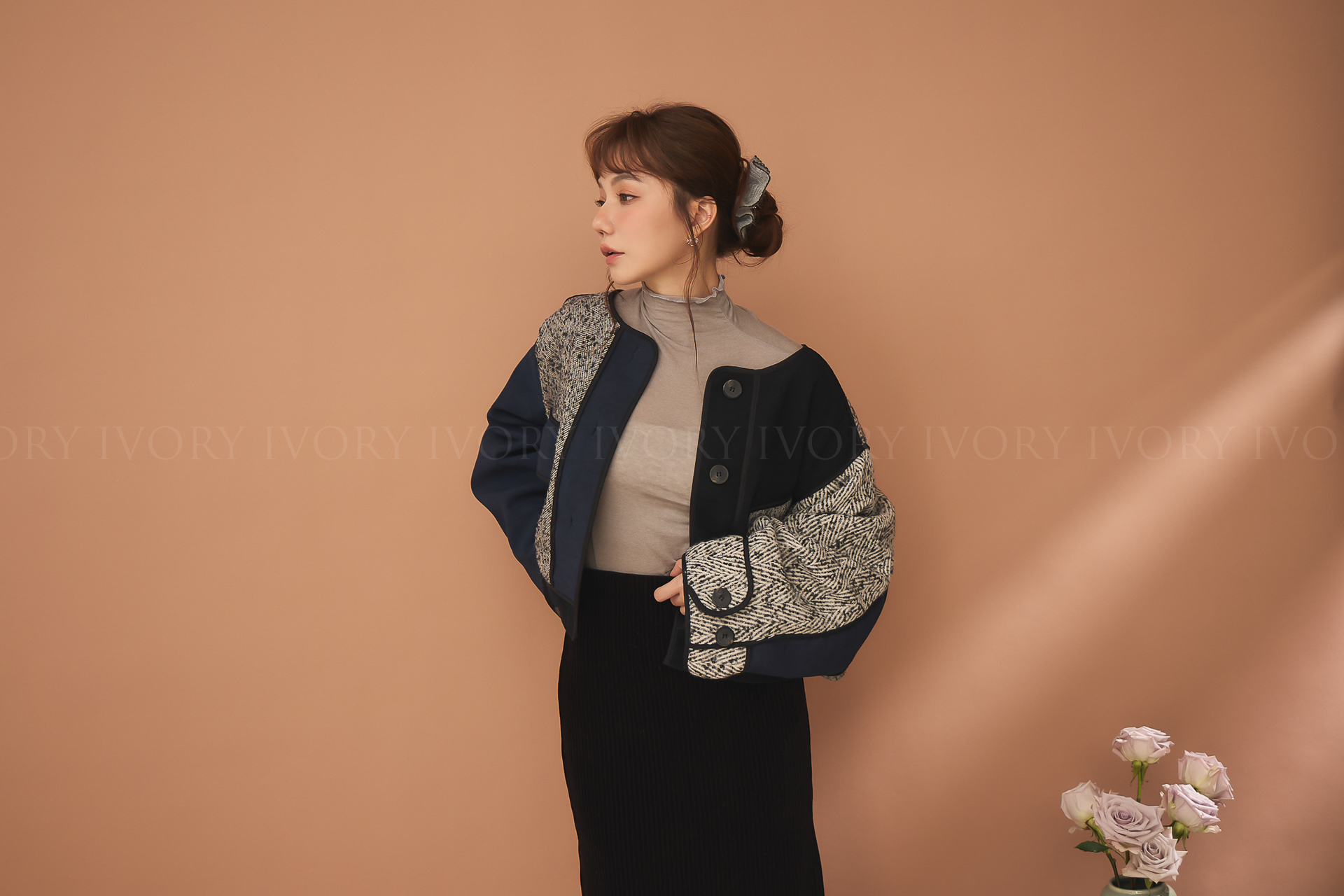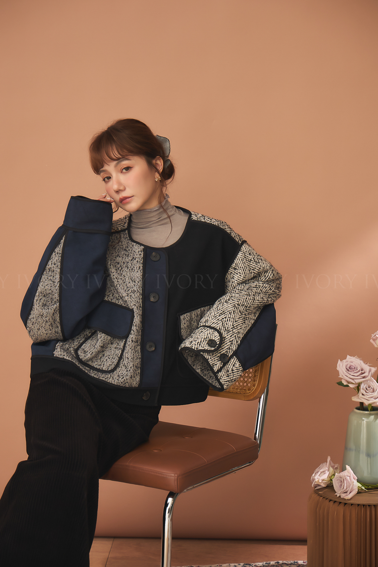 D51242超美設計師款撞色異材質拼接外套[謝琦琦清單]
