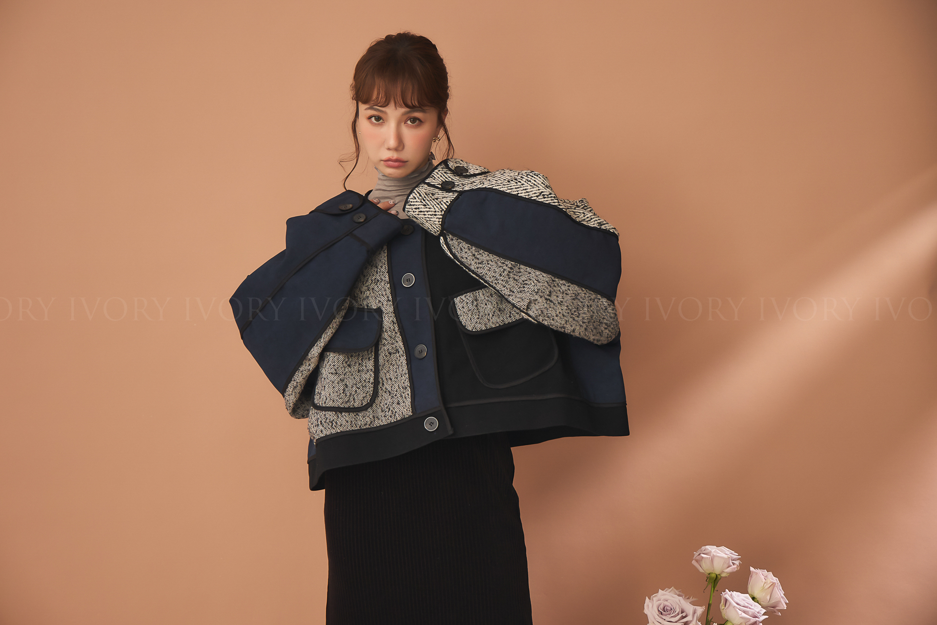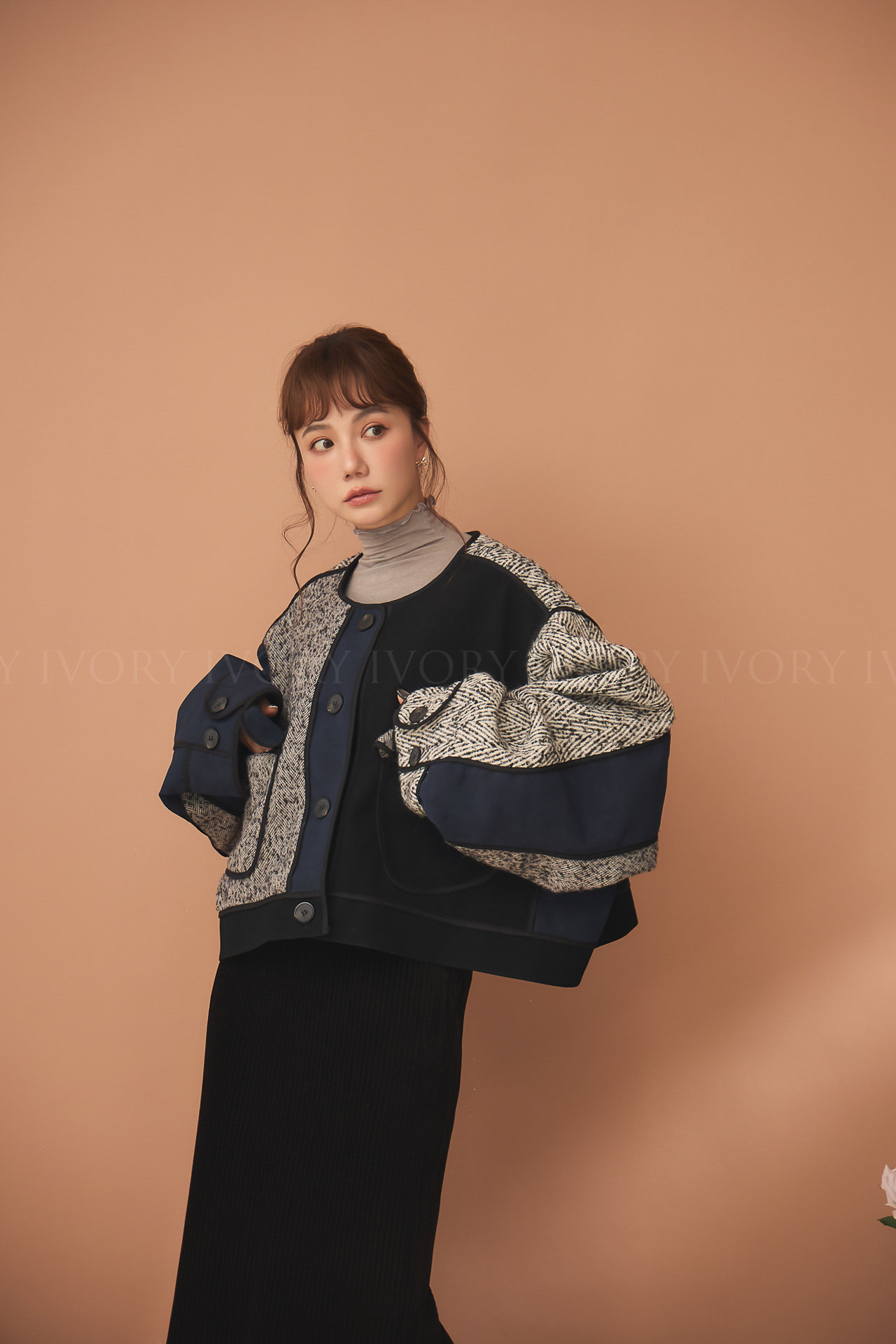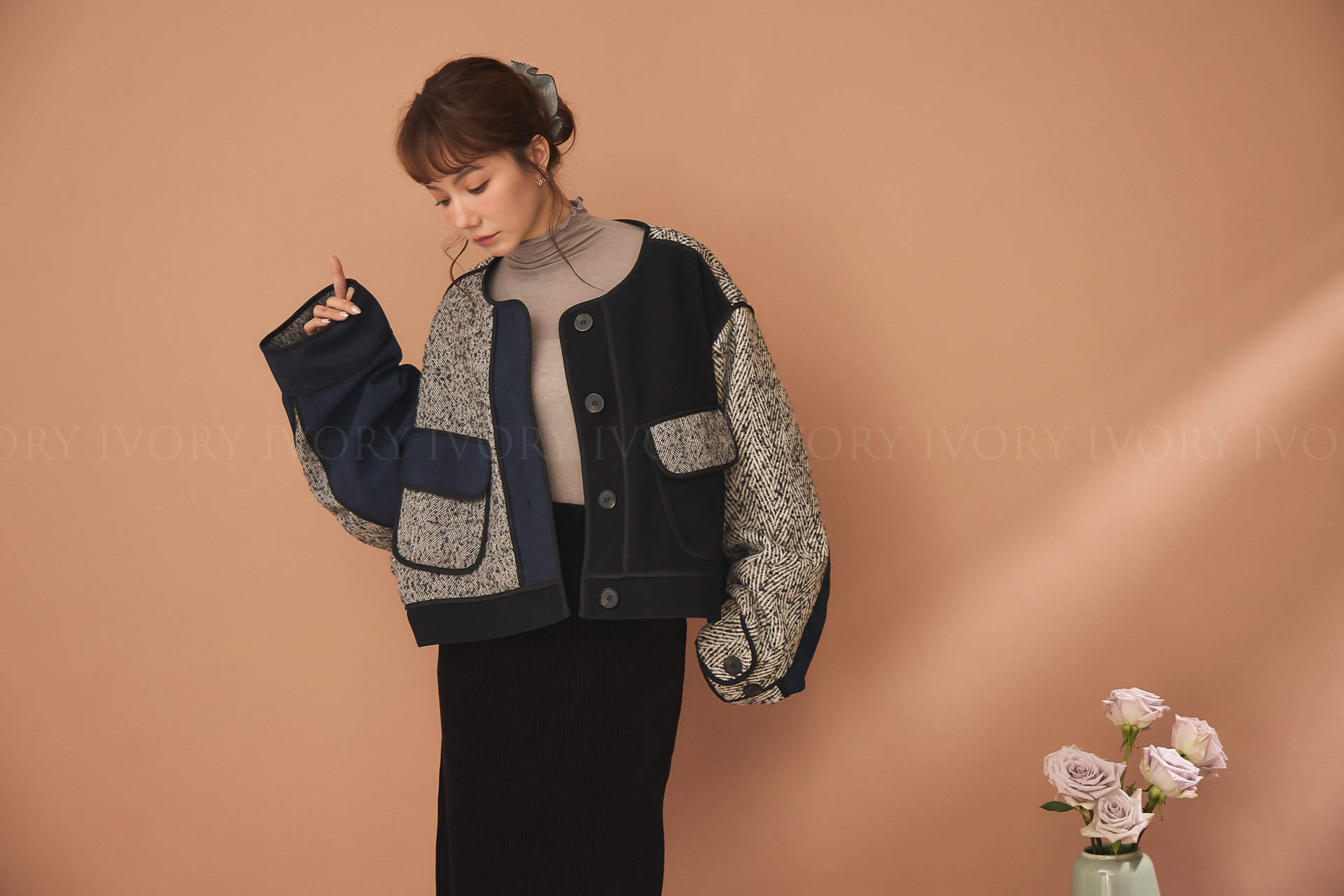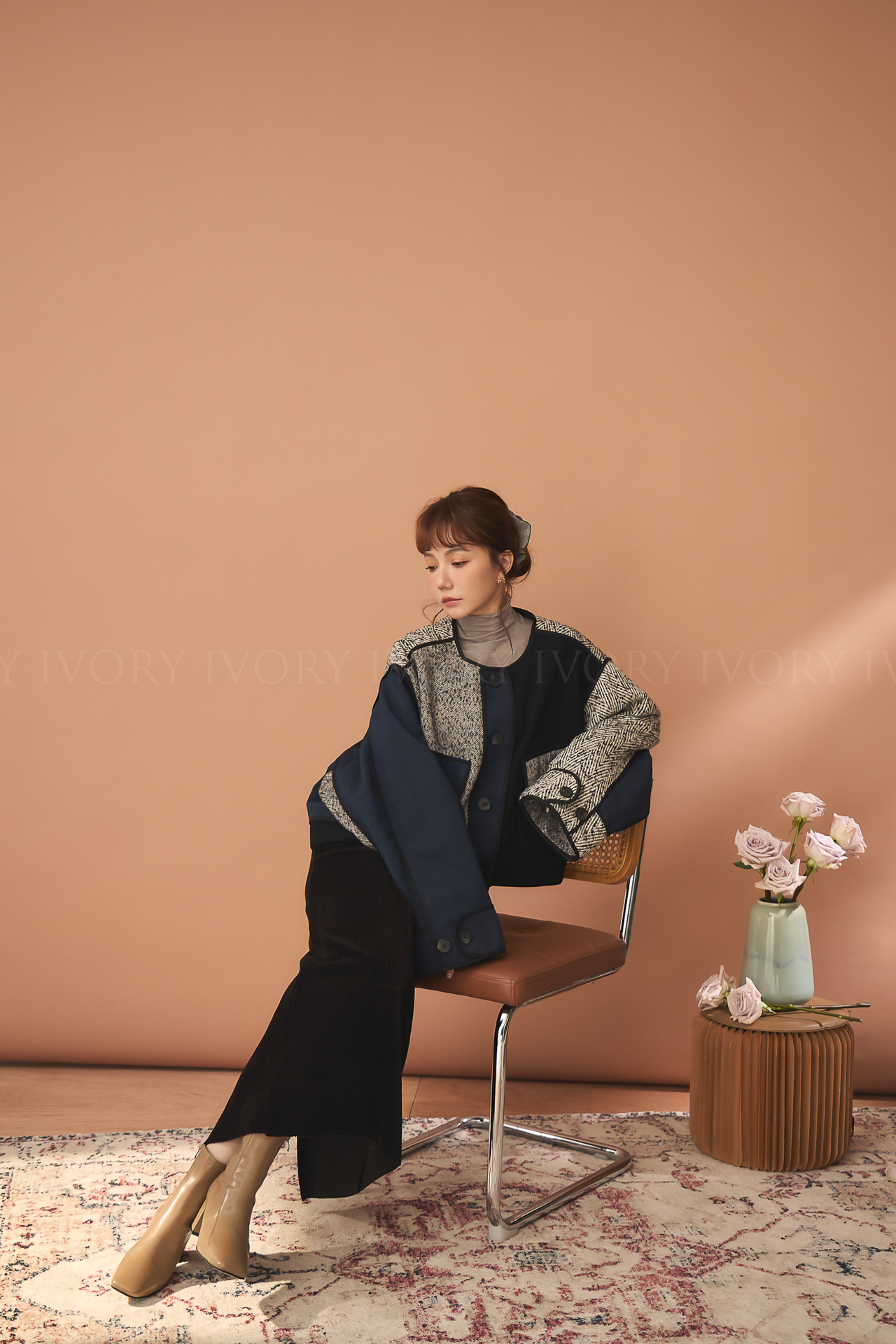 D51242超美設計師款撞色異材質拼接外套[謝琦琦清單]