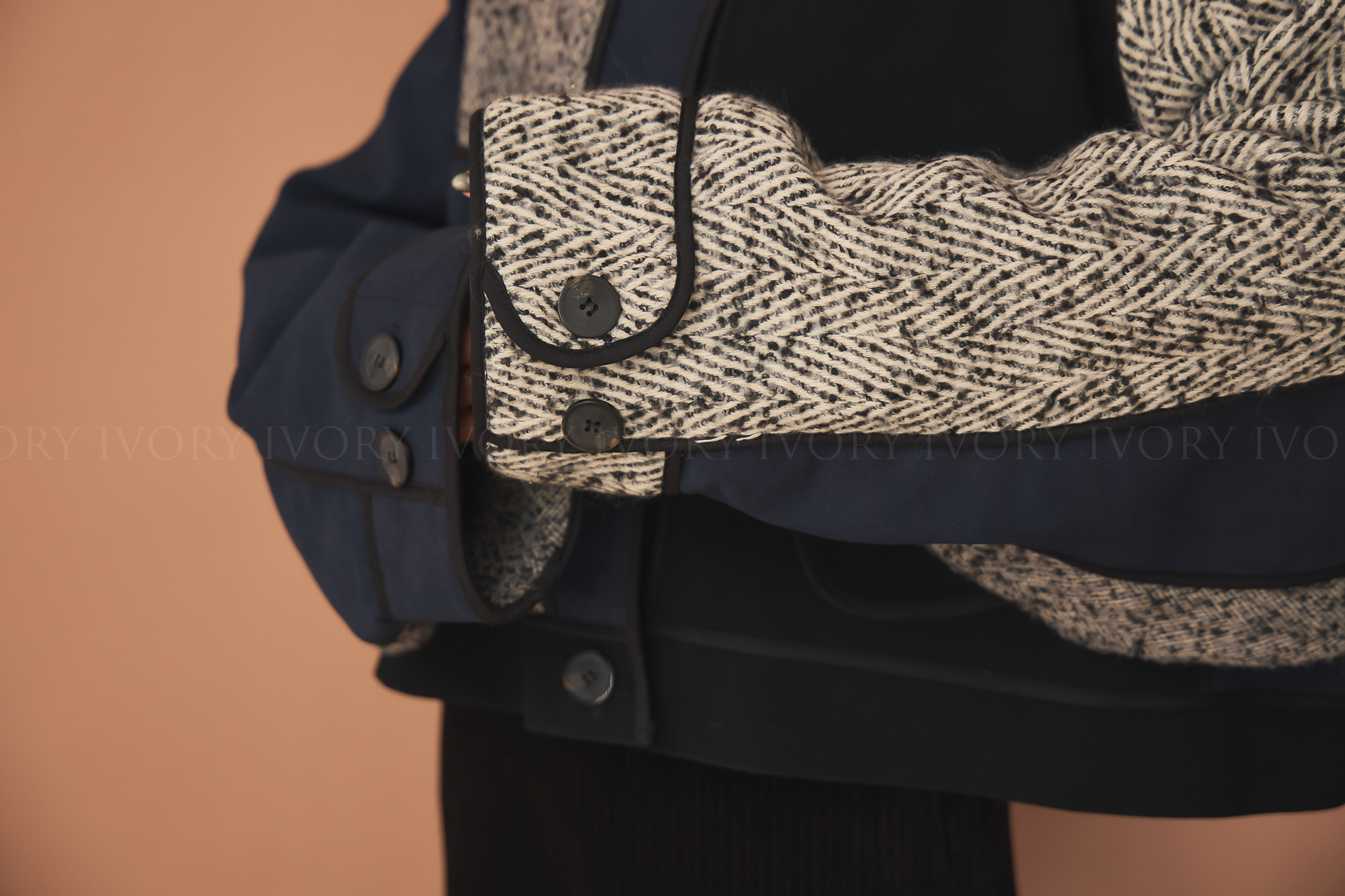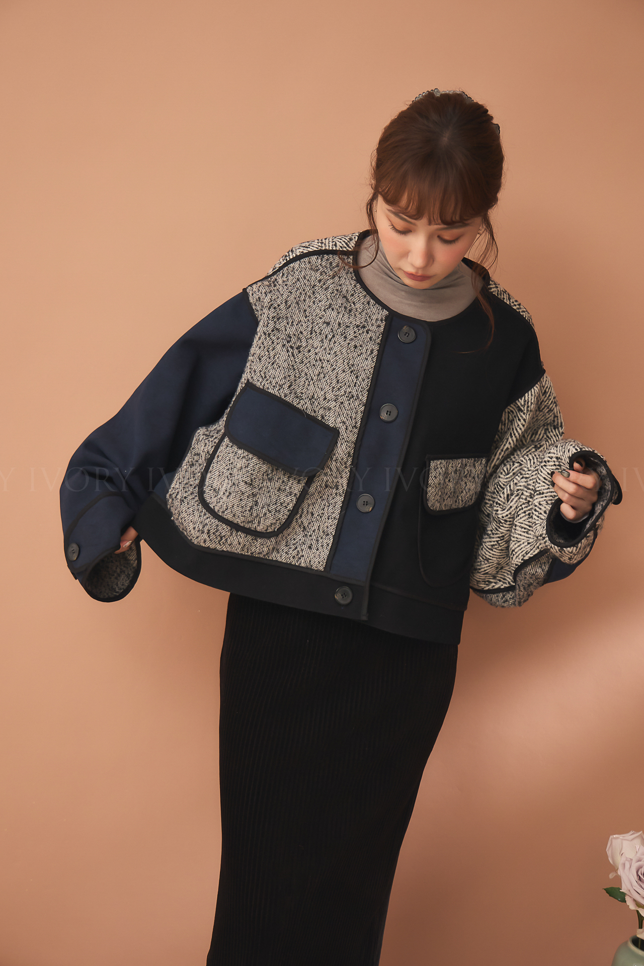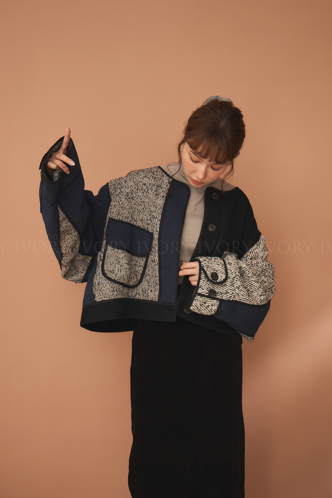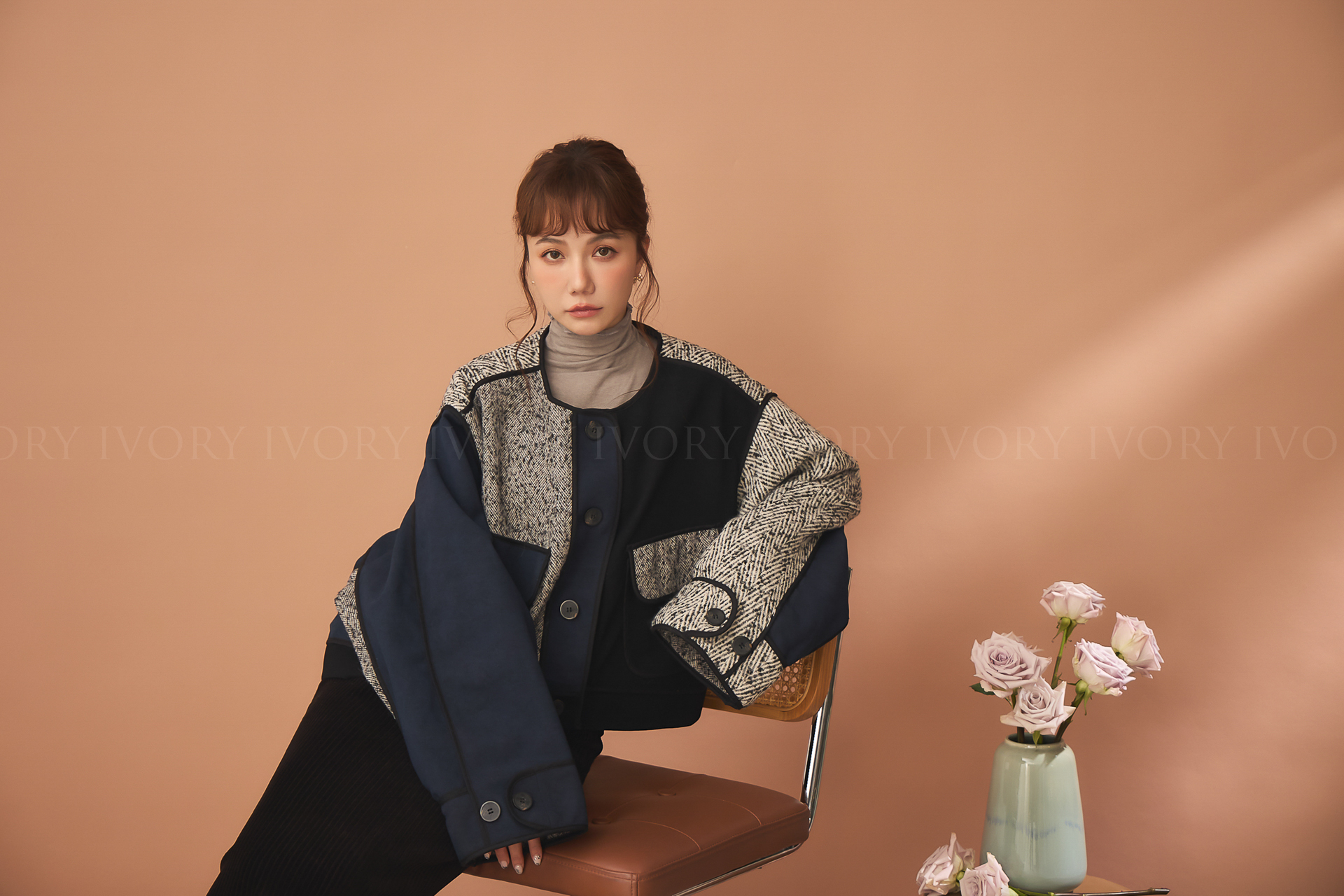 D51242超美設計師款撞色異材質拼接外套[謝琦琦清單]