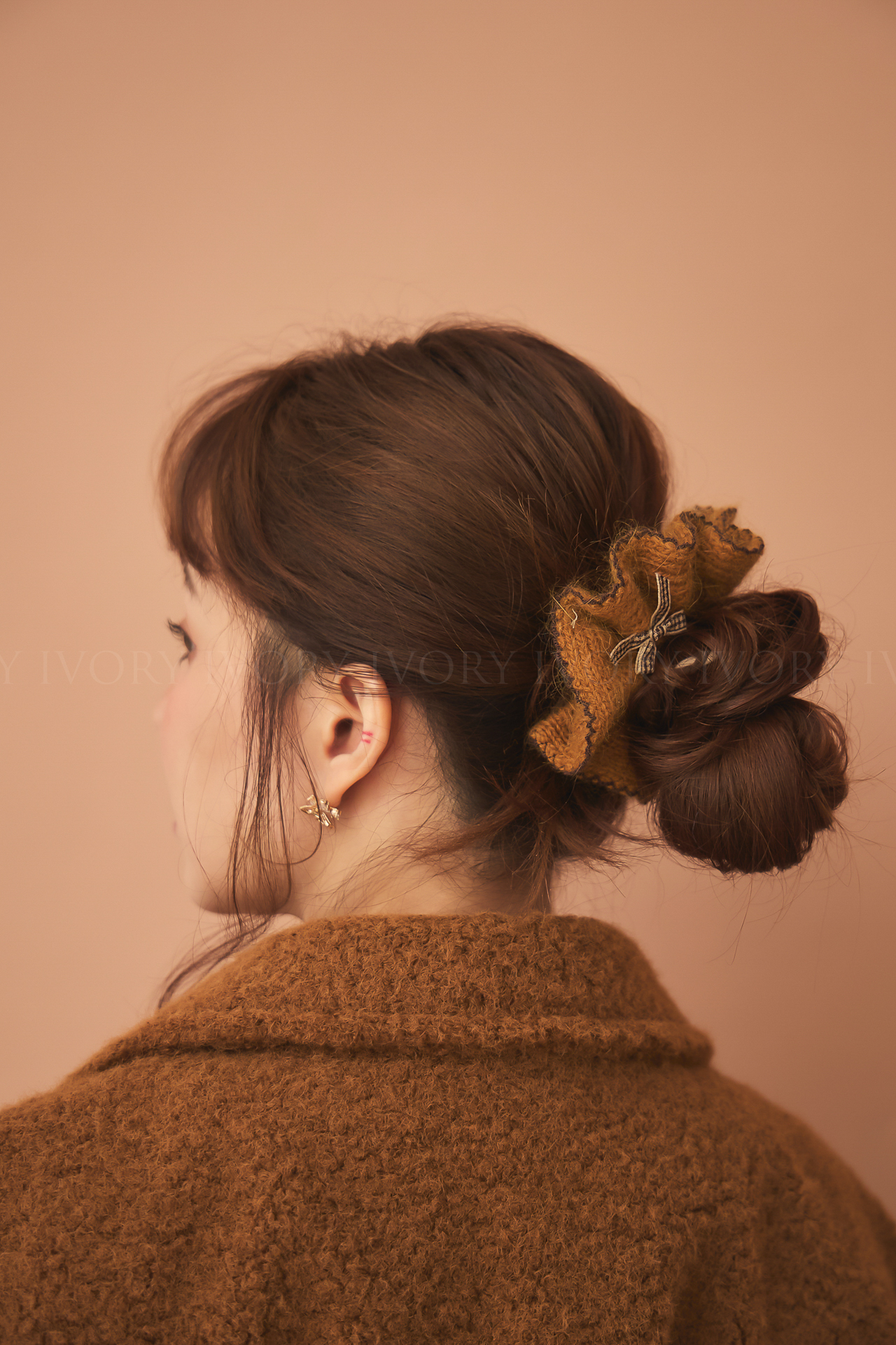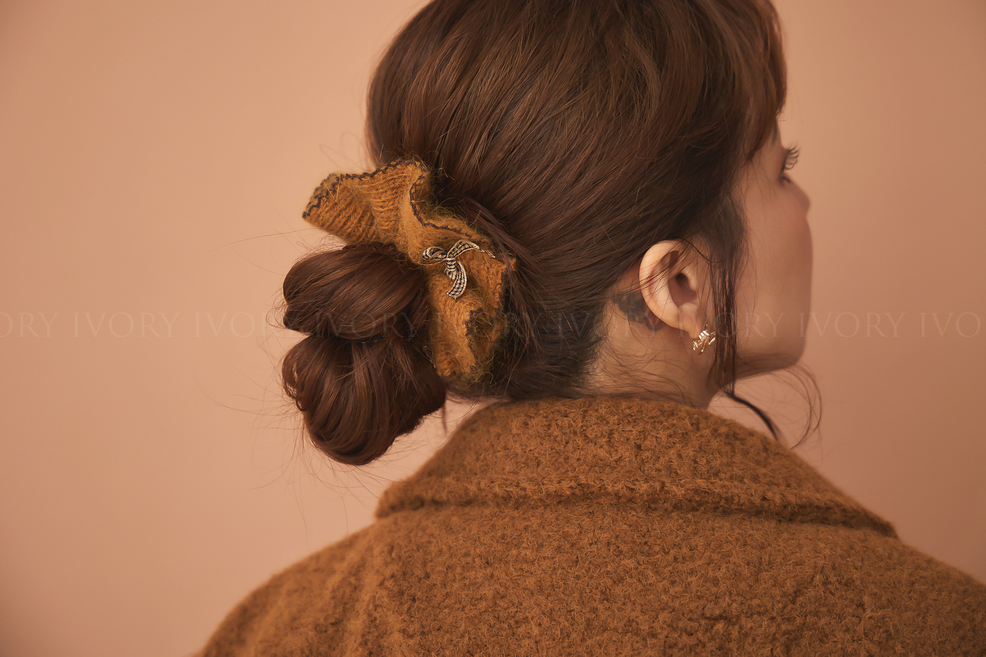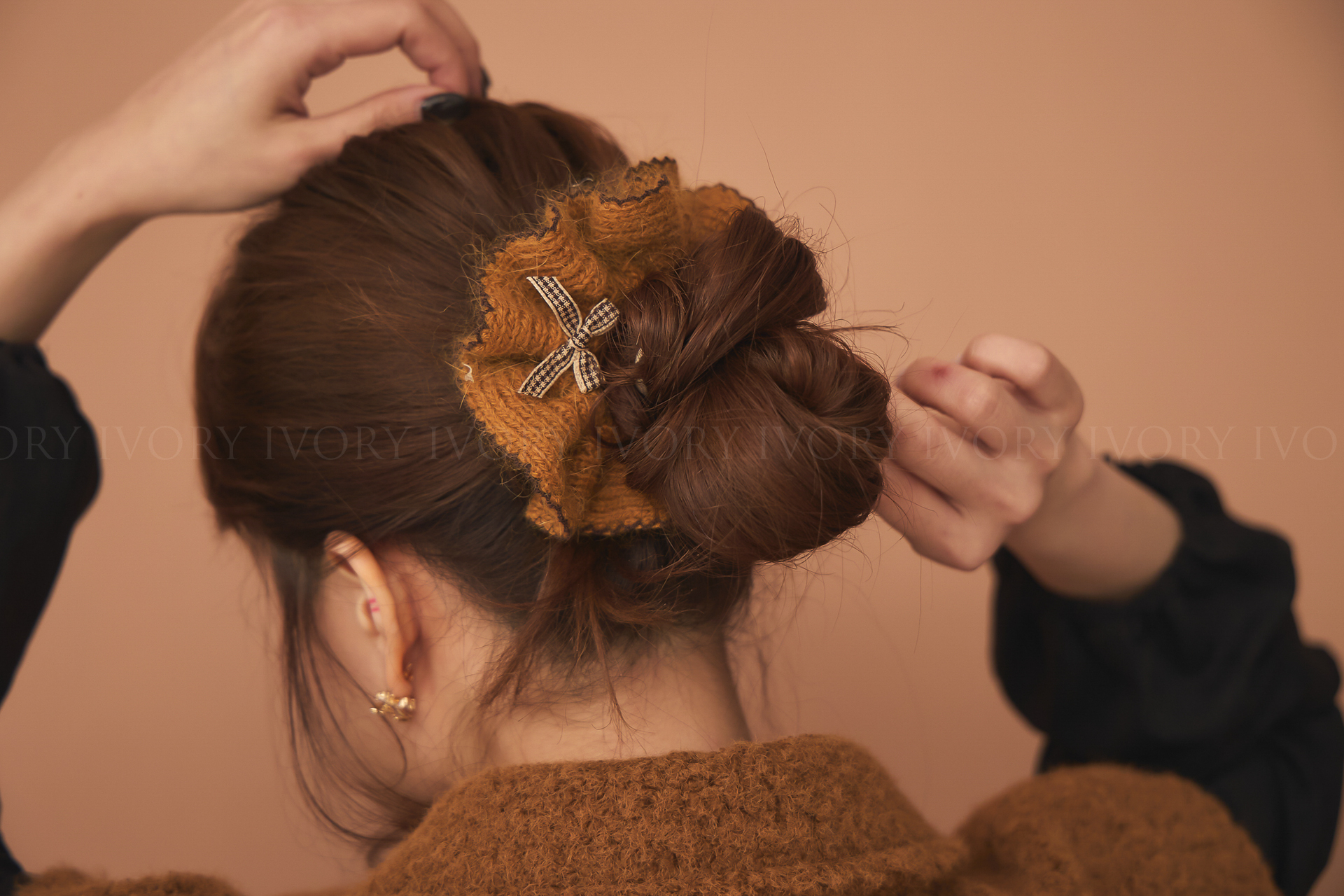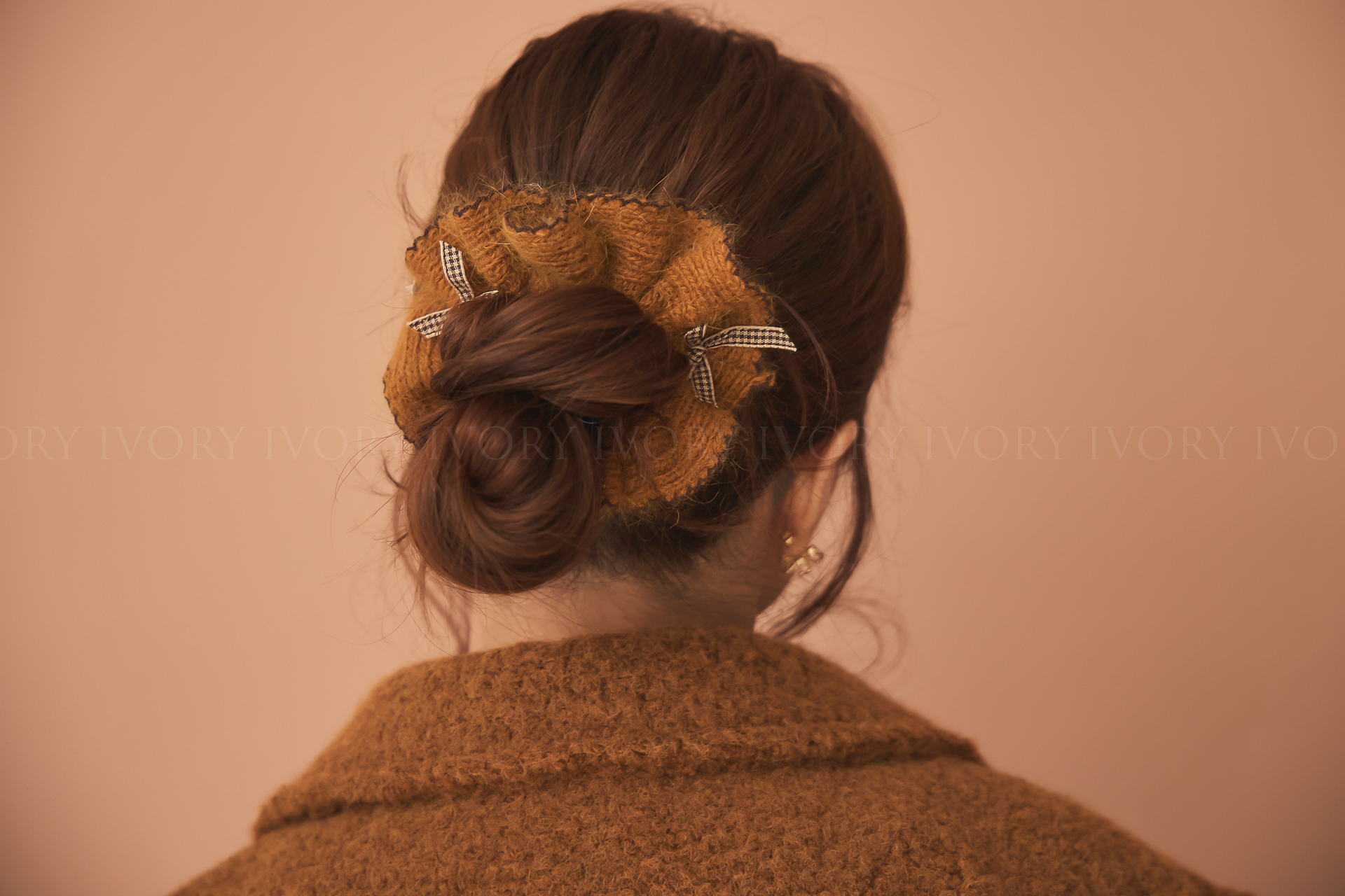 D51261手鉤毛線縫線滾邊蝴蝶結髮圈