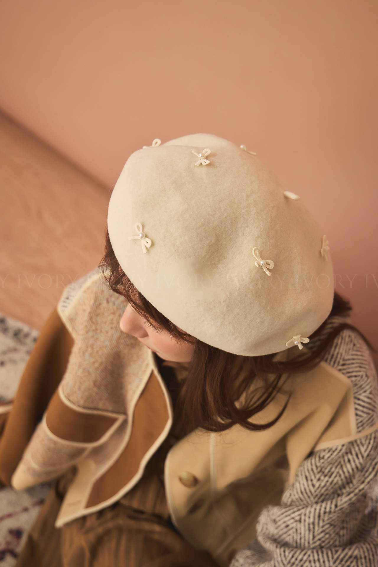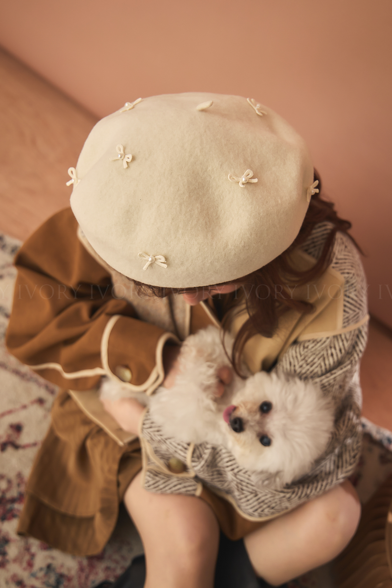 D51280滿滿蝴蝶結羊毛貝蕾帽