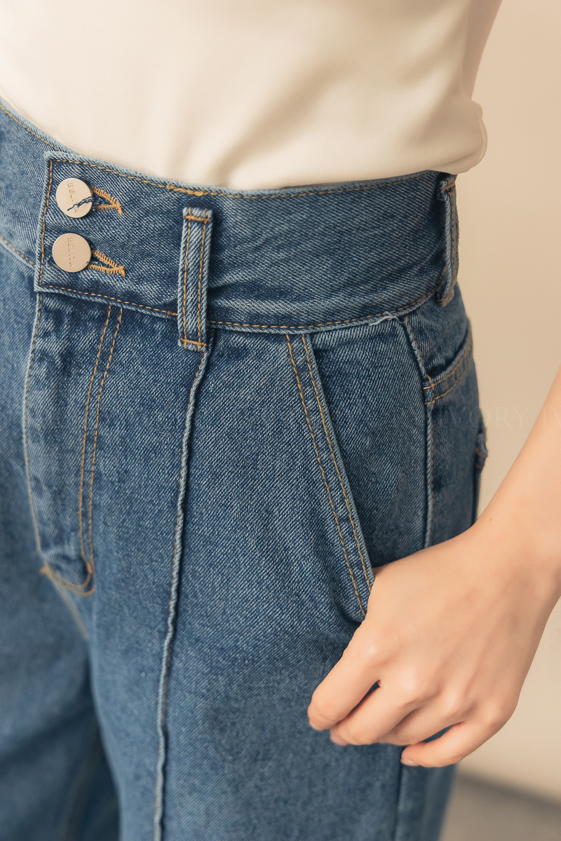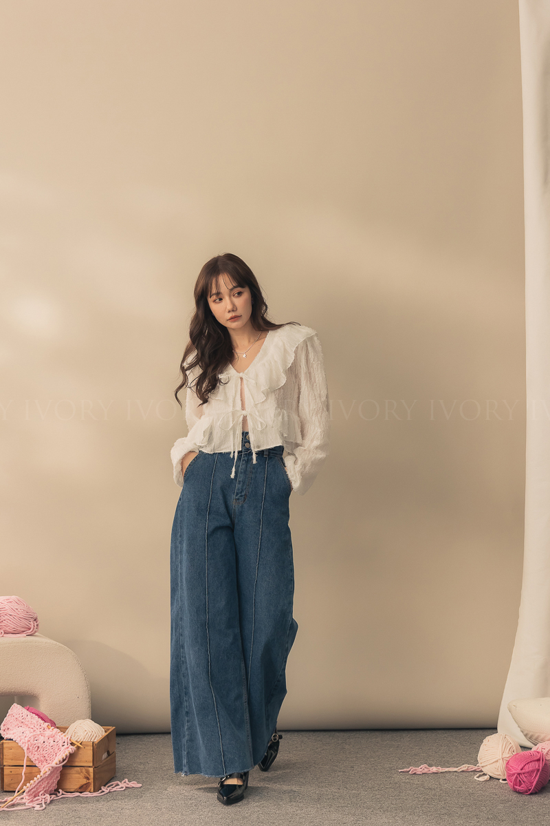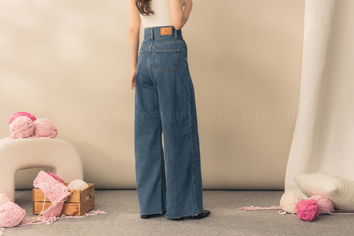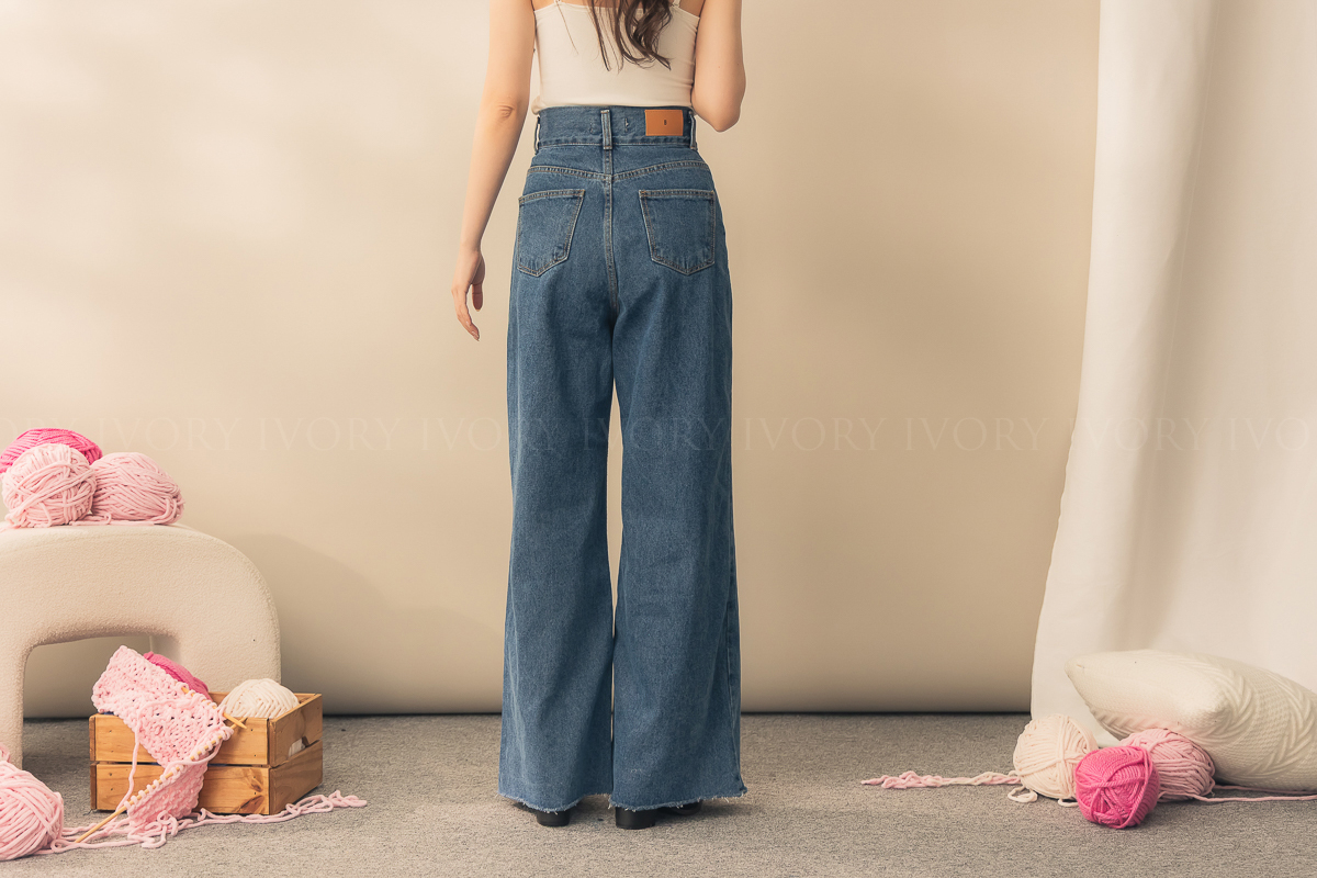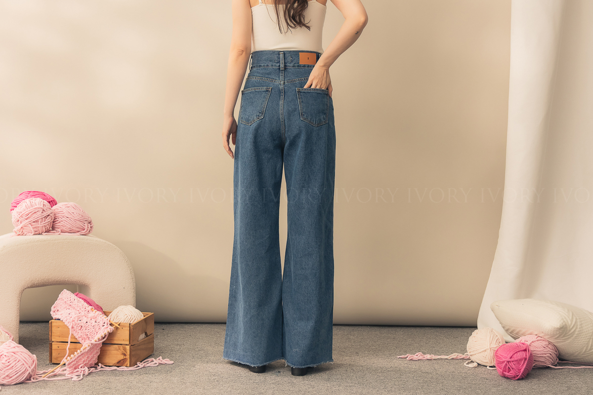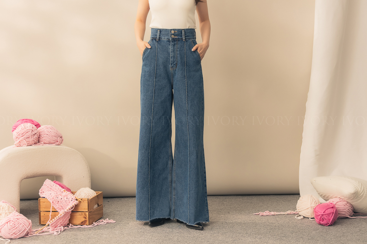 N51012長腿姐姐高腰寬直筒牛仔長褲