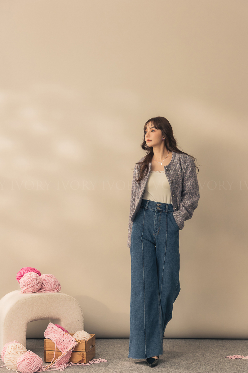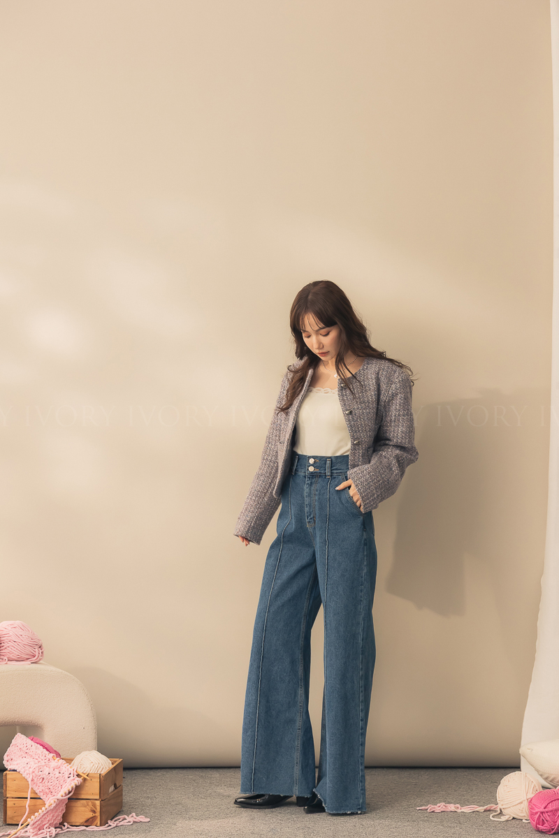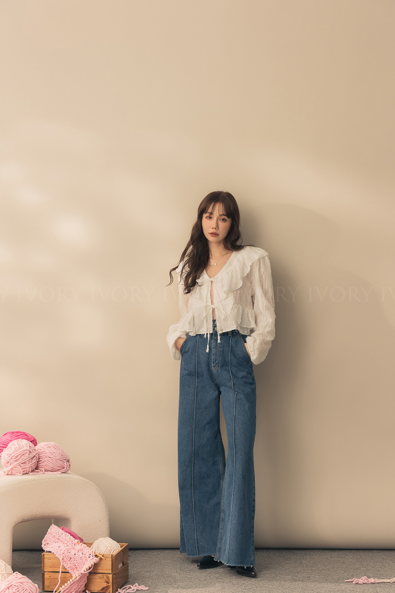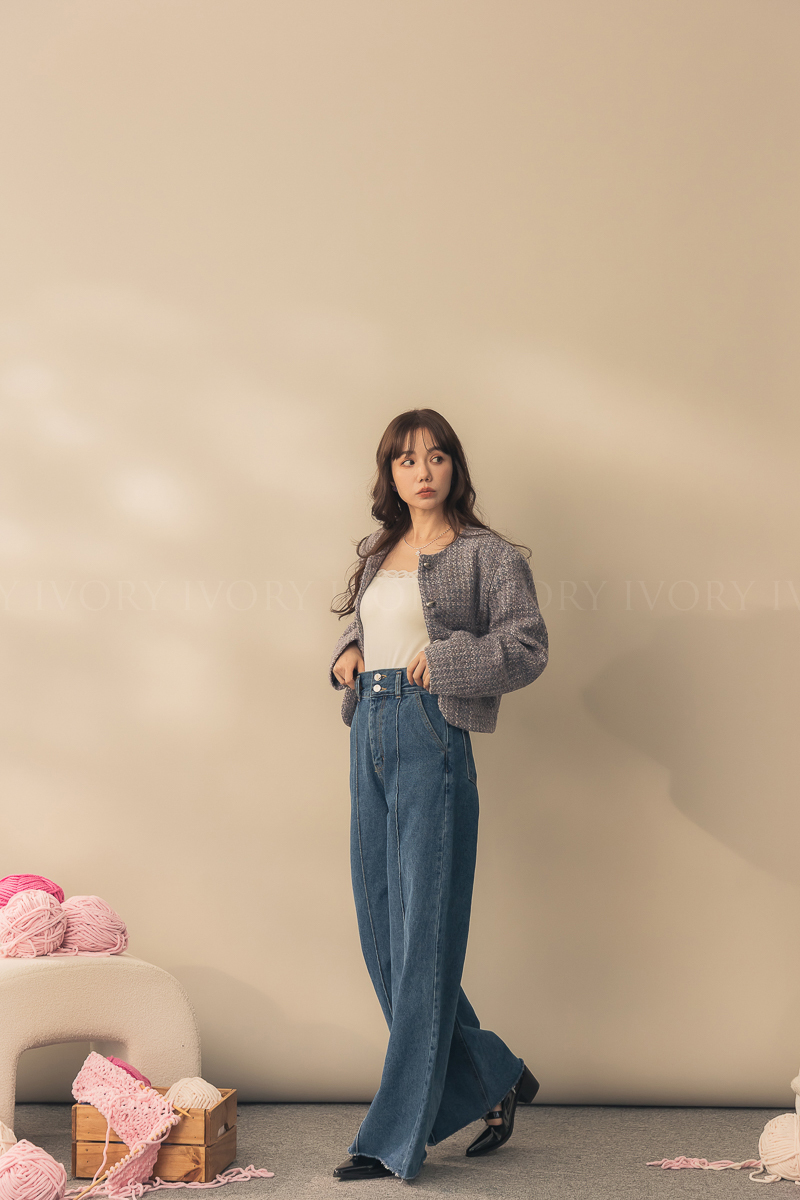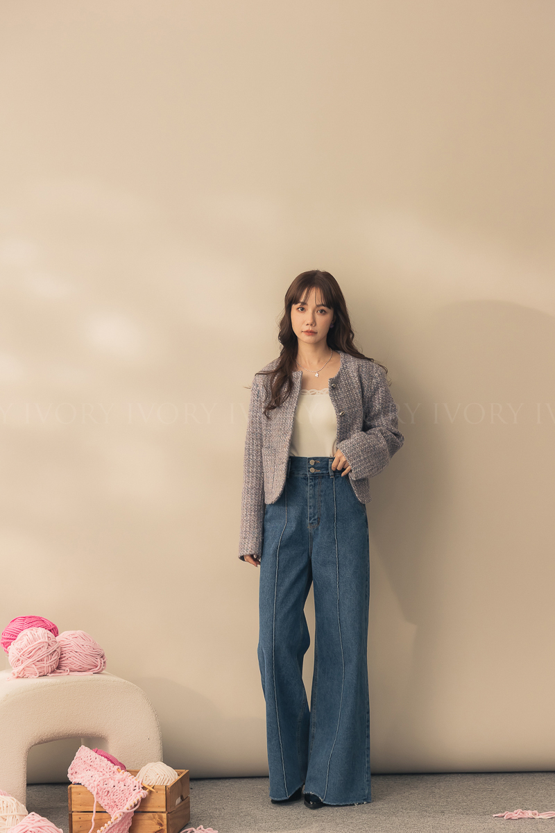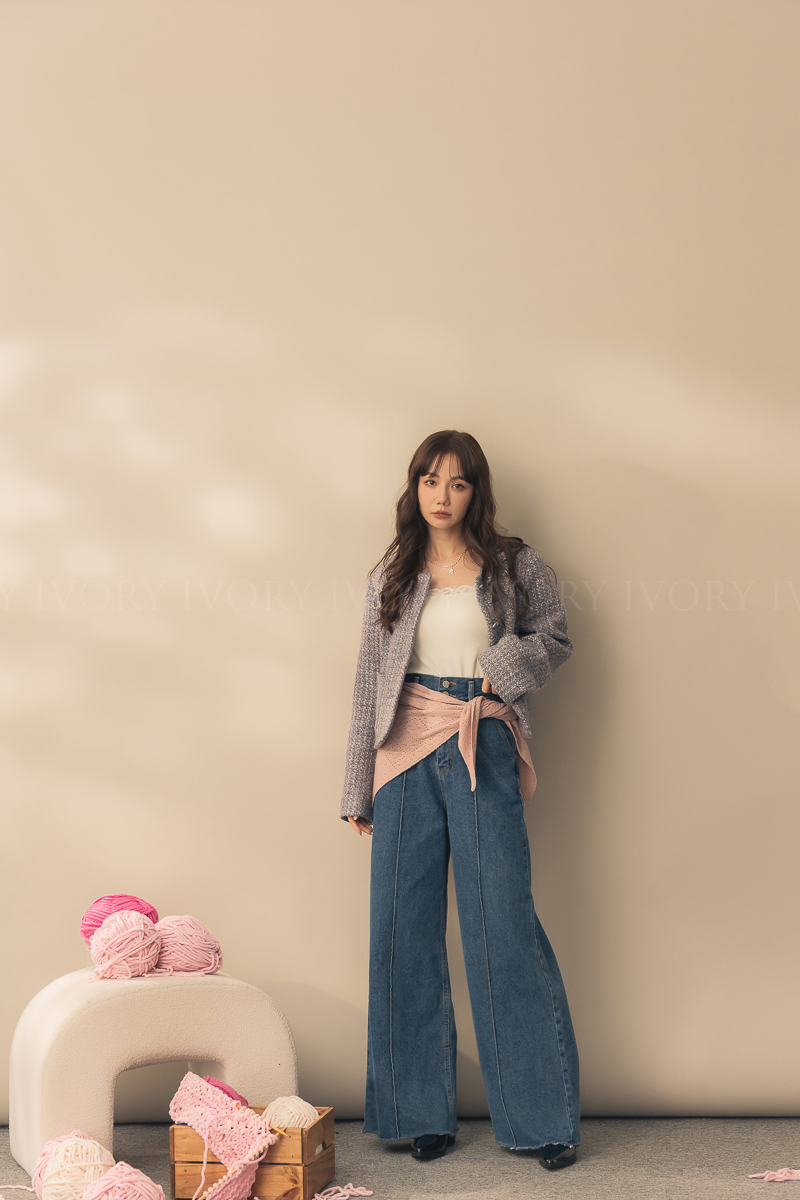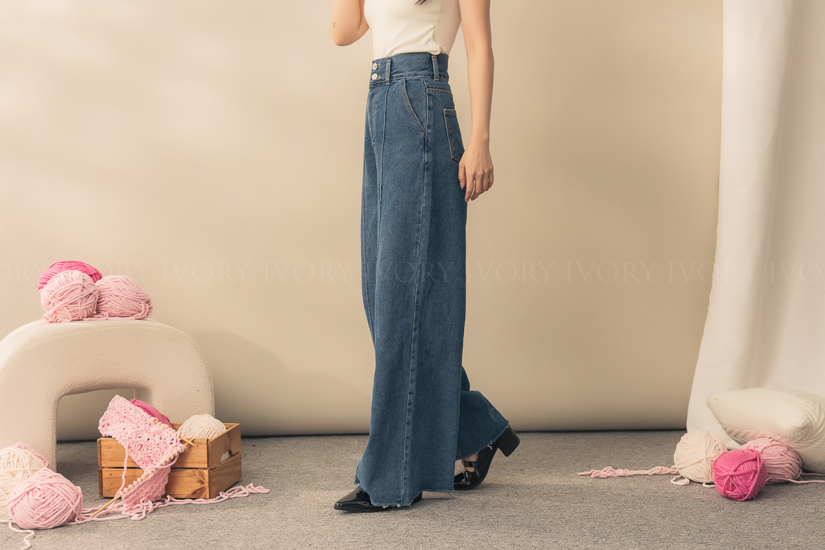 N51012長腿姐姐高腰寬直筒牛仔長褲