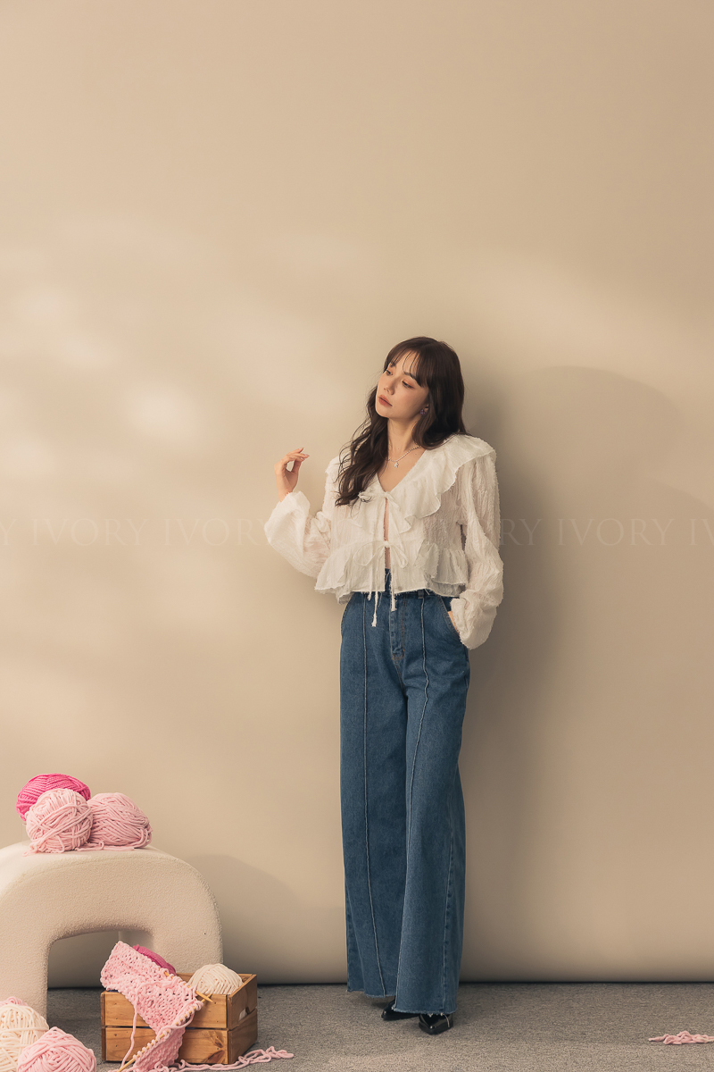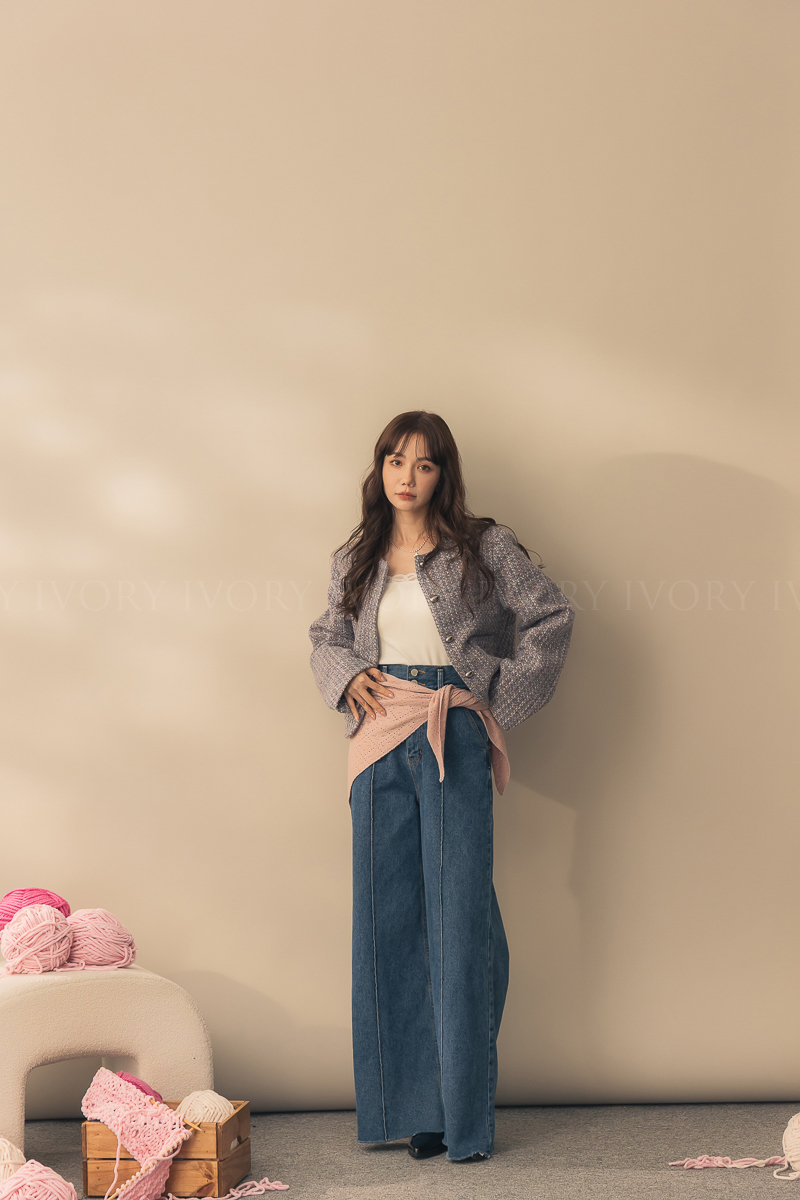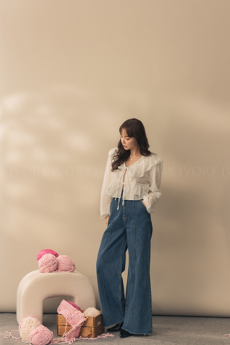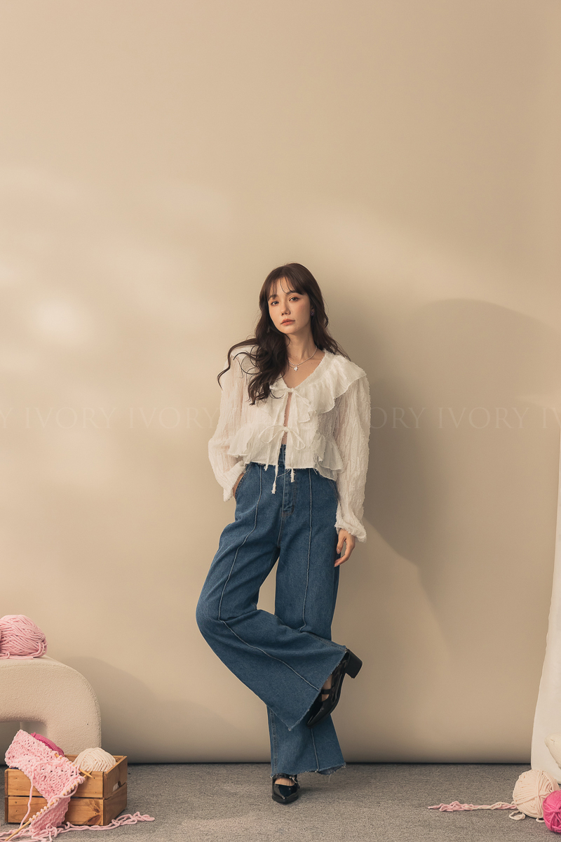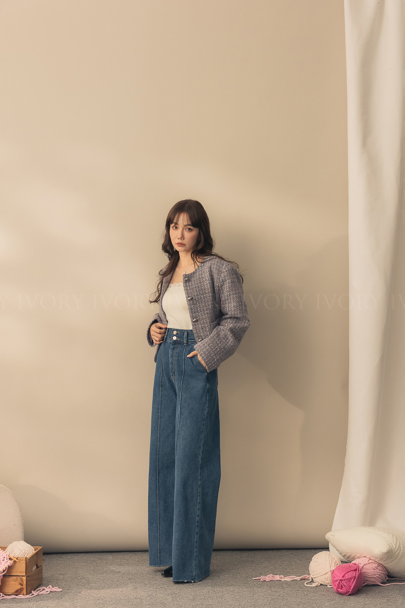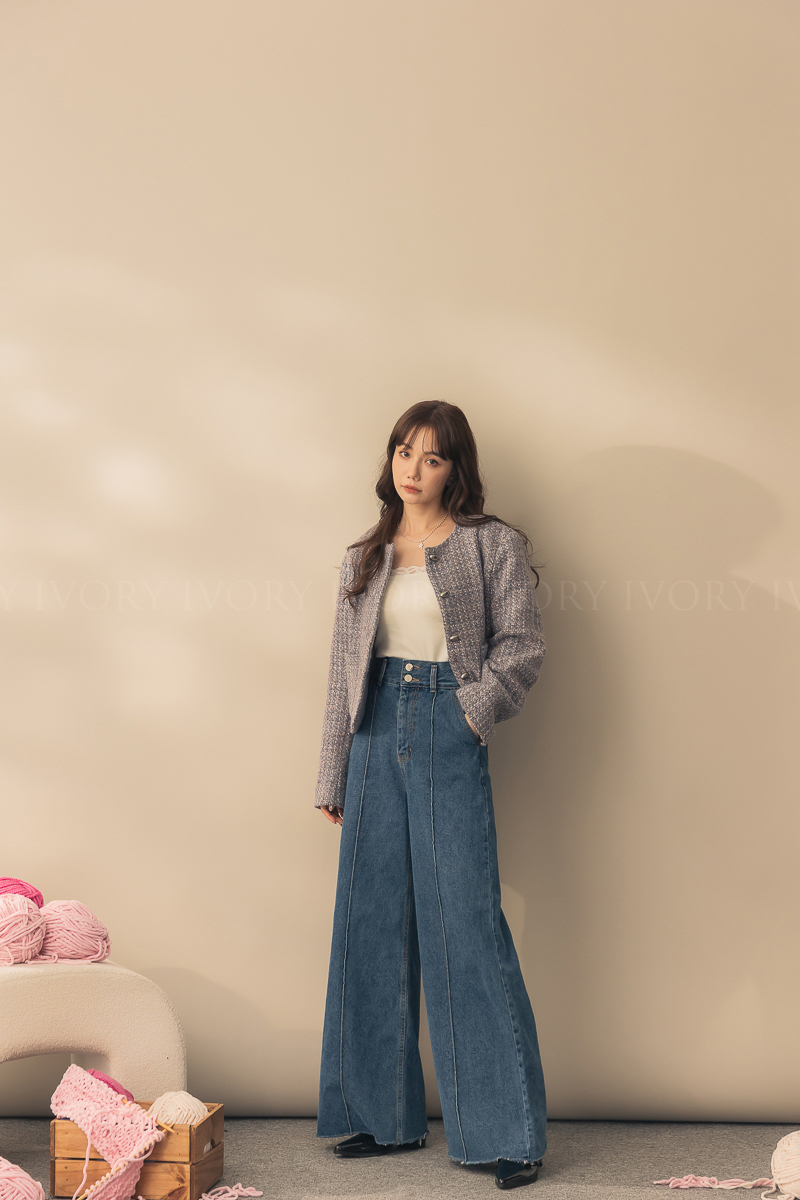N51012長腿姐姐高腰寬直筒牛仔長褲