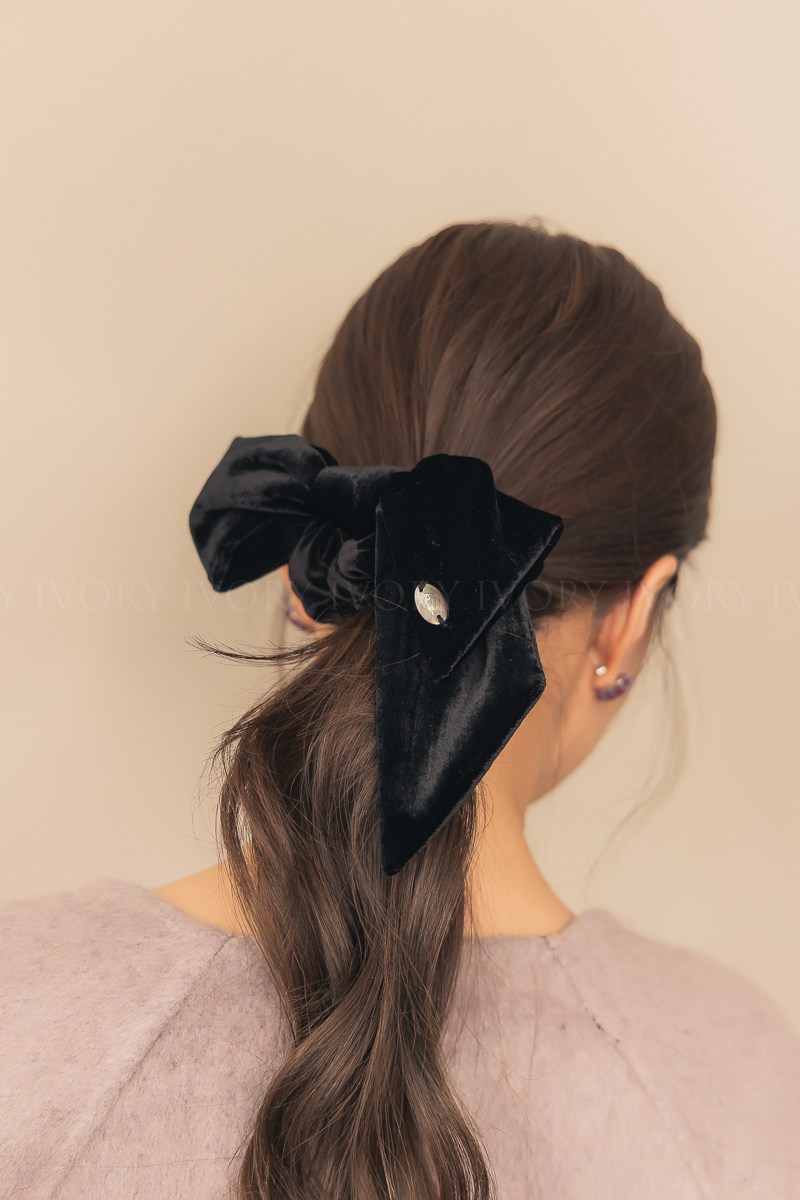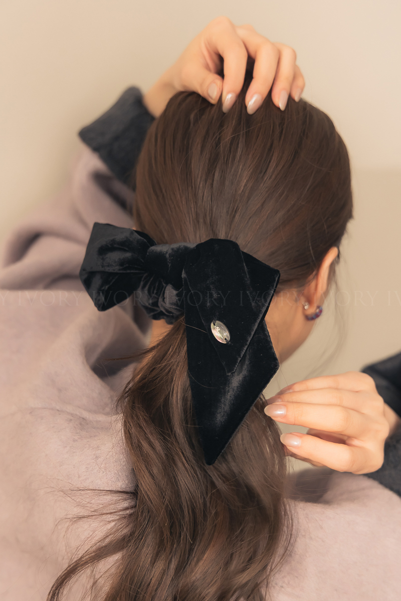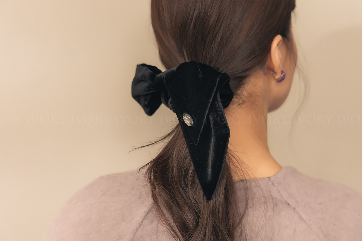 N51064貝殼標天鵝絨蝴蝶單節髮圈