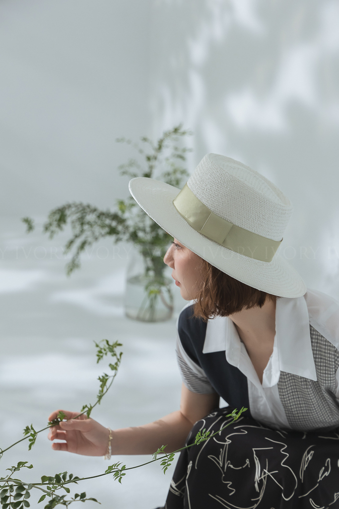 A34062夏日渡假必備寬緞帶紳士草帽