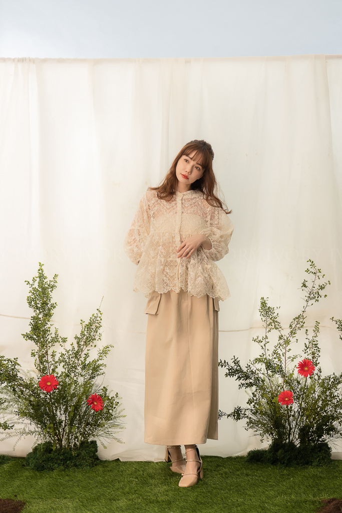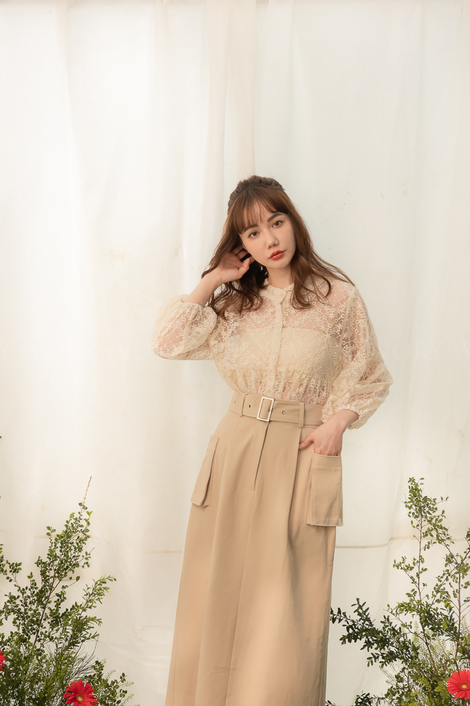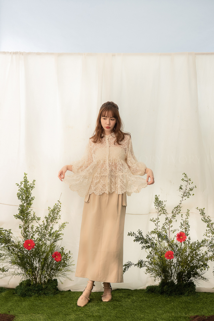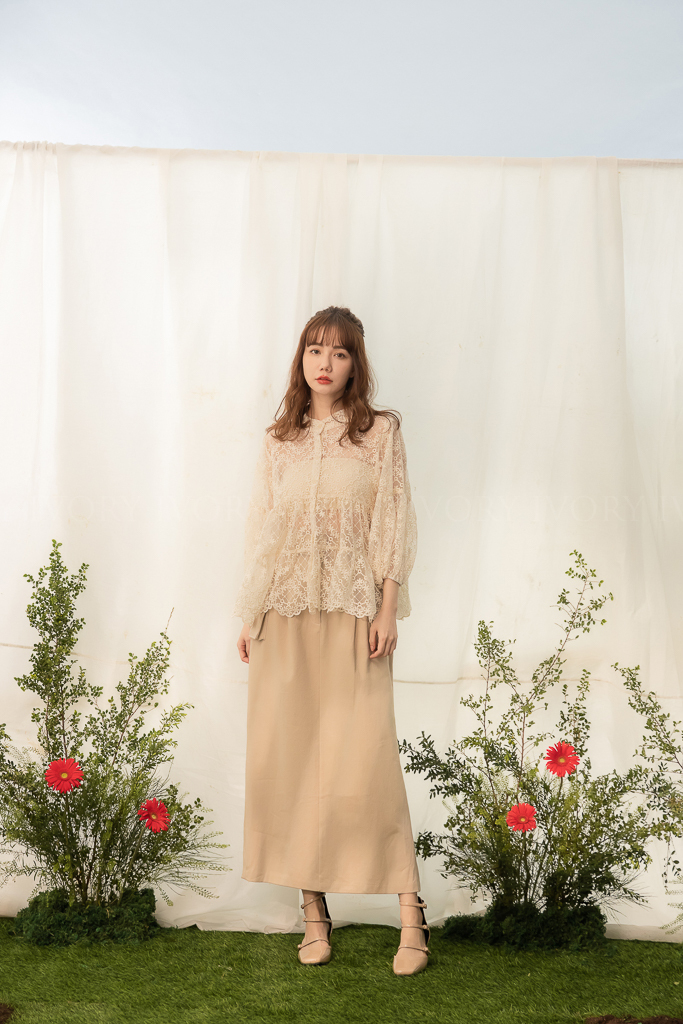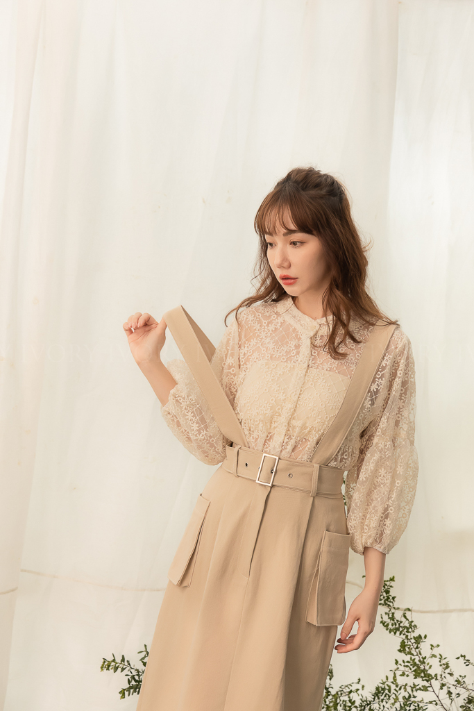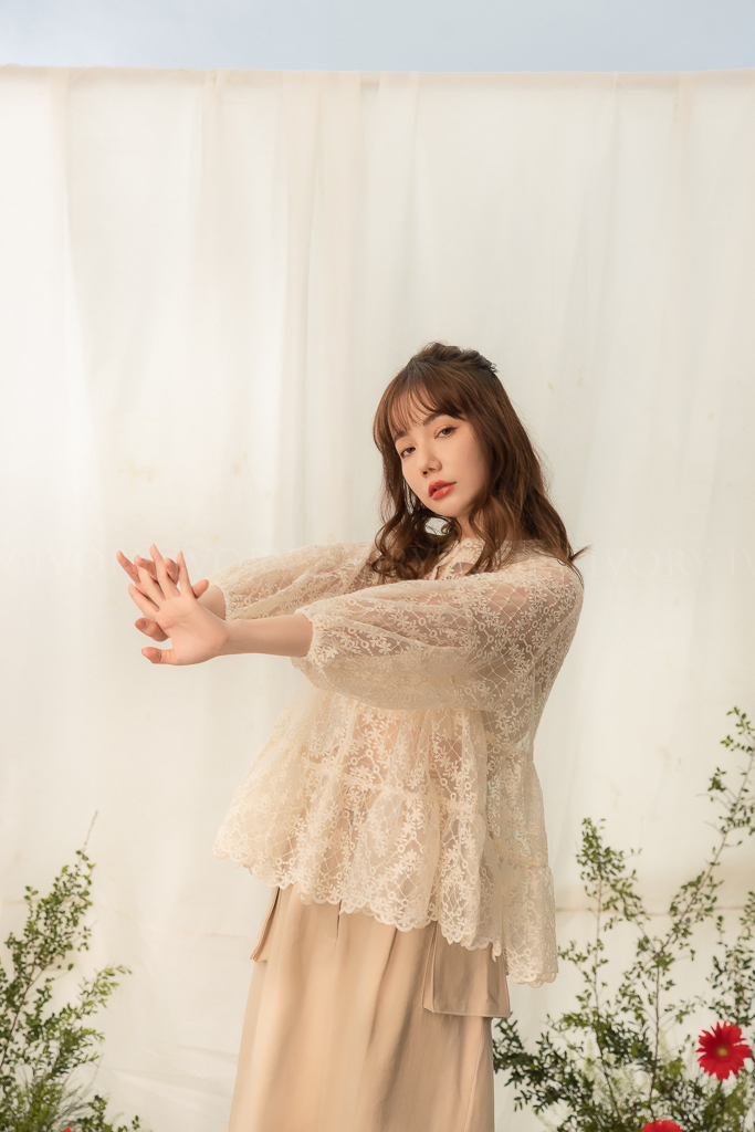 A44026高質感刺繡小花透紗澎袖娃娃上衣