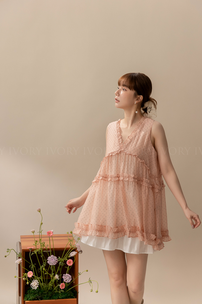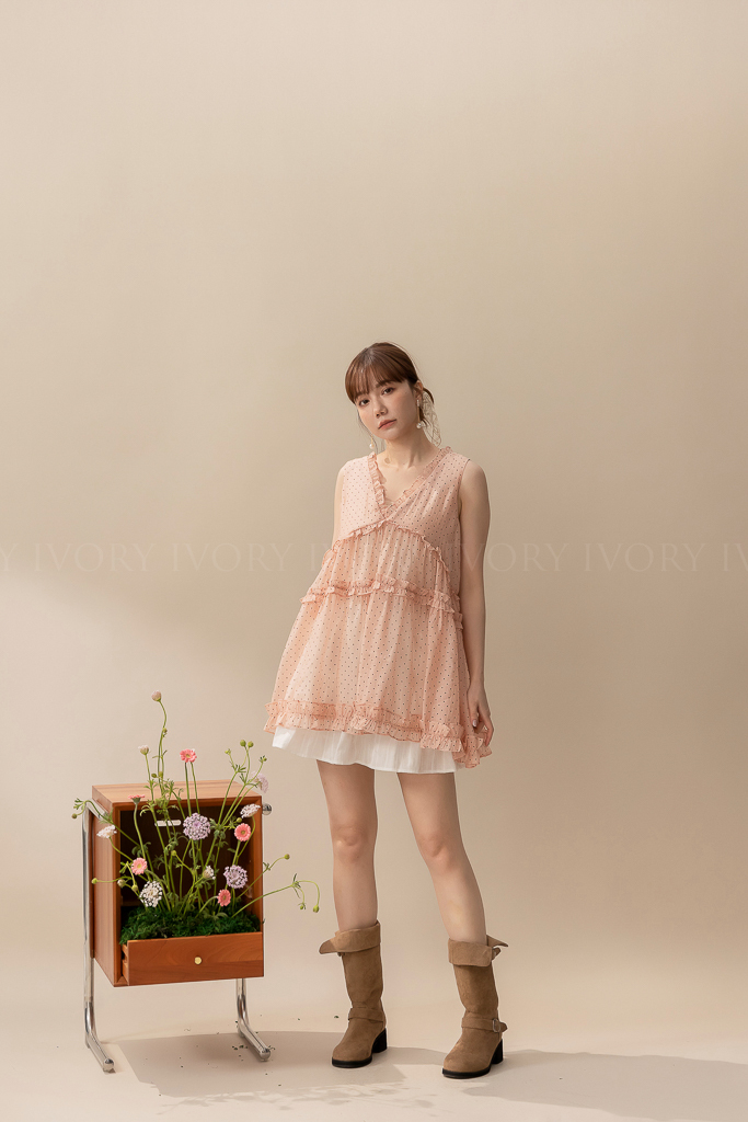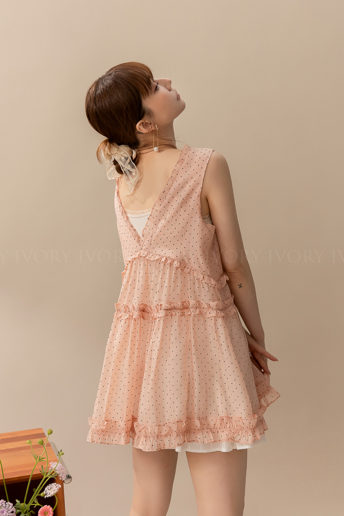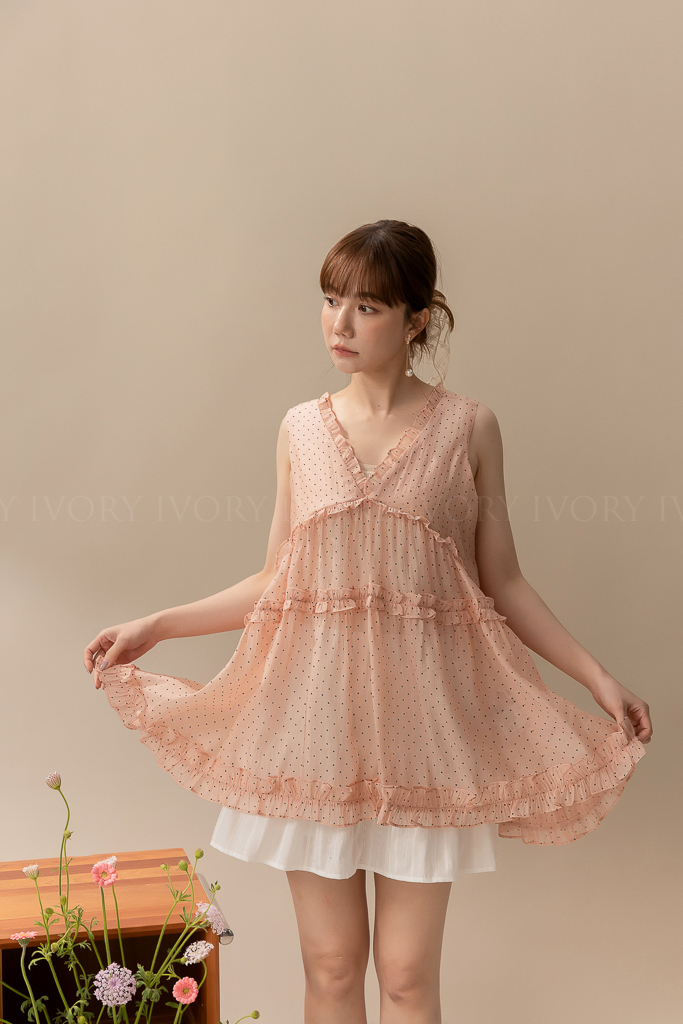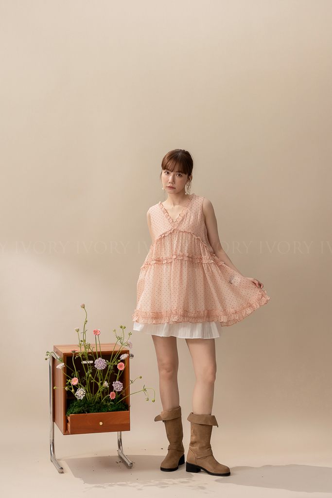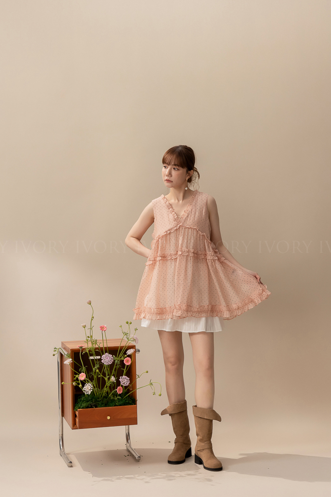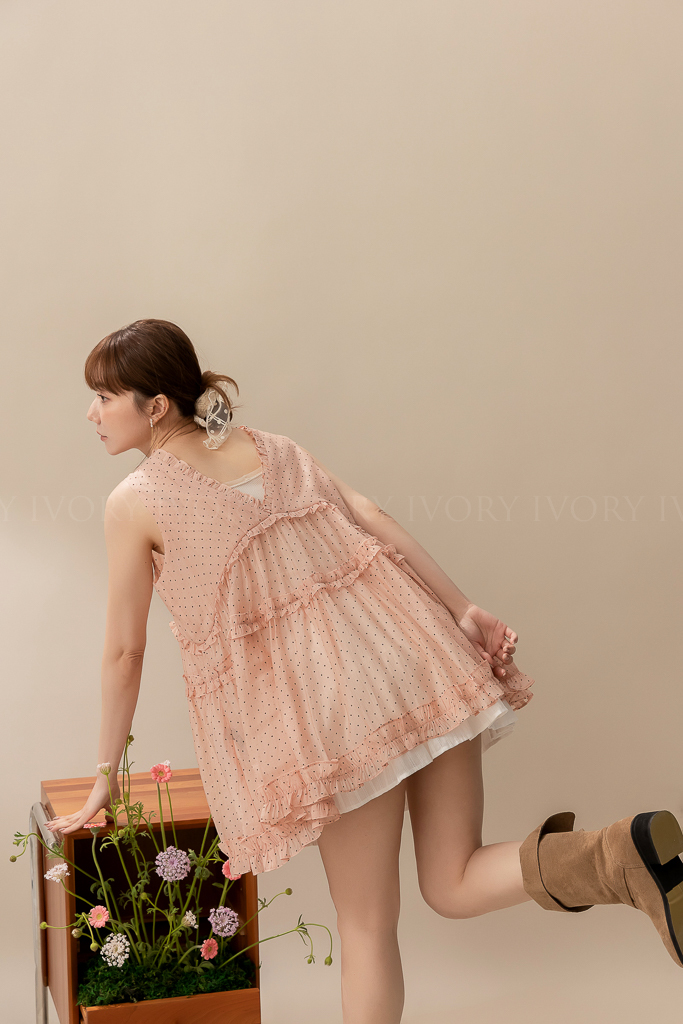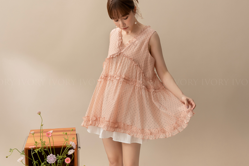 A54018超可愛捲捲荷葉洋裝式透紗背心<可青清單>