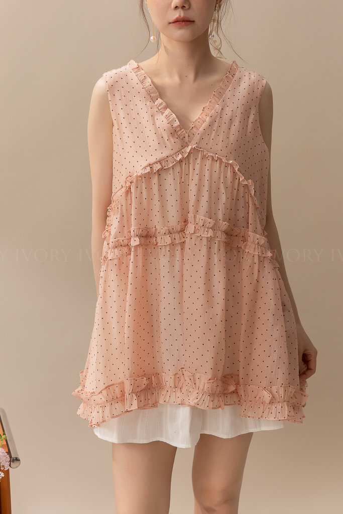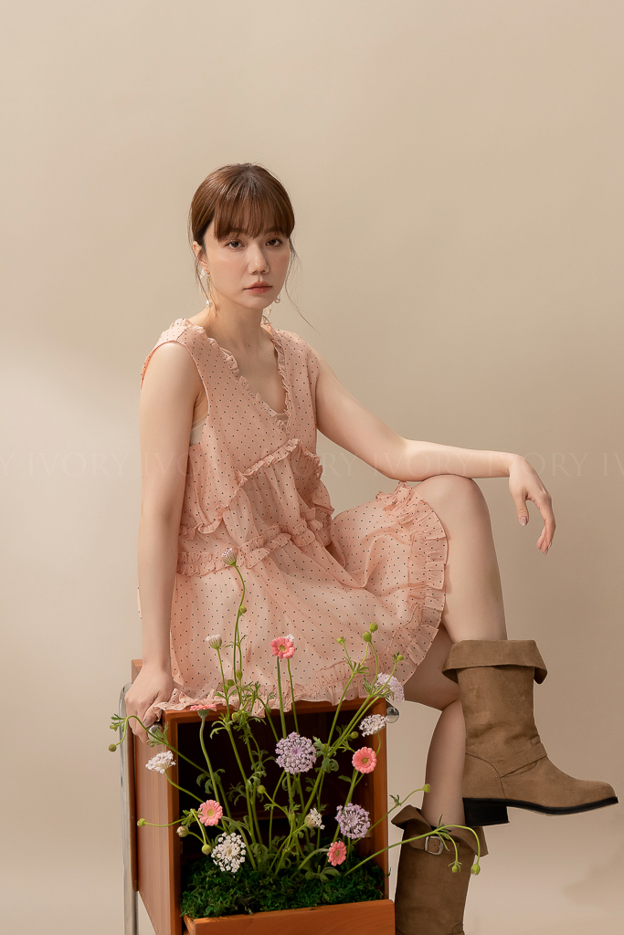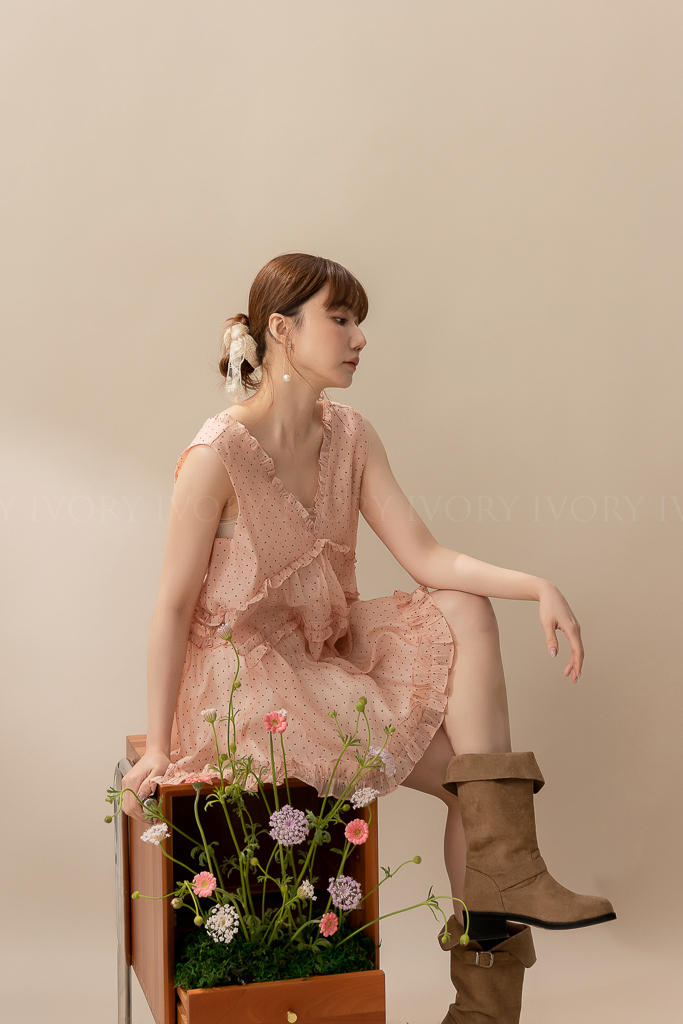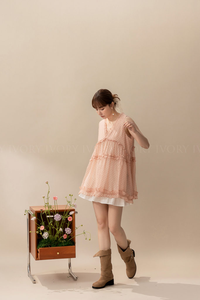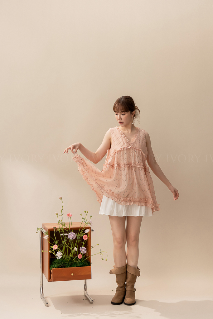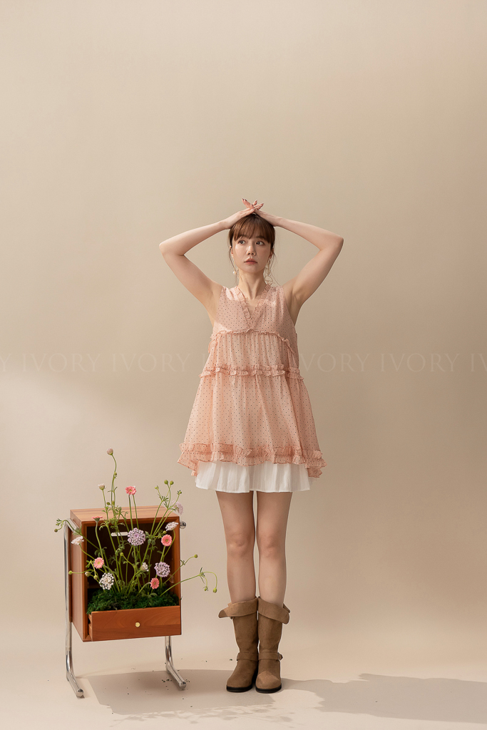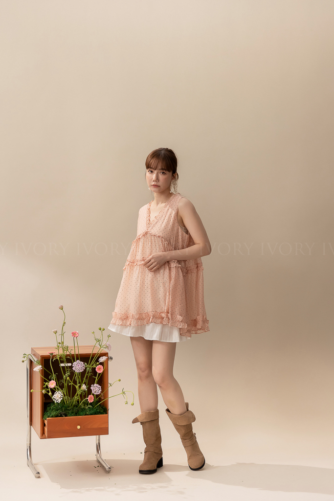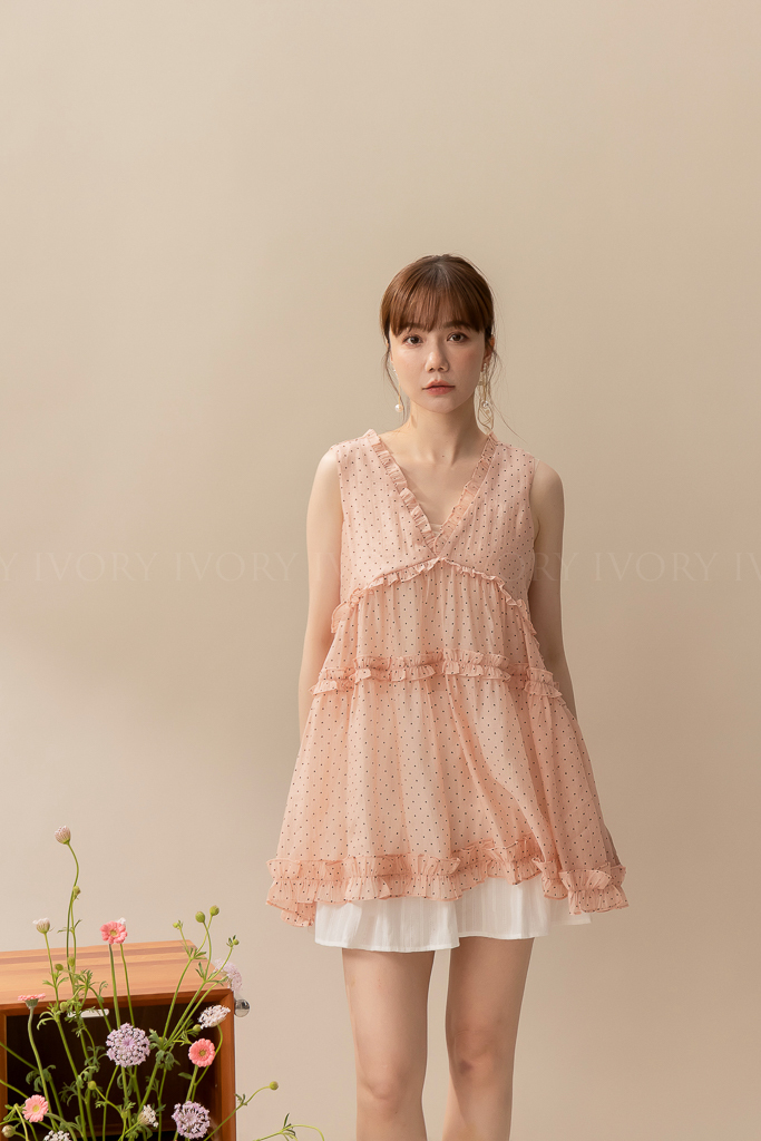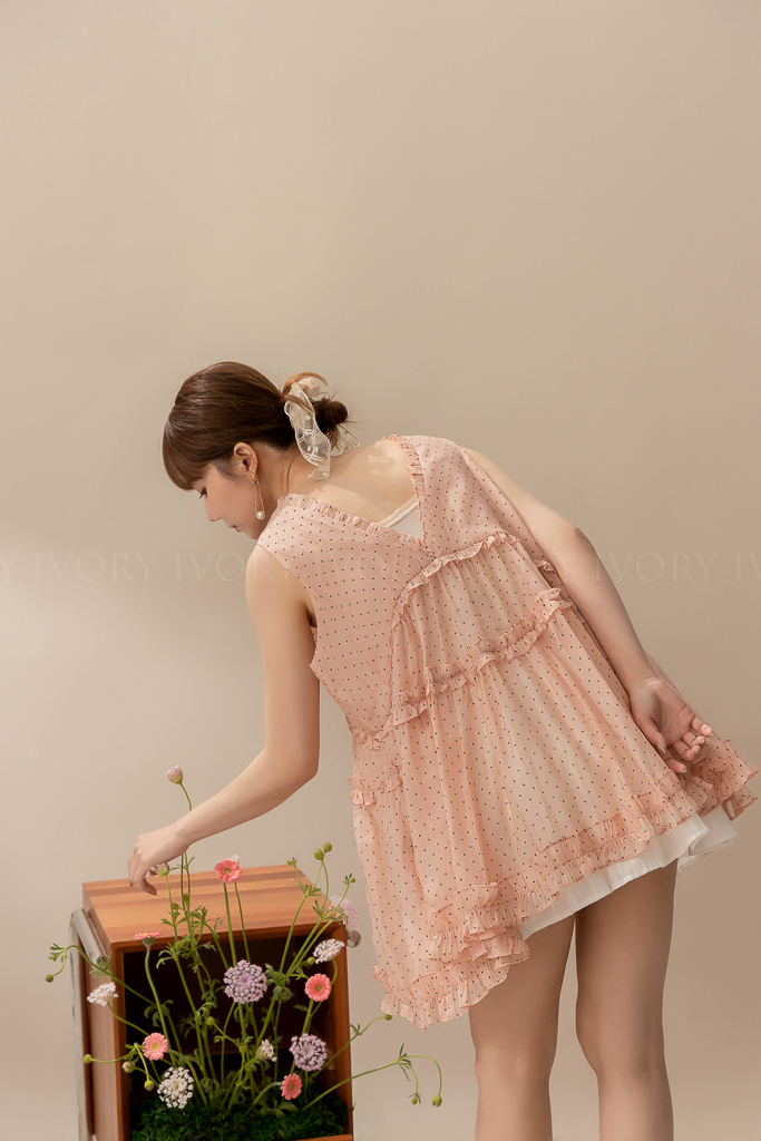 A54018超可愛捲捲荷葉洋裝式透紗背心<可青清單>