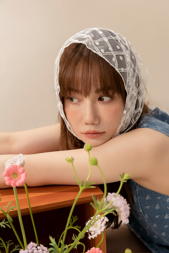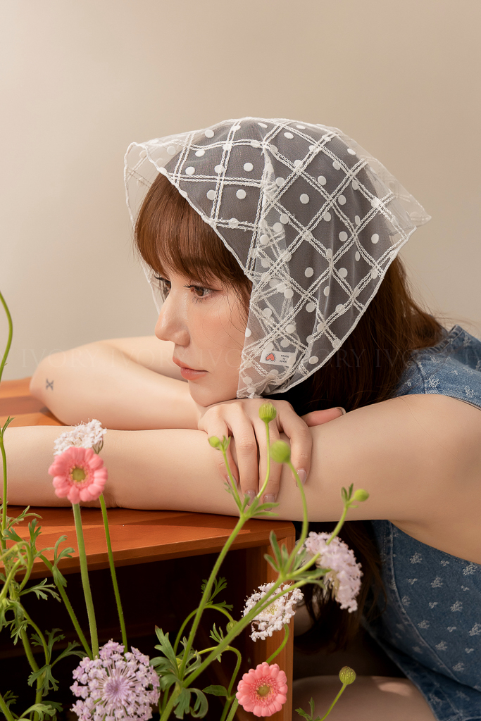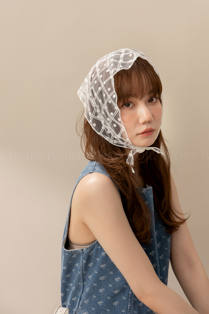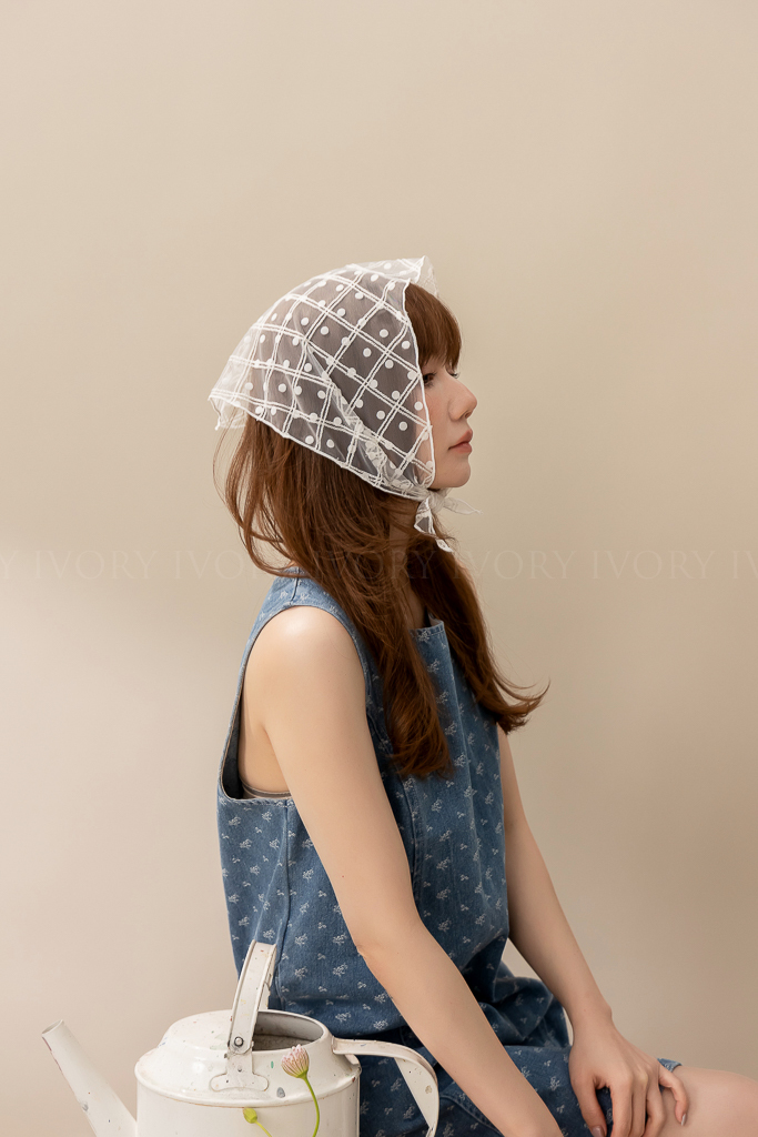 A54057超可愛透紗格子點點三角巾<KIMY清單>