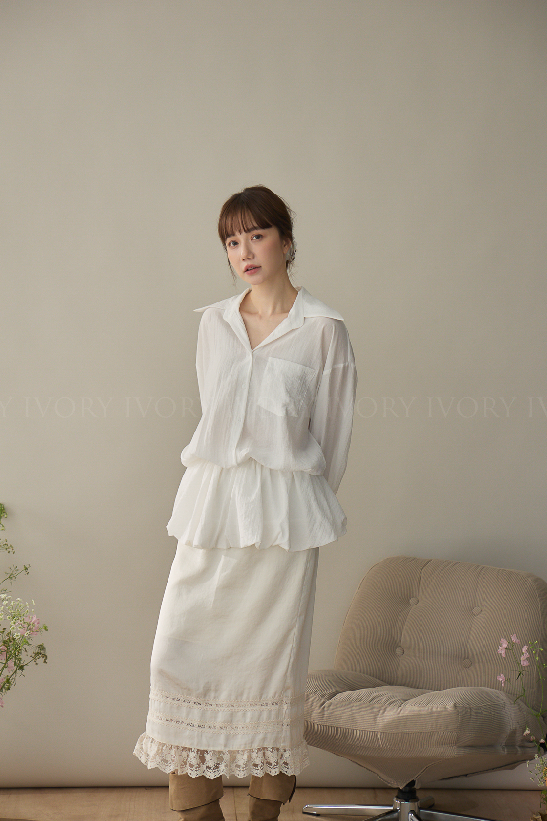 A60406蕾絲蛋糕光澤布鉛筆裙