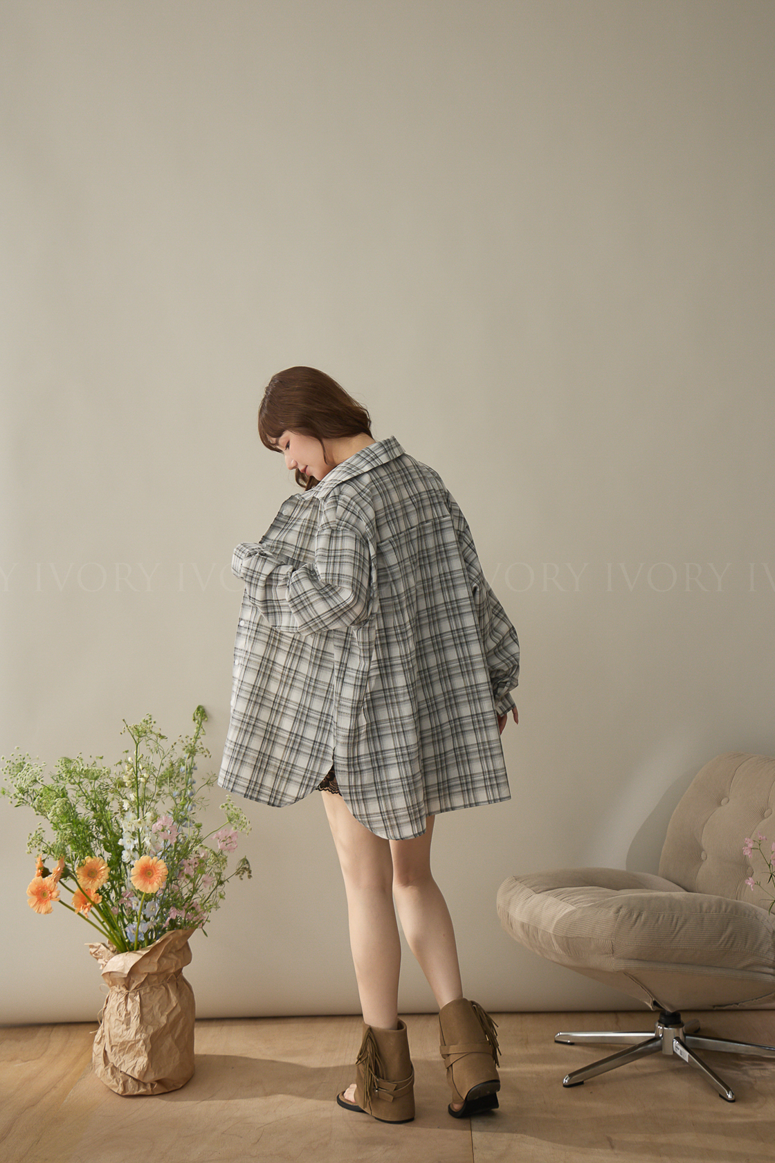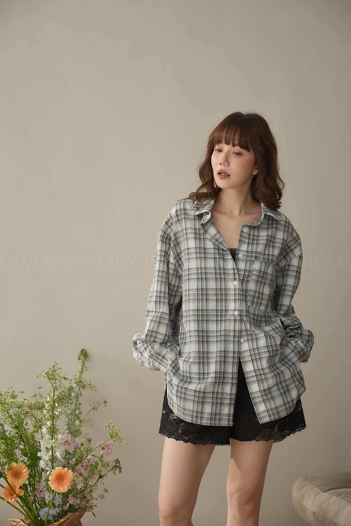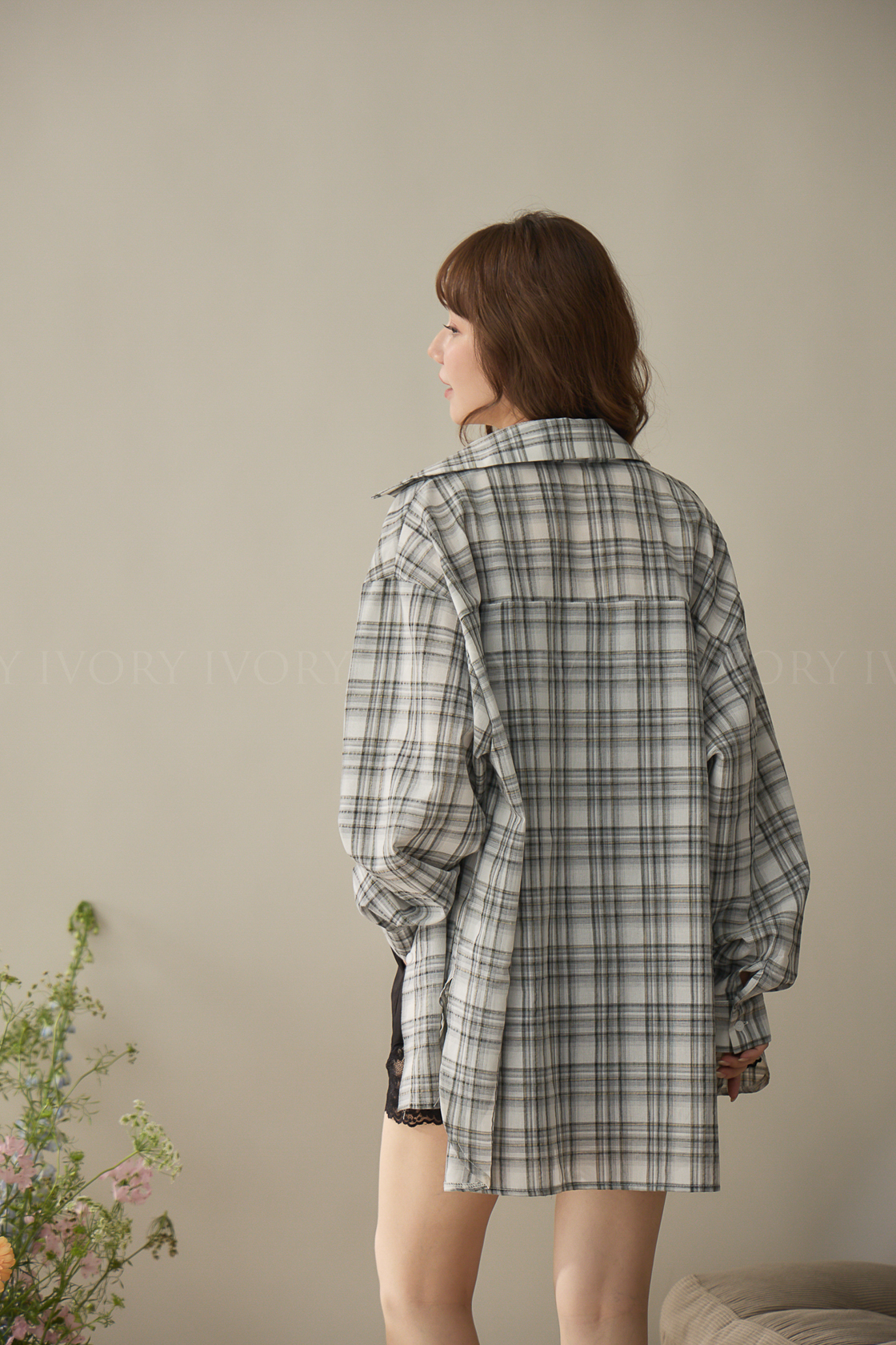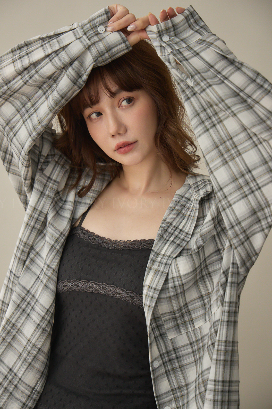 A60424率性格紋薄料襯衫