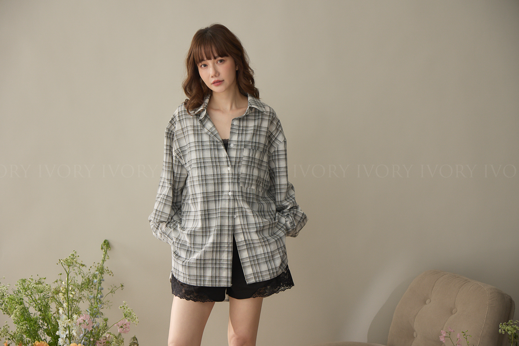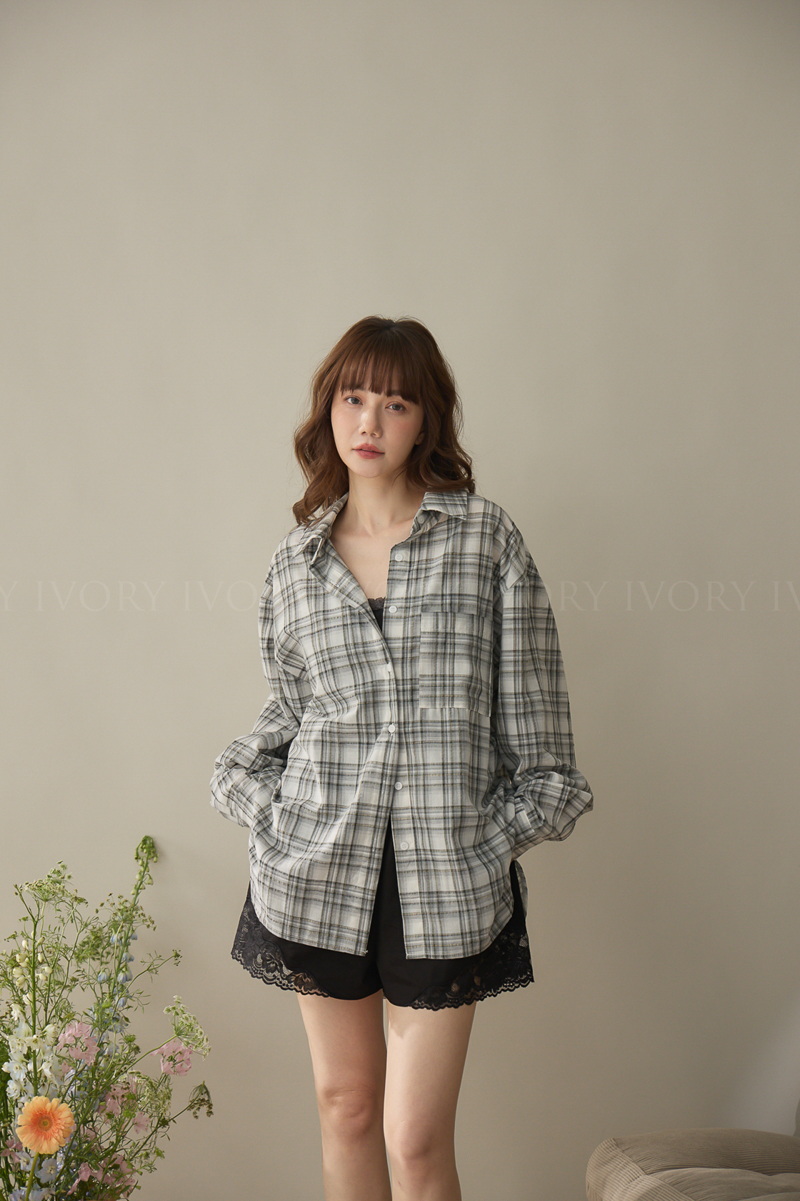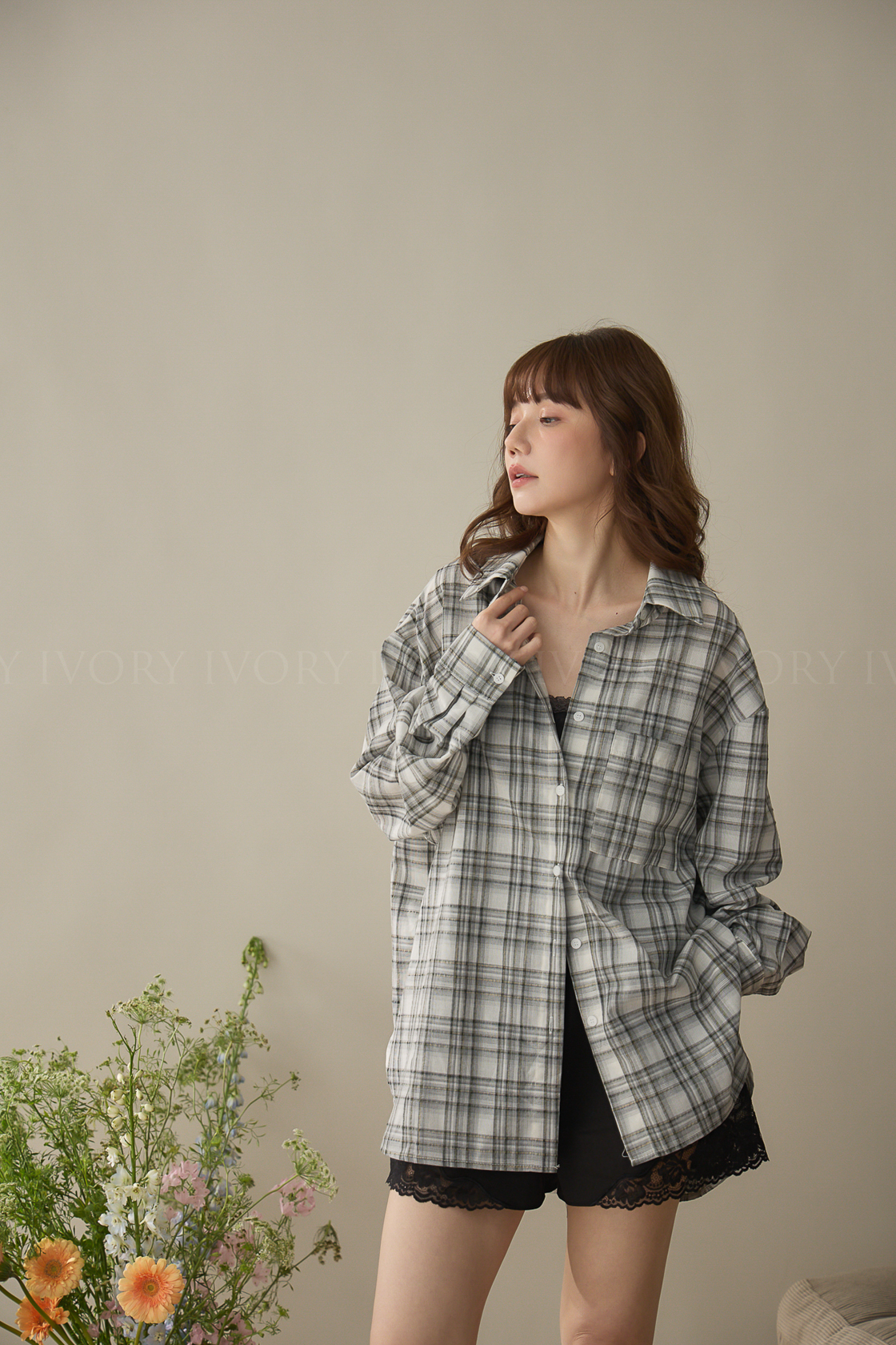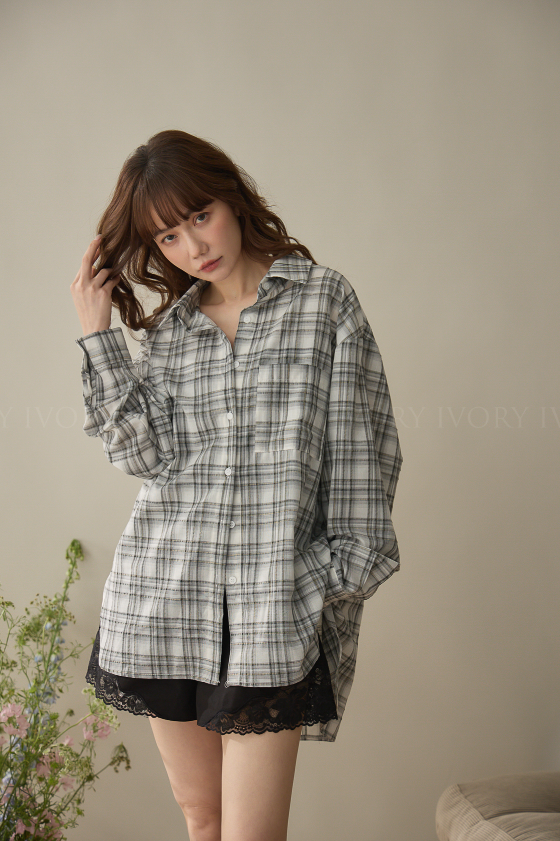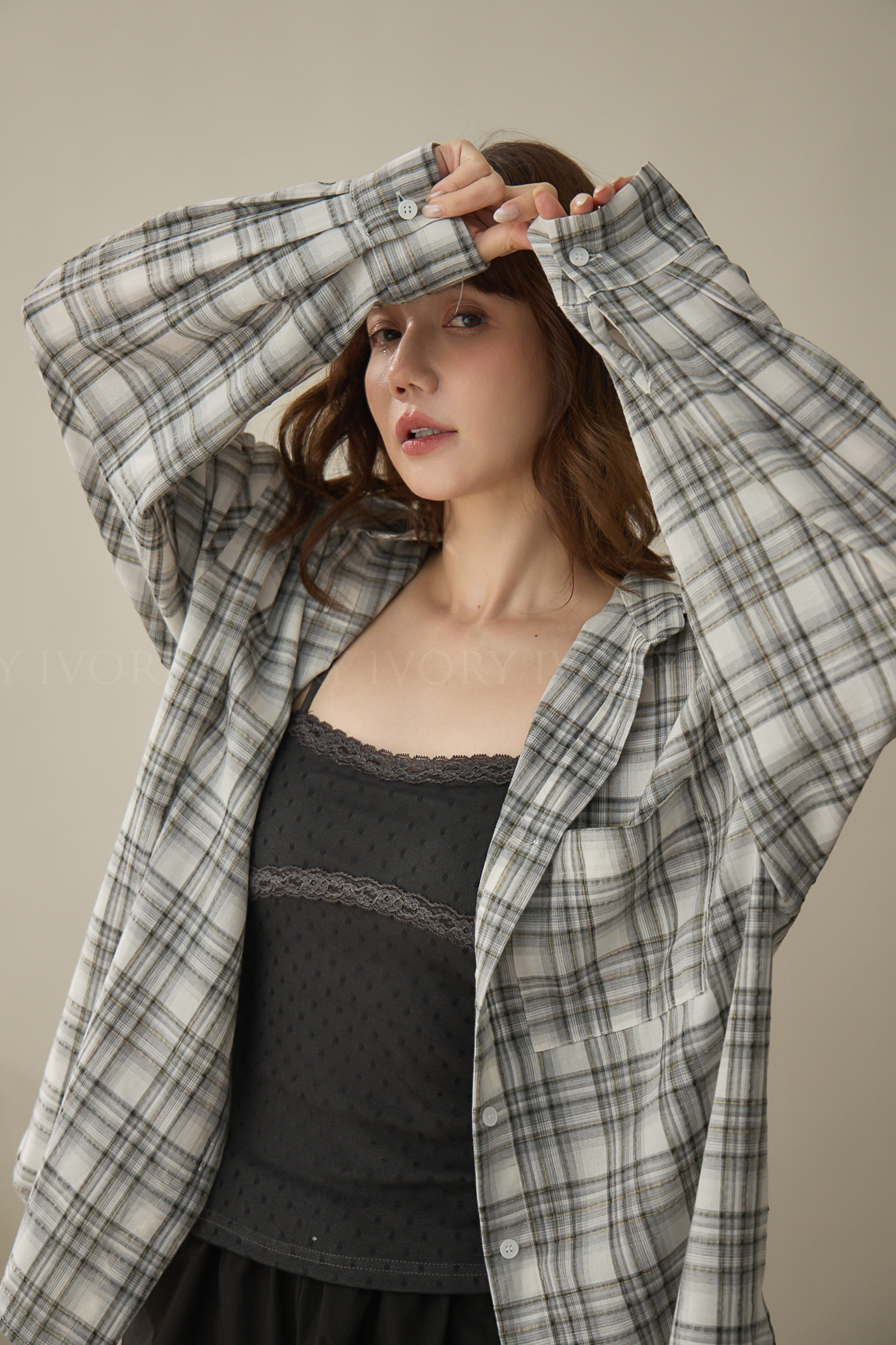 A60424率性格紋薄料襯衫