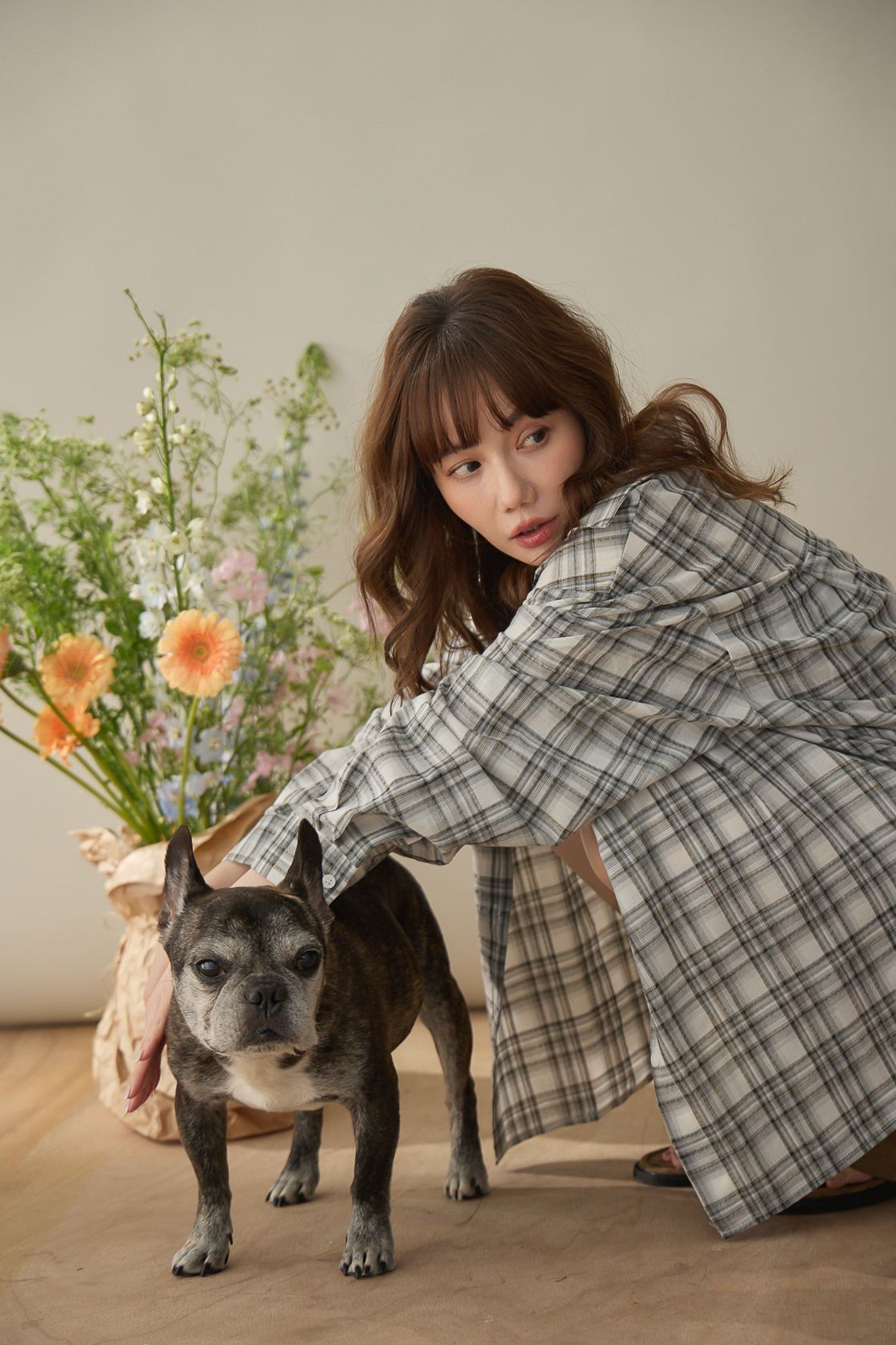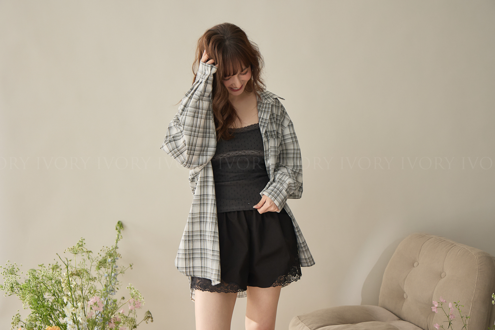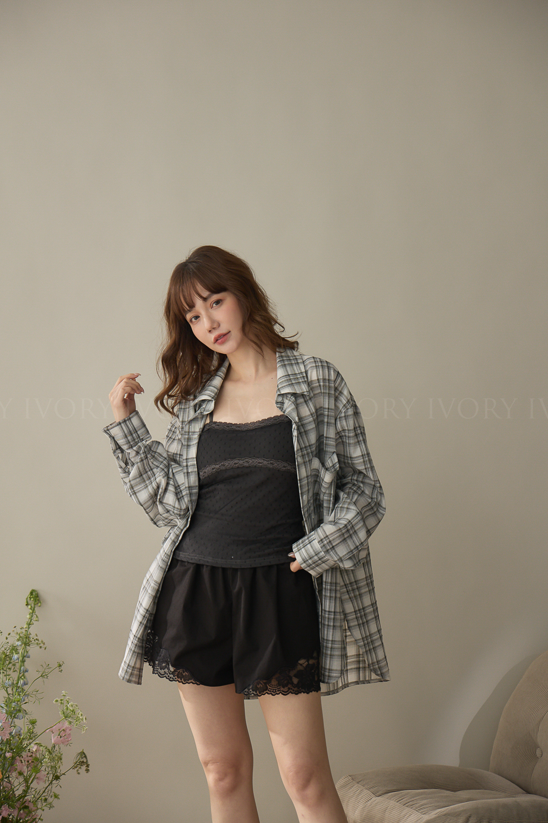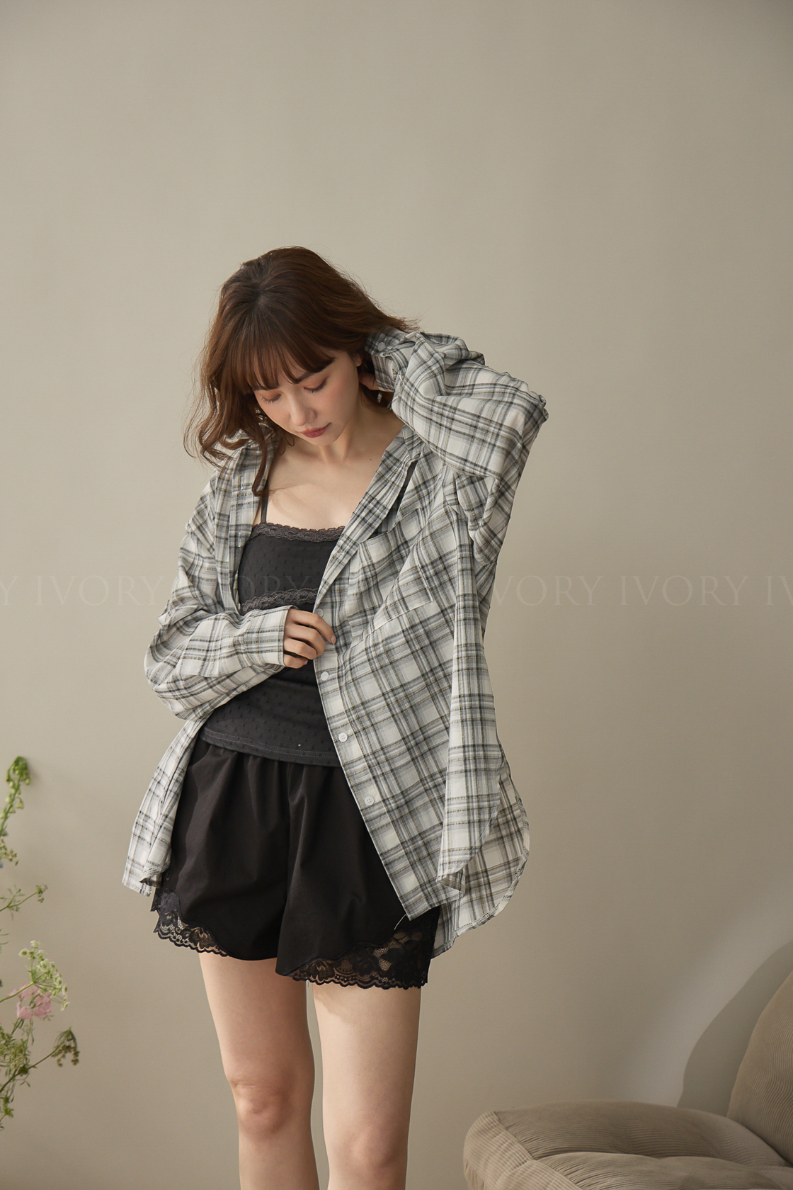 A60424率性格紋薄料襯衫