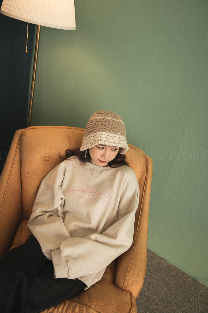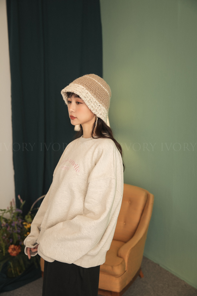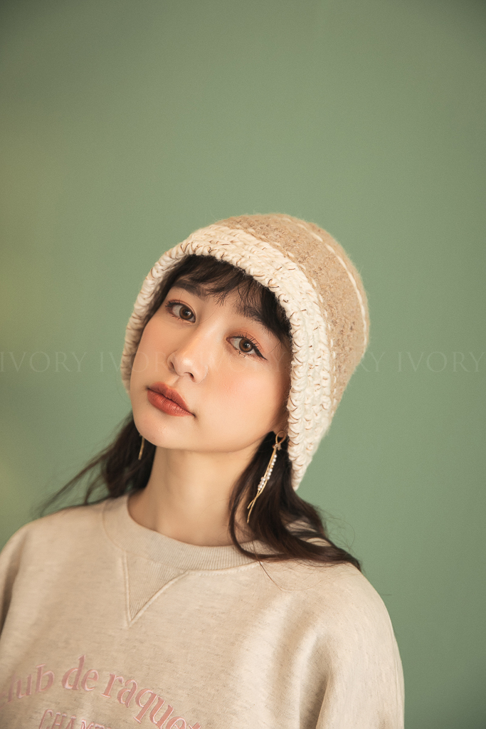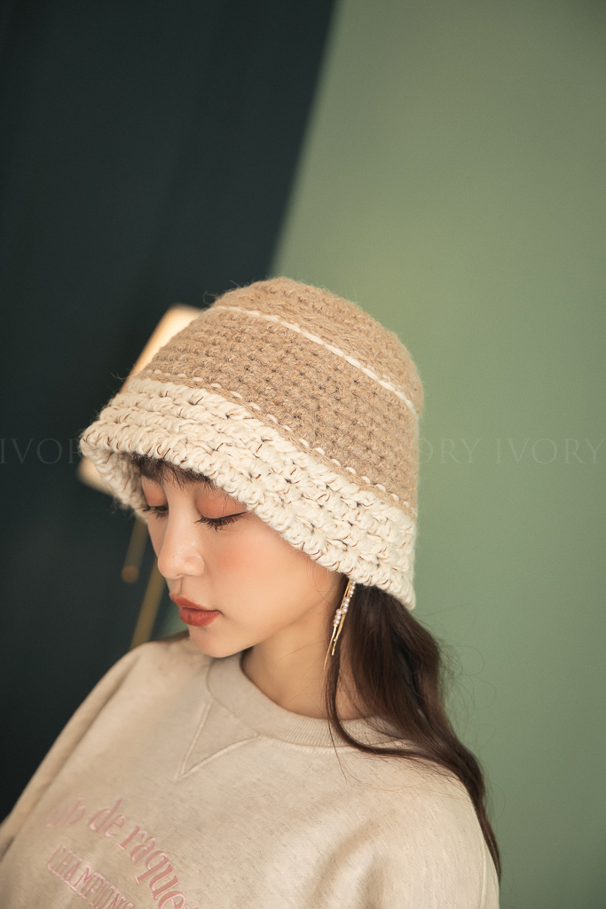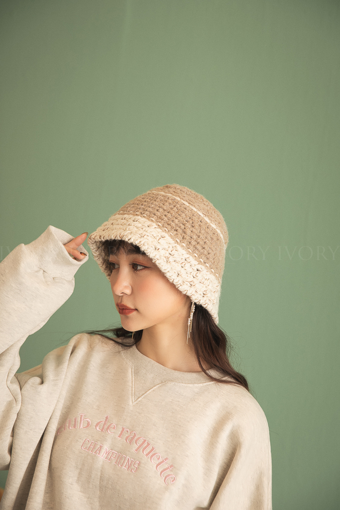 C12078超可愛撞色織紋粗勾針漁夫帽