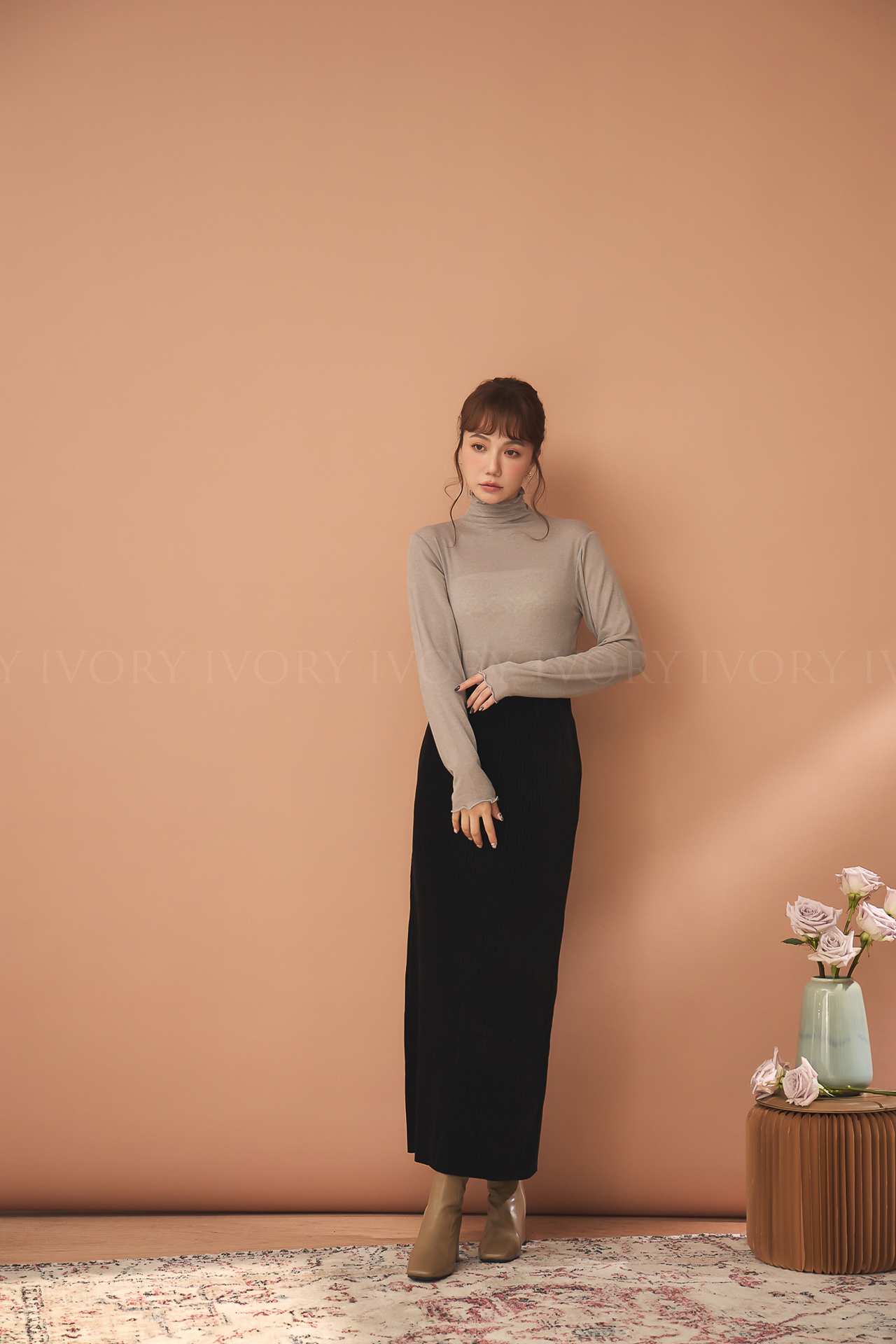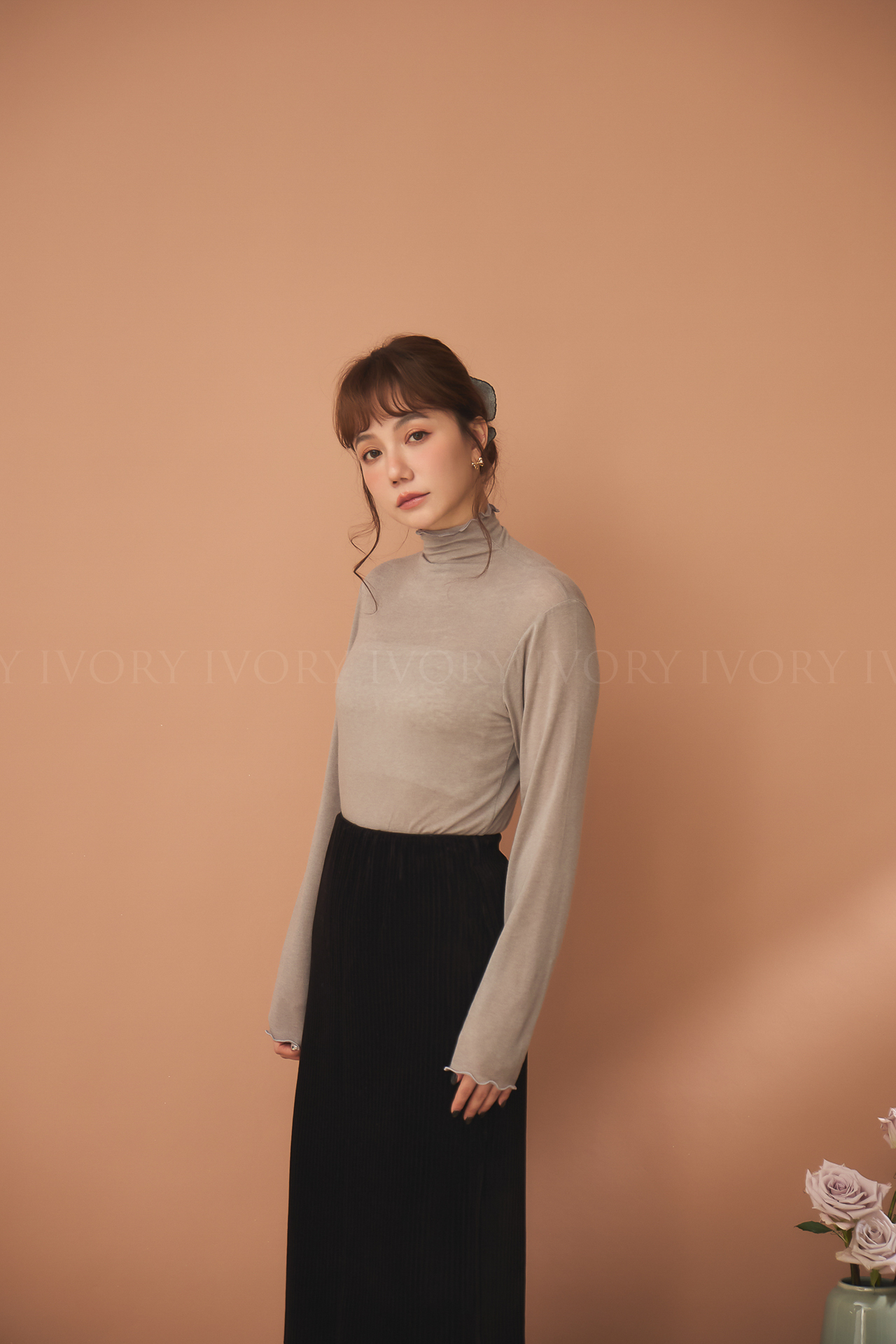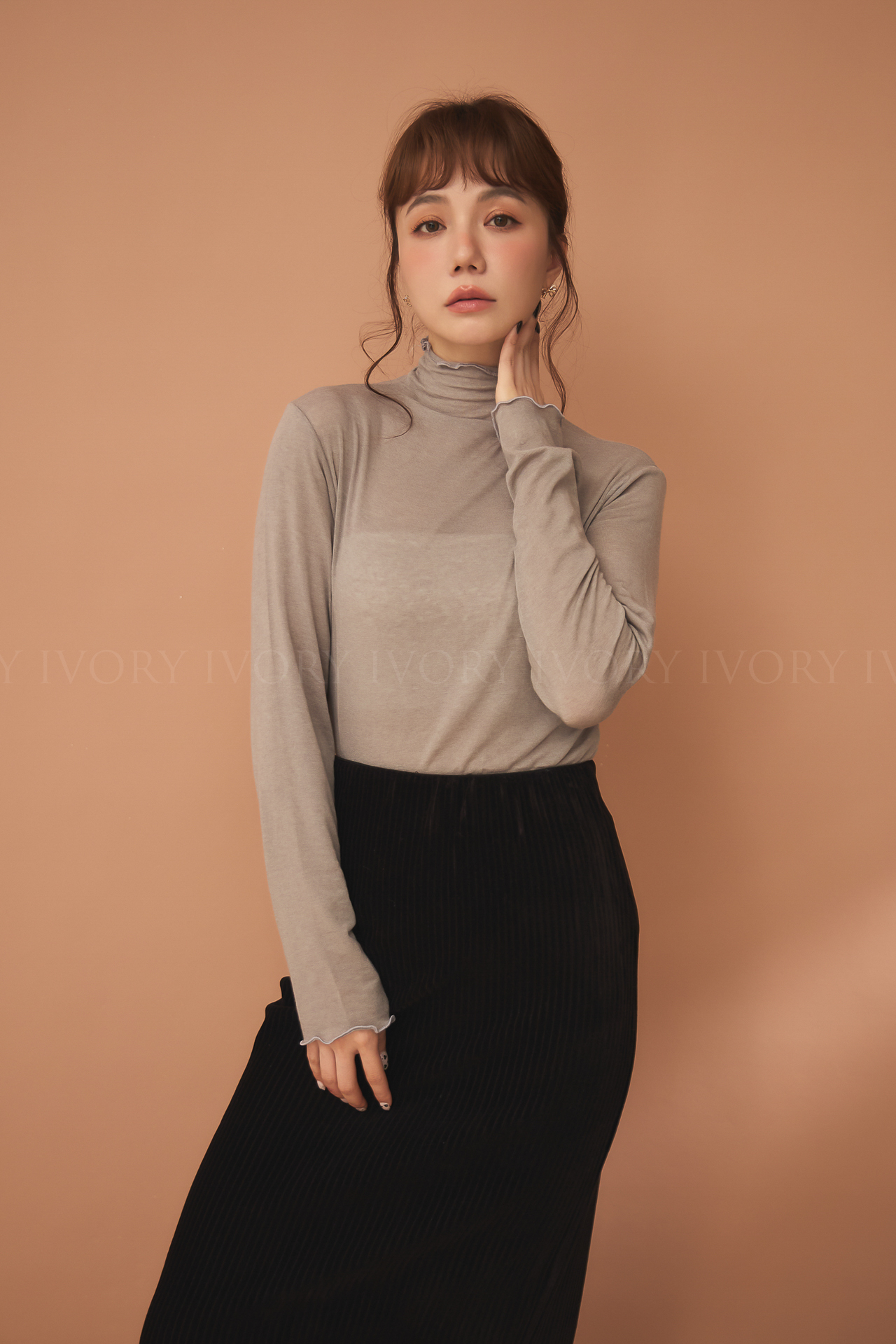 D51214捲捲波浪滾邊羊毛高領內搭