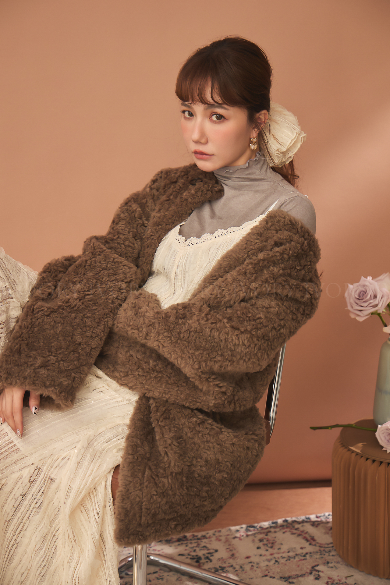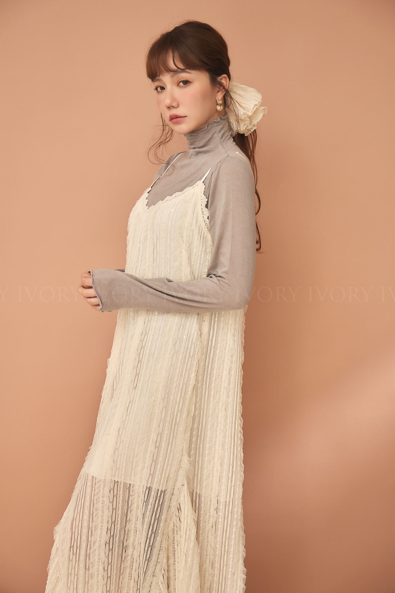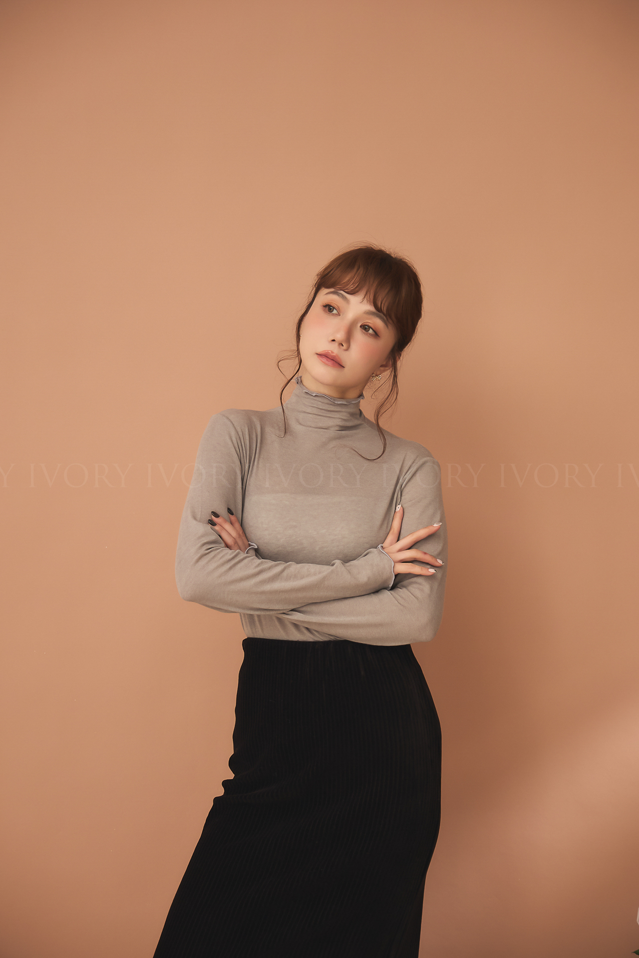 D51214捲捲波浪滾邊羊毛高領內搭