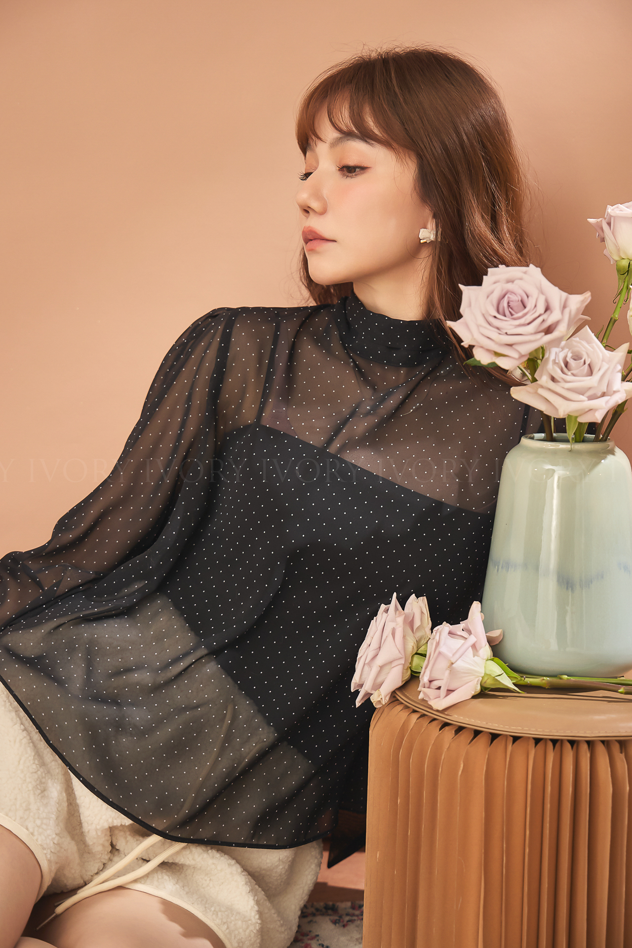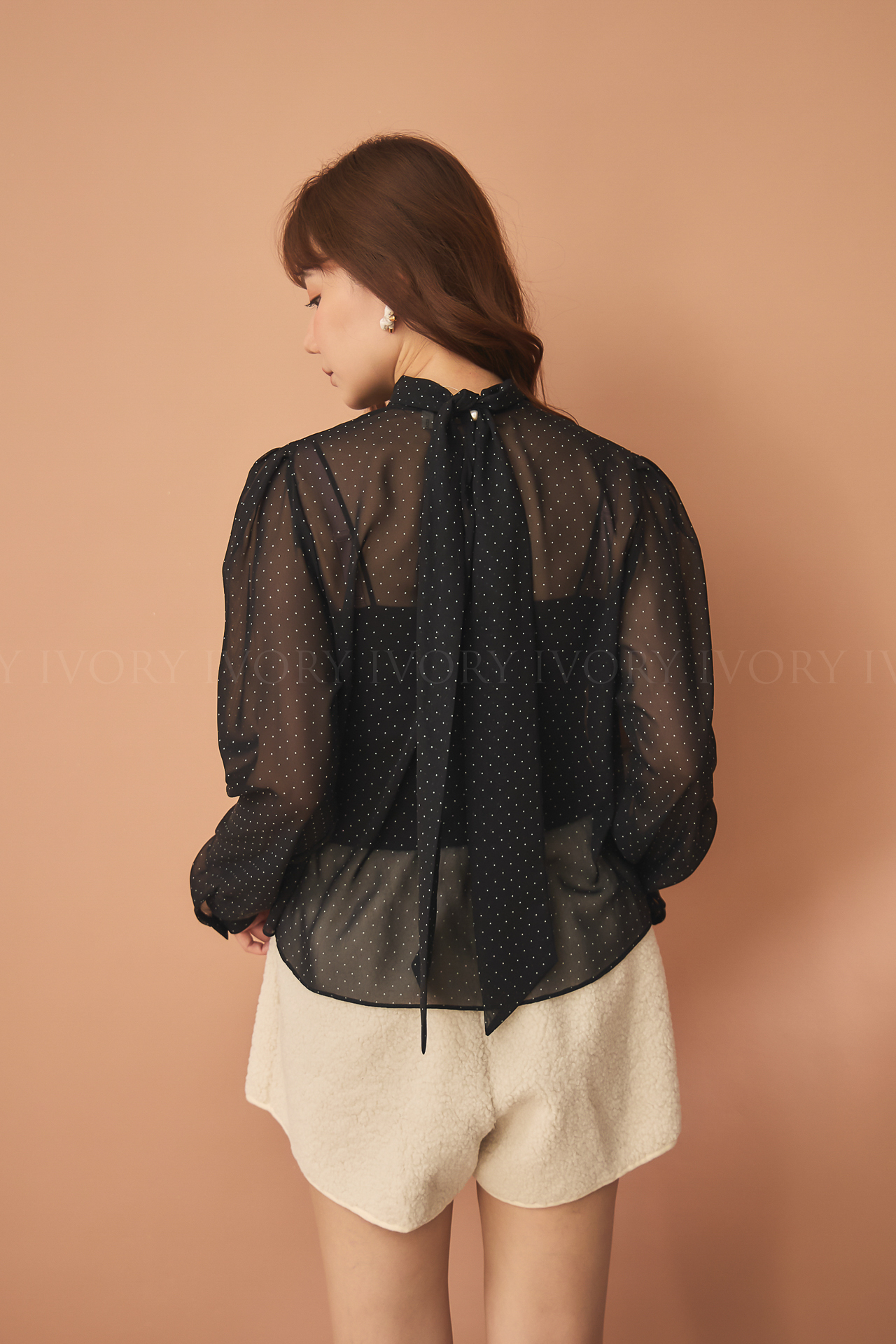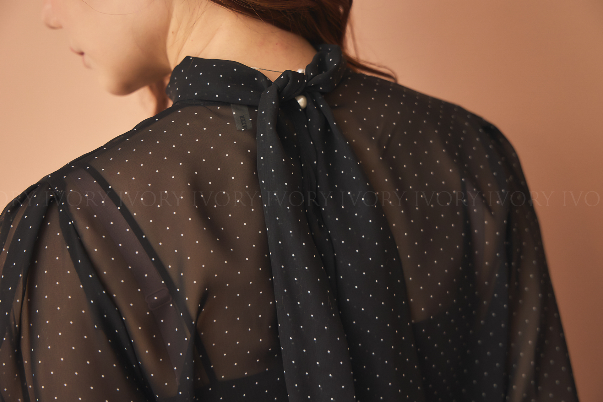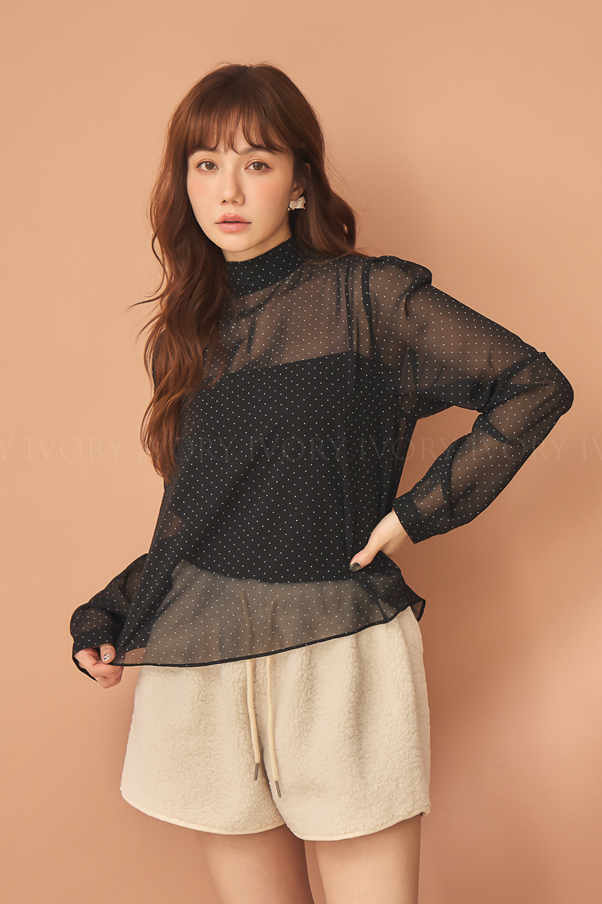 D51222赫本風透感點點雪紡上衣