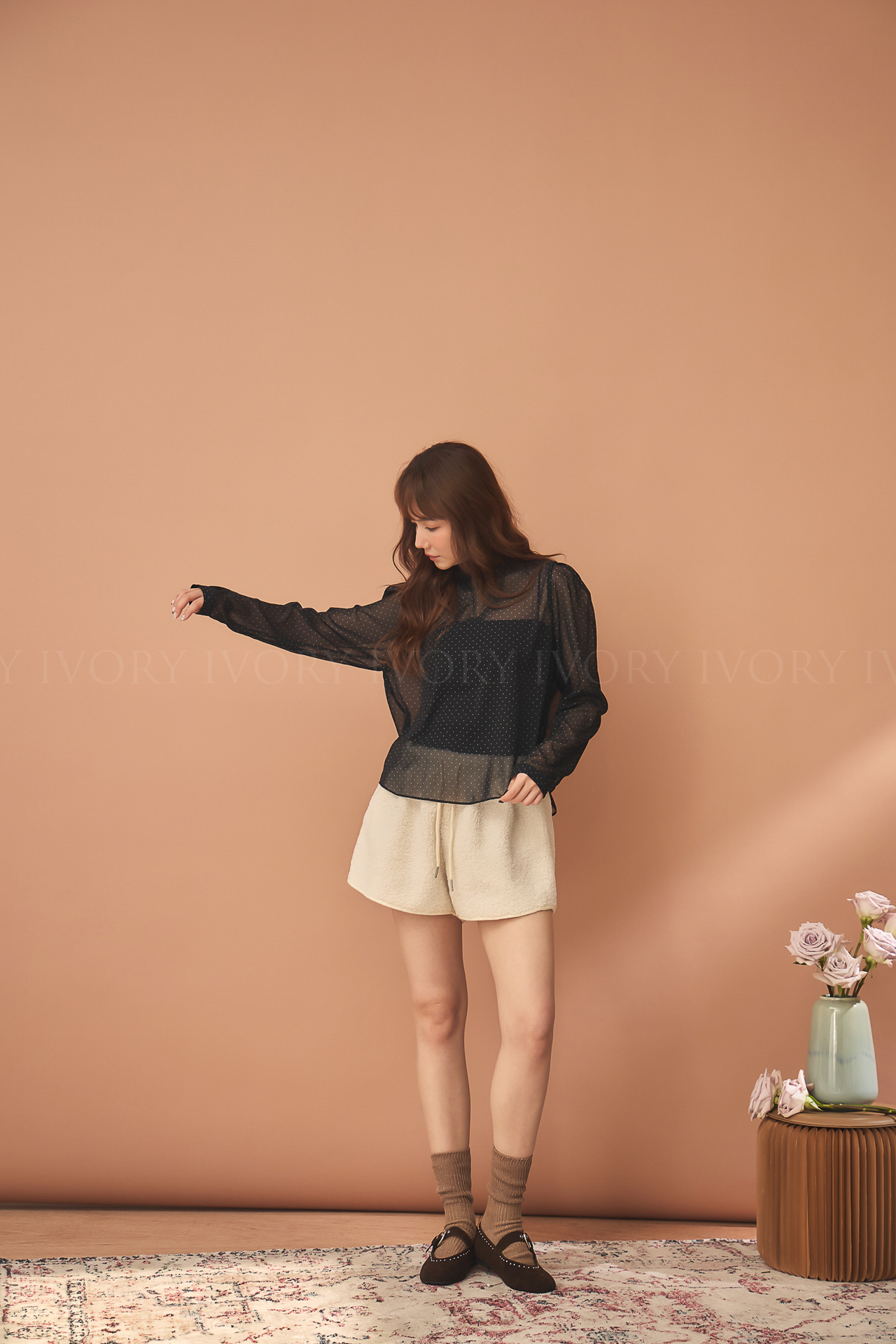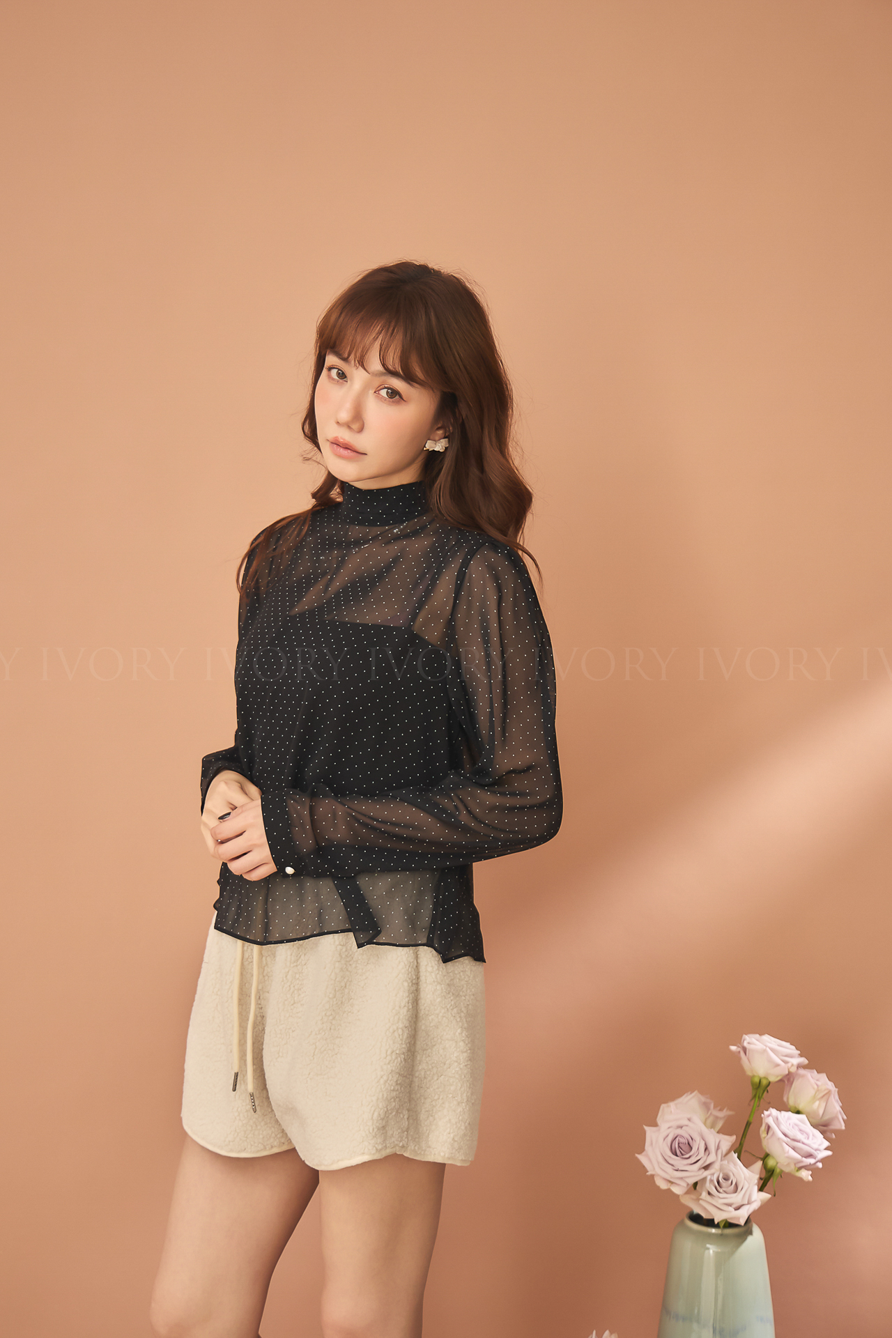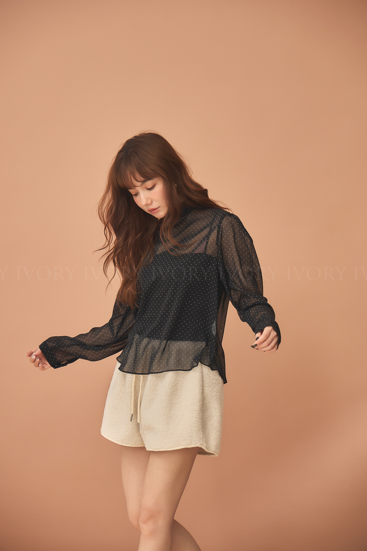 D51222赫本風透感點點雪紡上衣