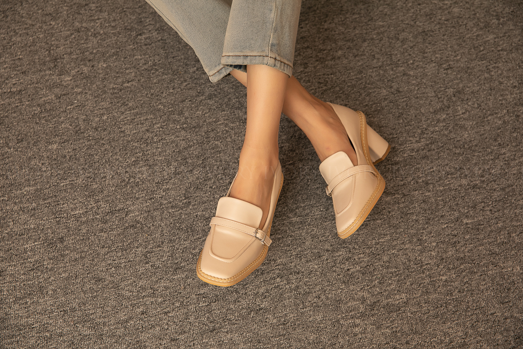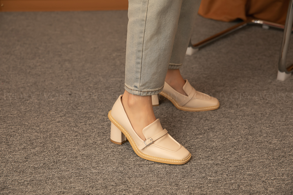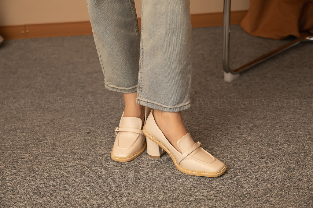 J21079精品質感復古側釦環方頭樂福跟鞋