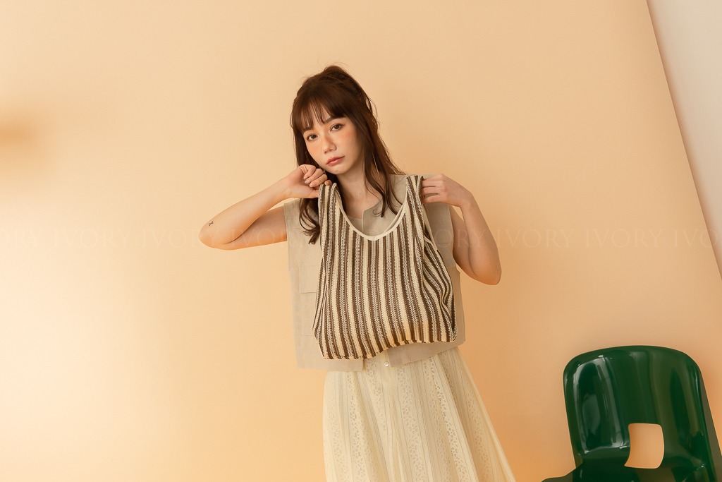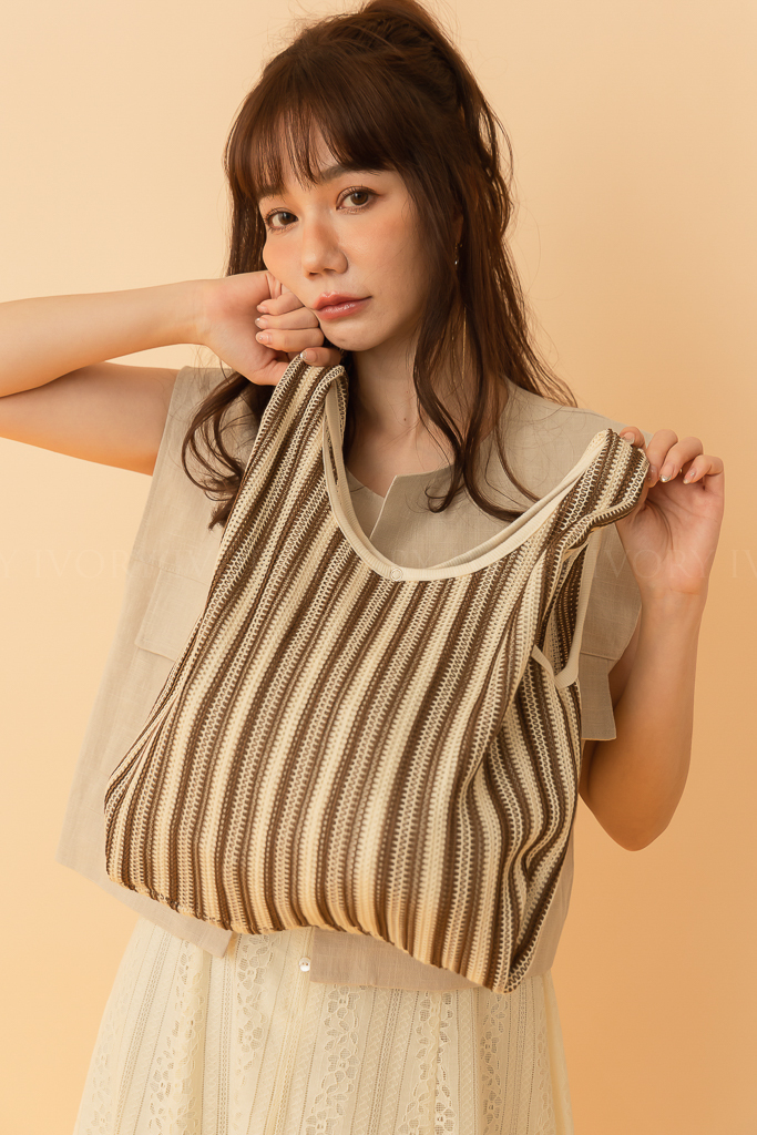 J46074大容量!夏日度假條紋編織包