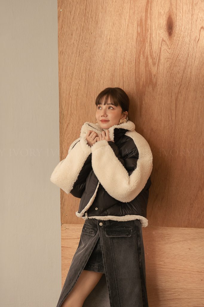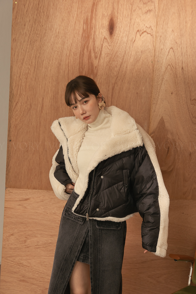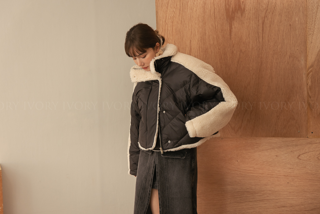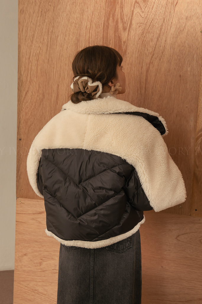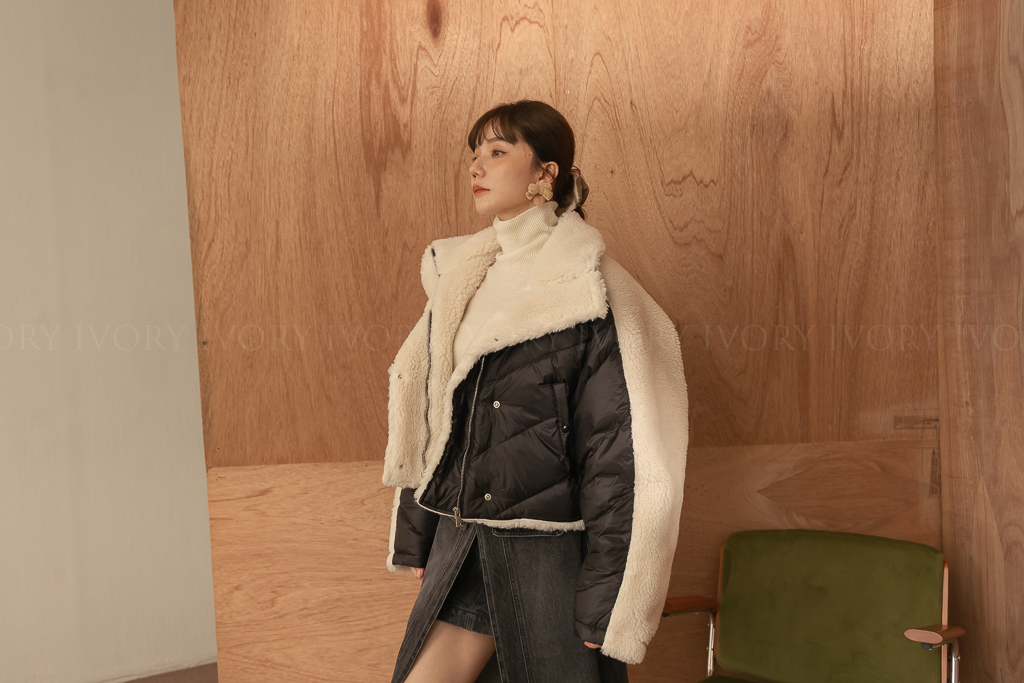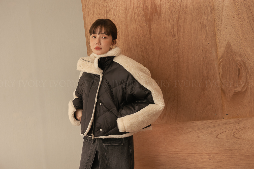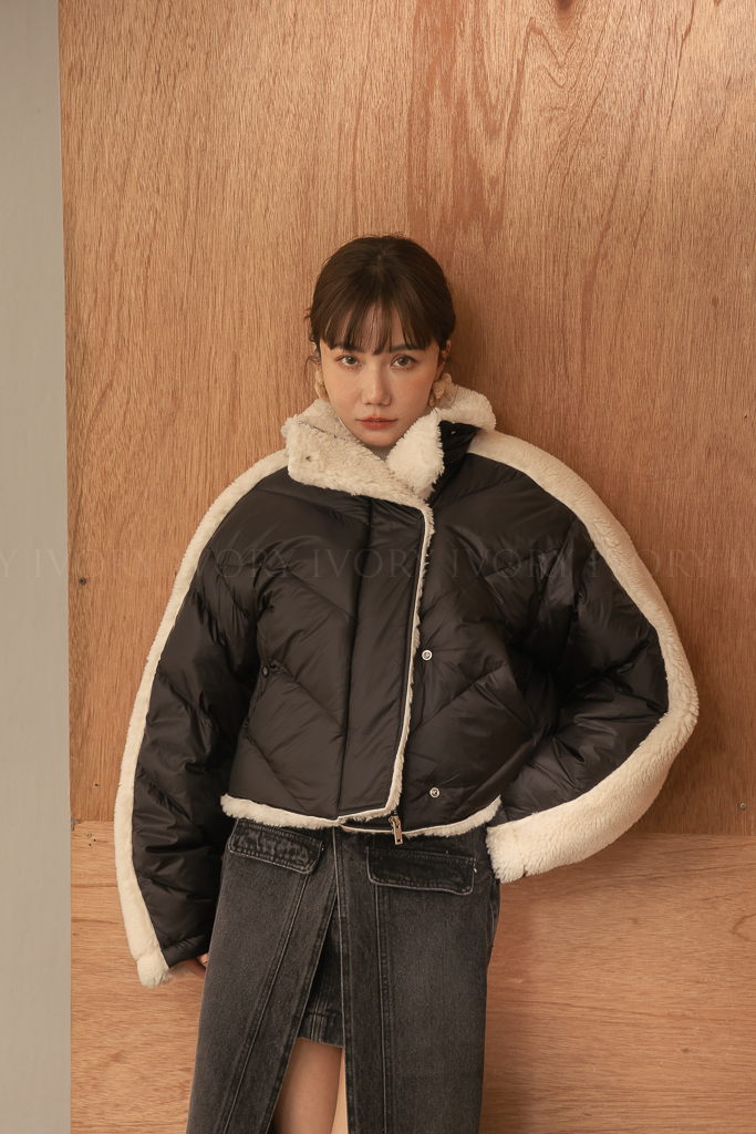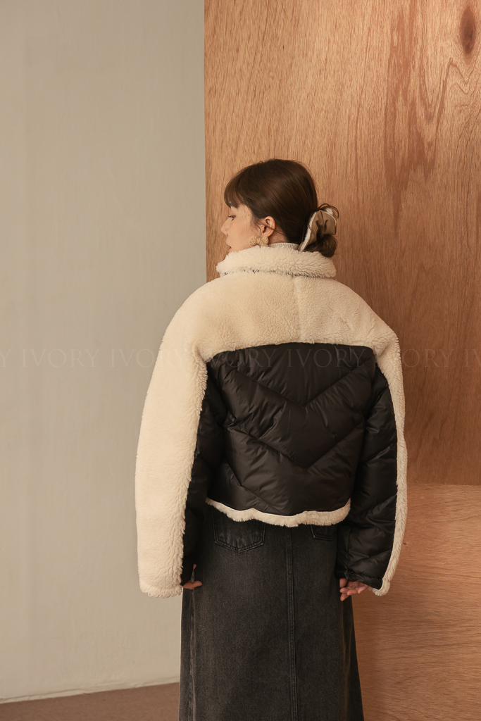 J51046可愛拼接感QQ毛澎澎鴨絨外套
