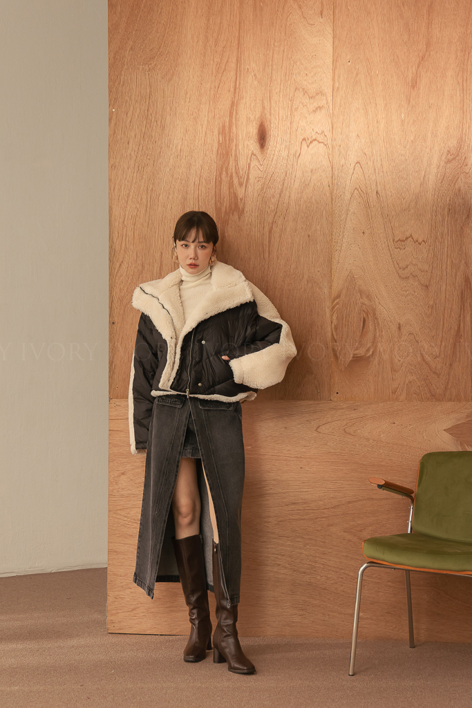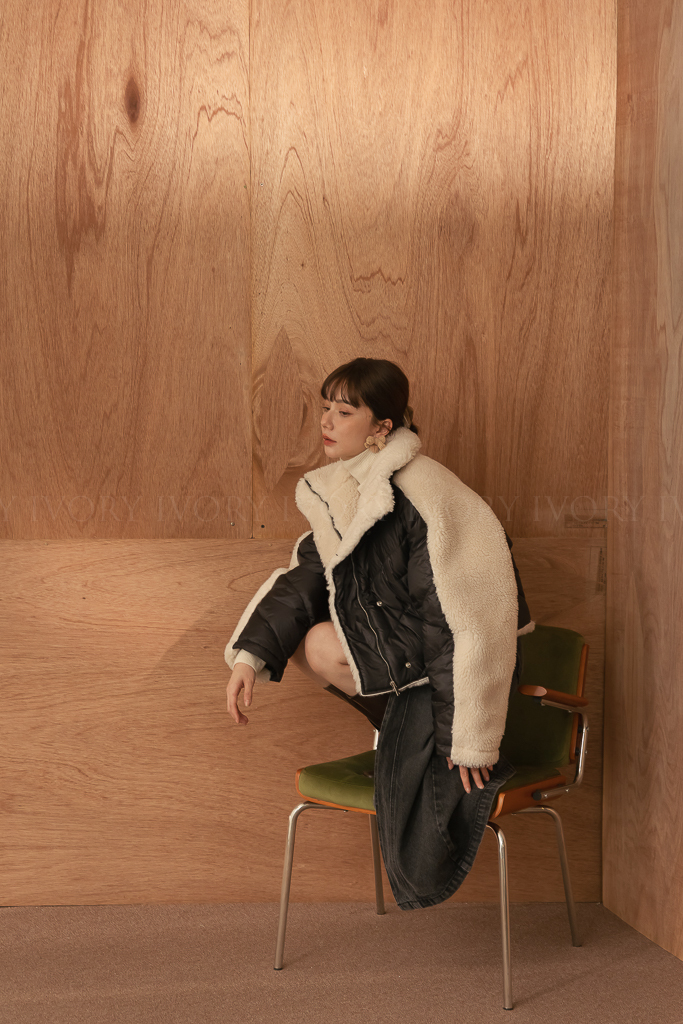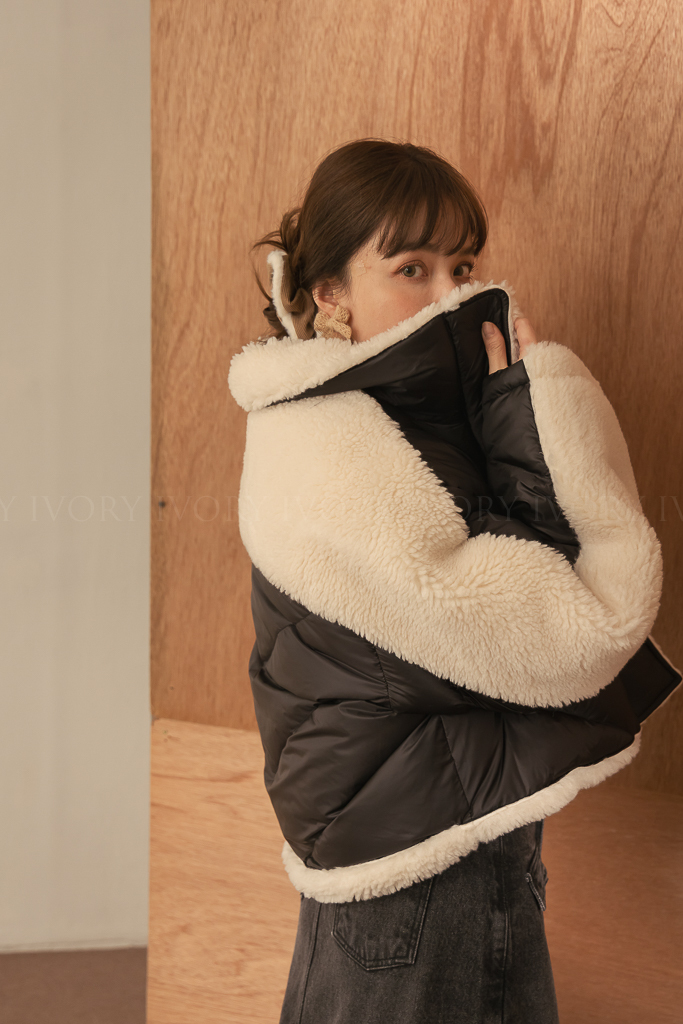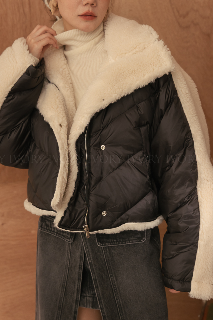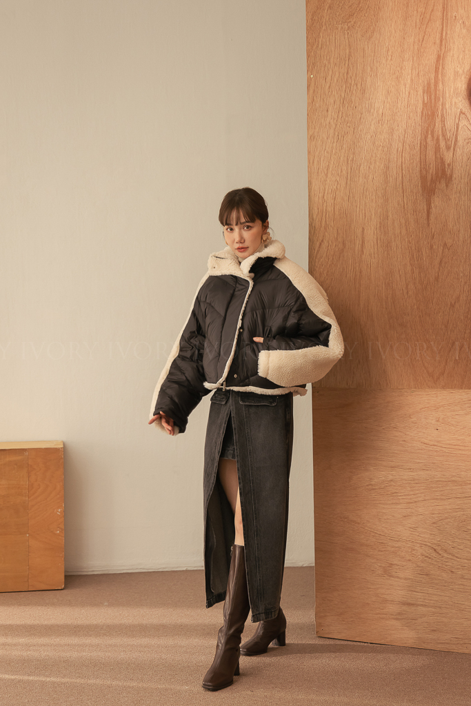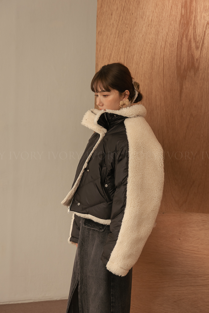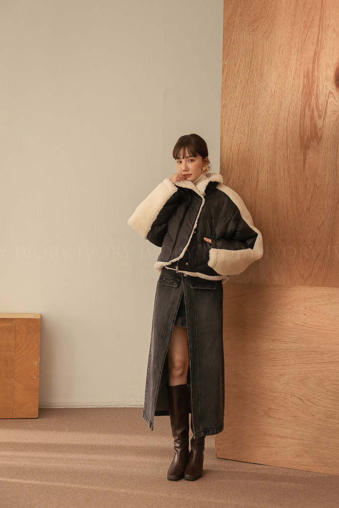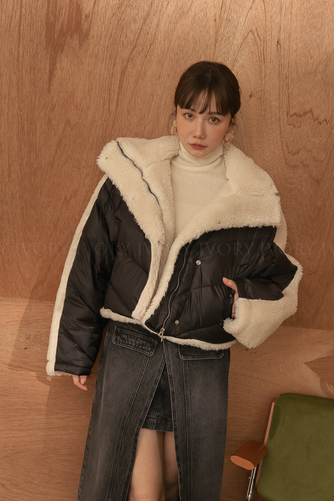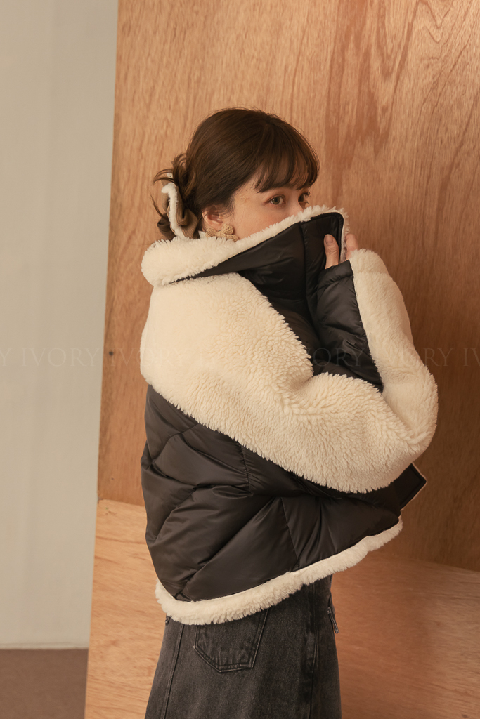J51046可愛拼接感QQ毛澎澎鴨絨外套