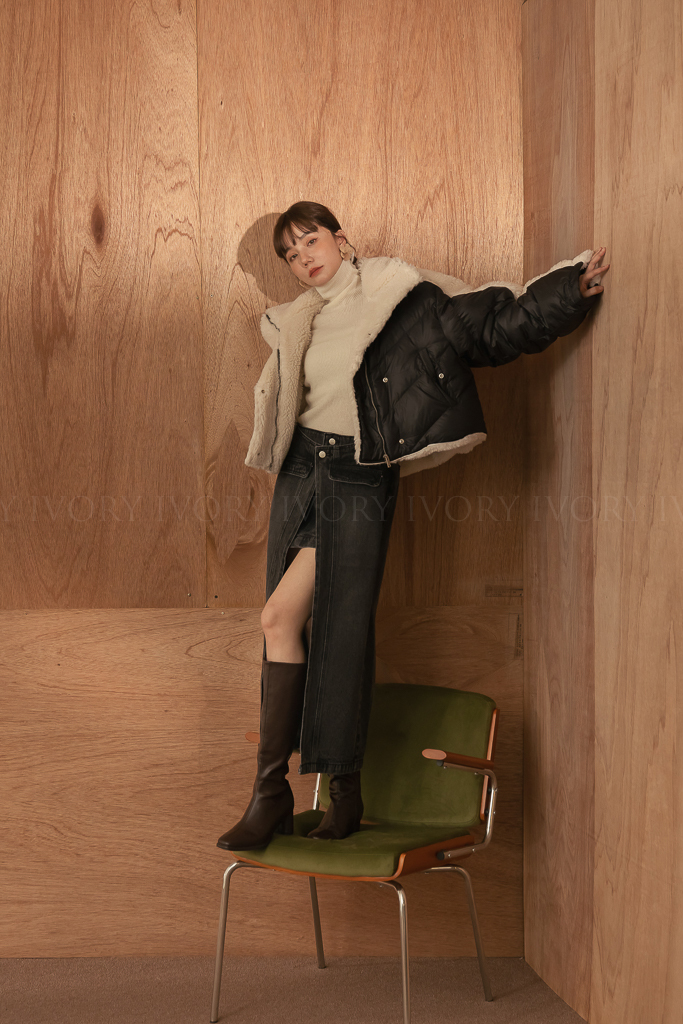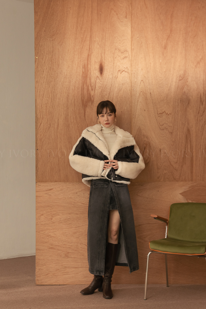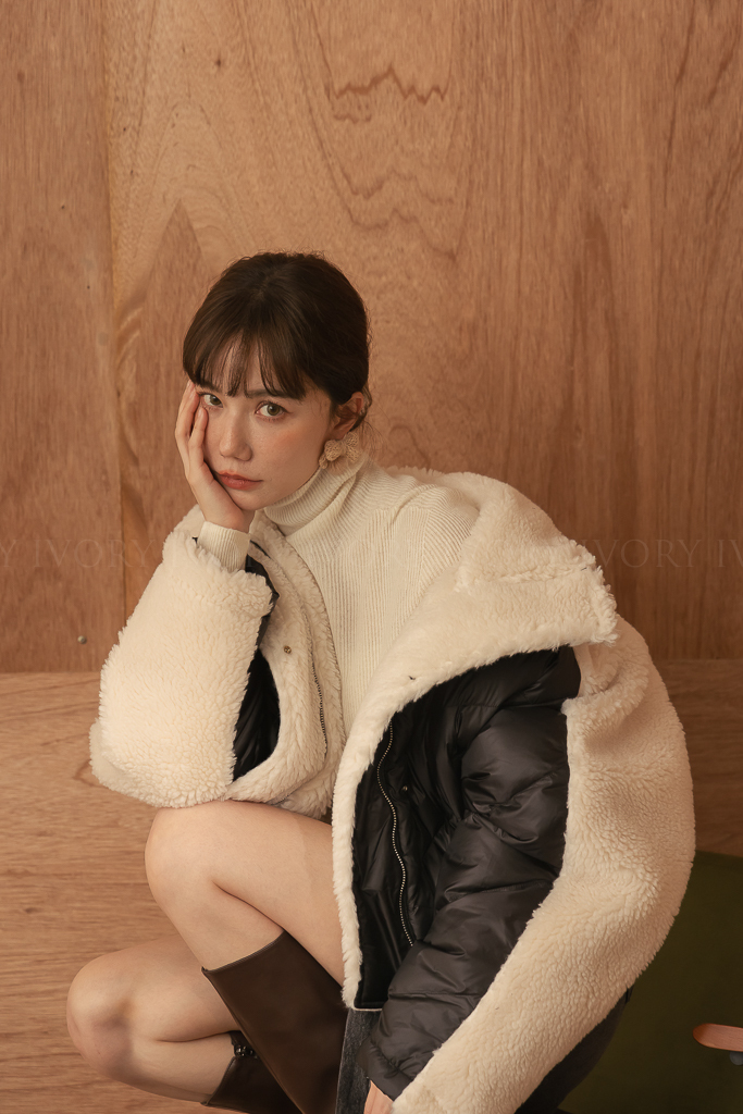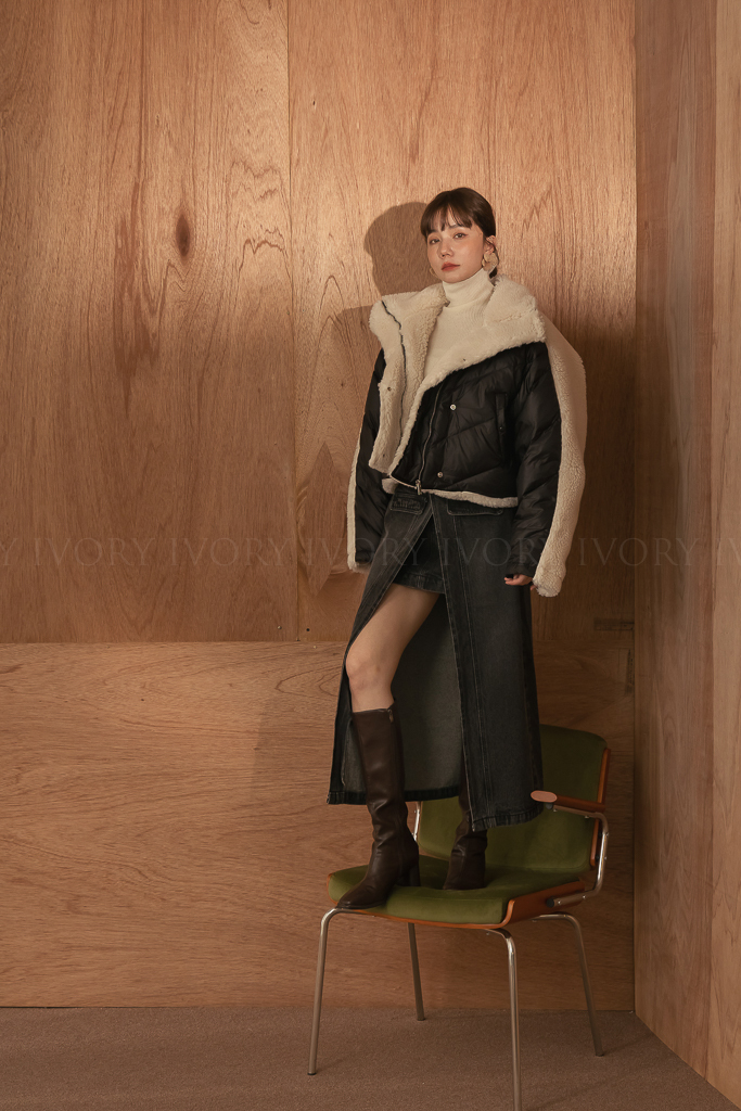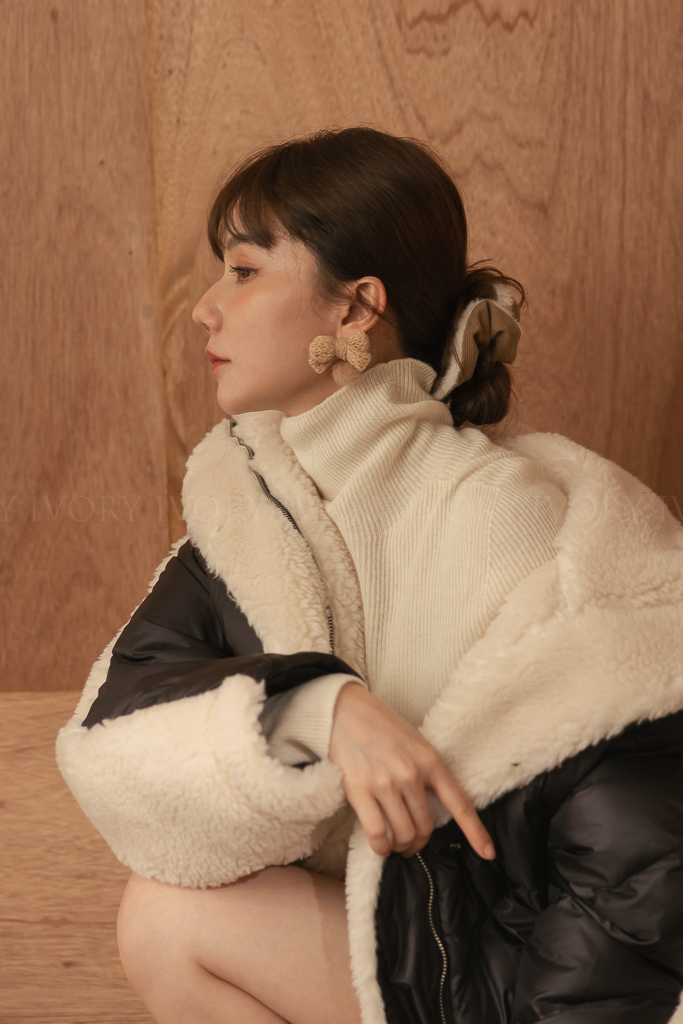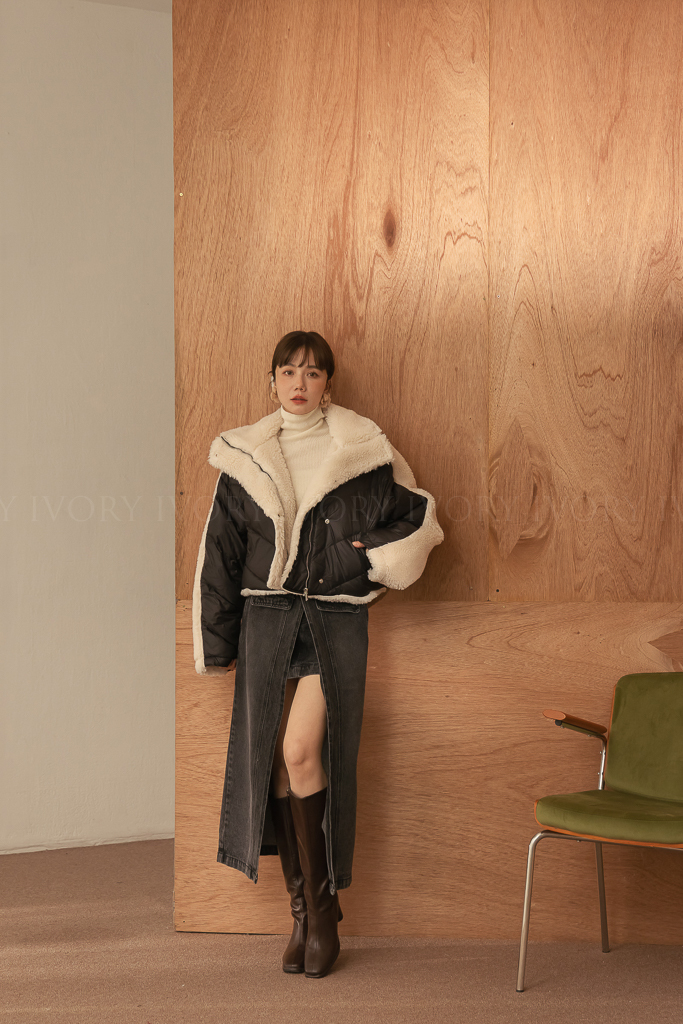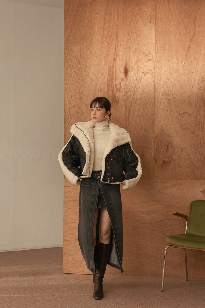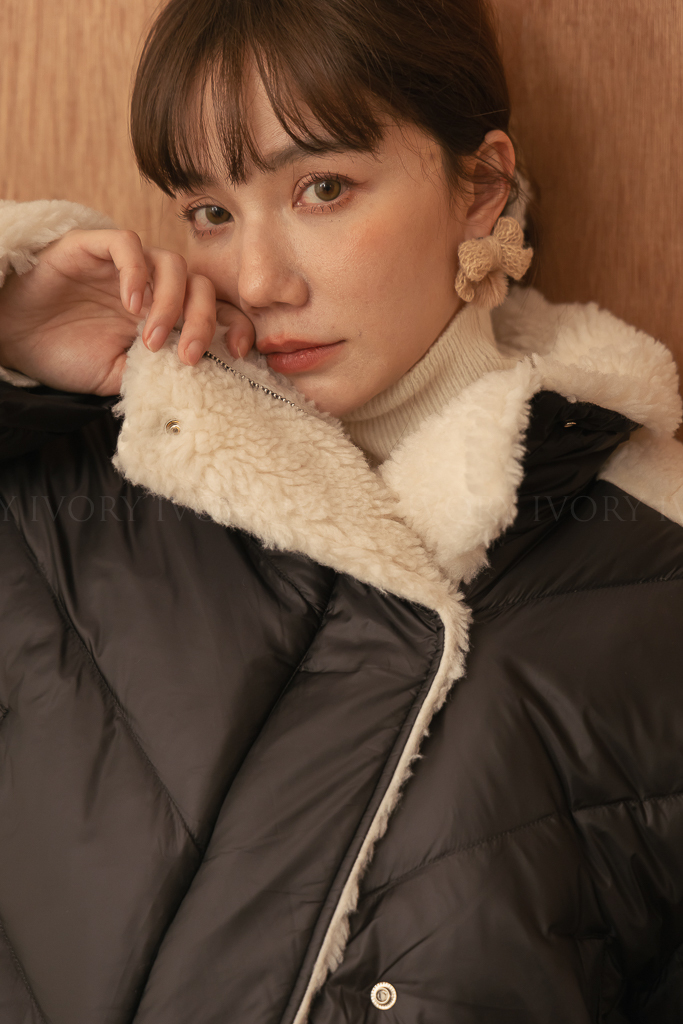 J51046可愛拼接感QQ毛澎澎鴨絨外套
