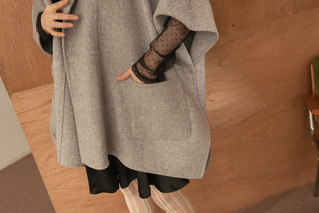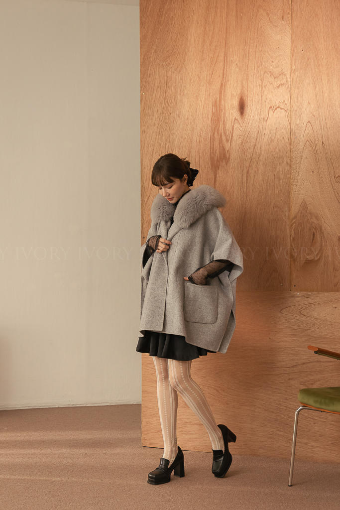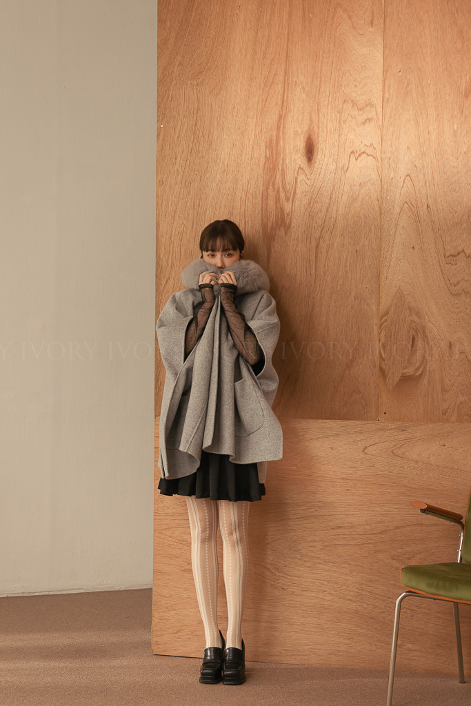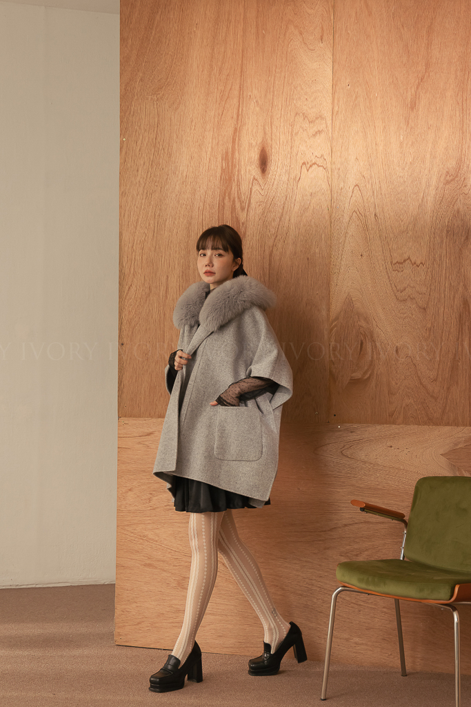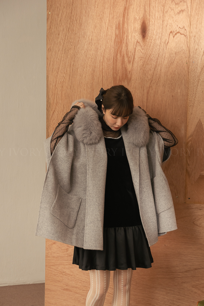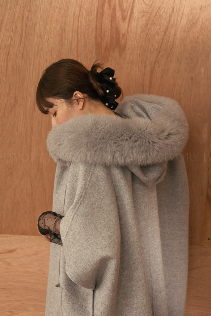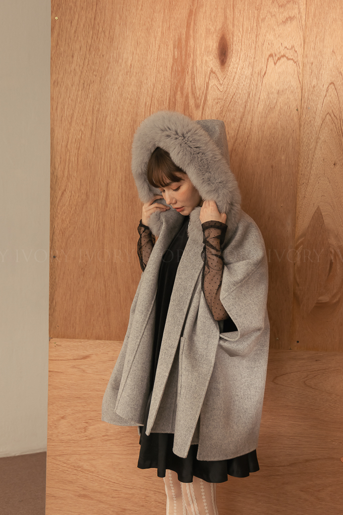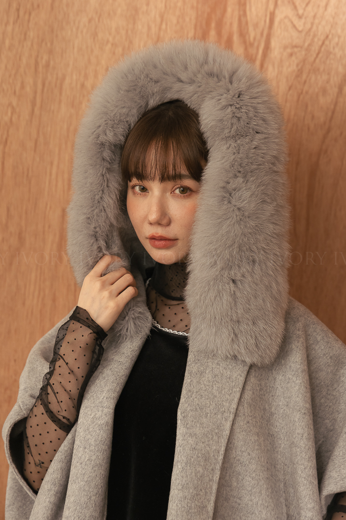 J51049超美高質感澎澎毛連帽羊毛斗篷大衣