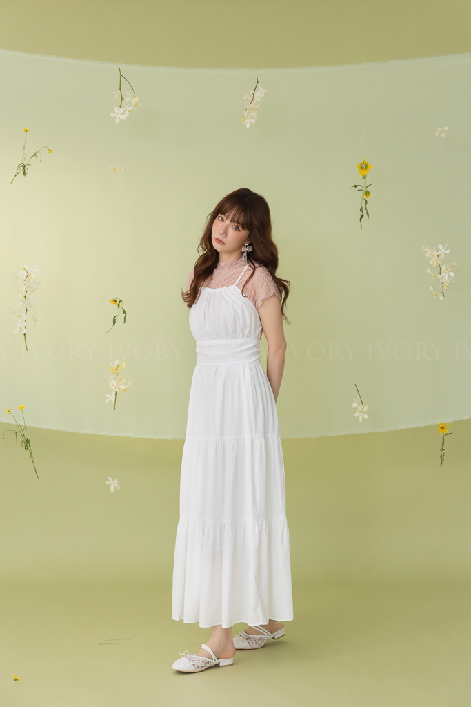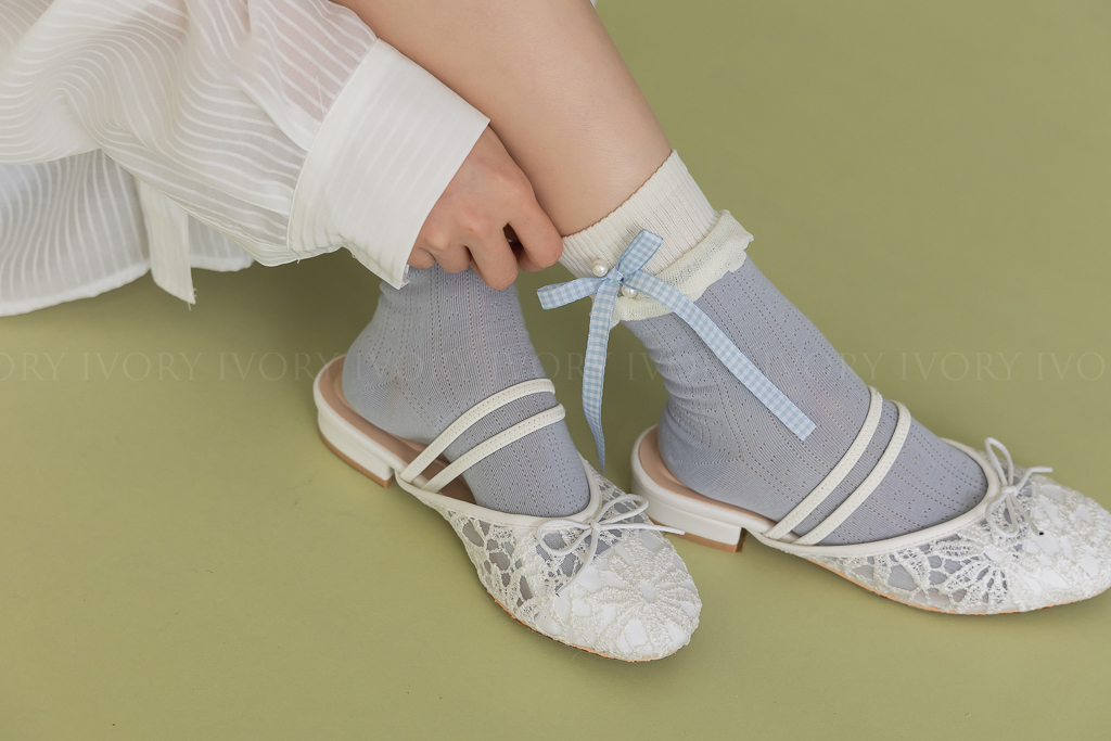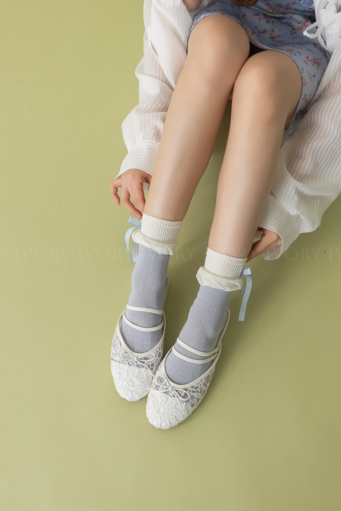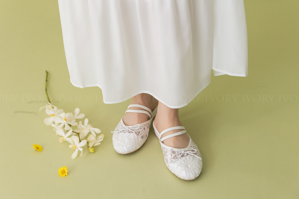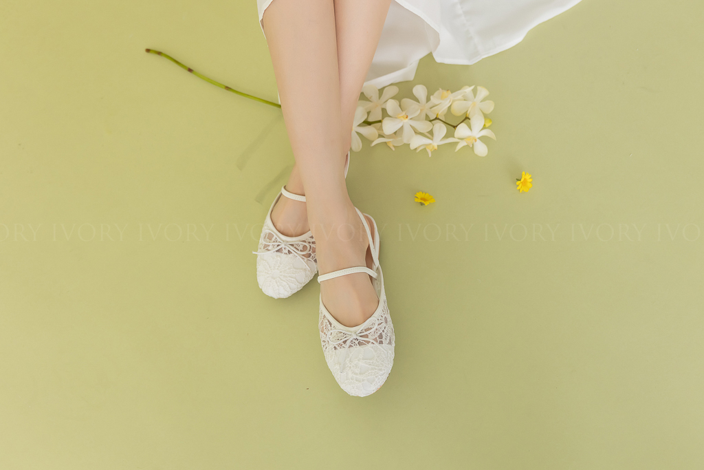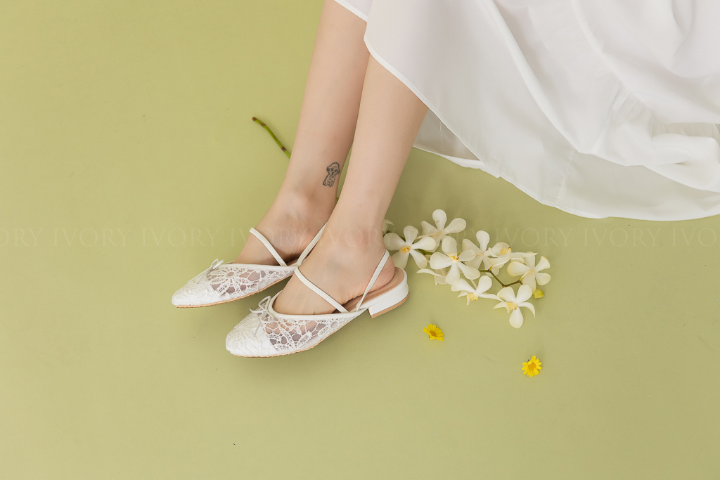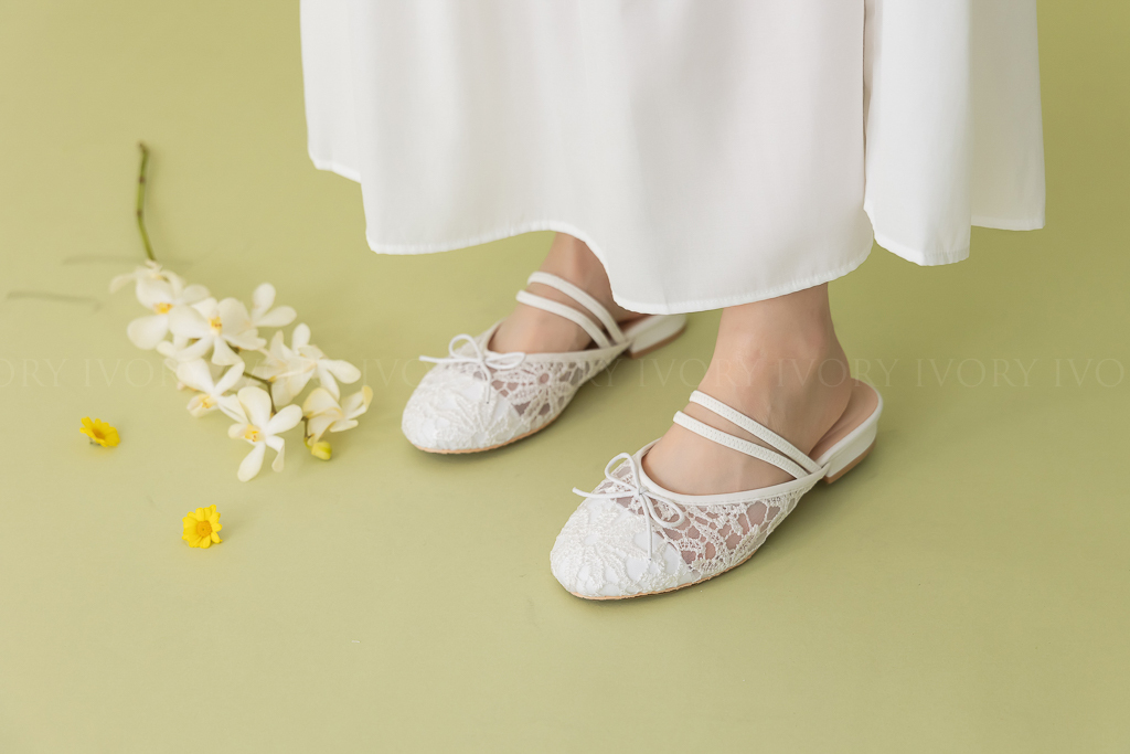 J56051美美透紗花朵蕾絲雙細帶穆勒鞋