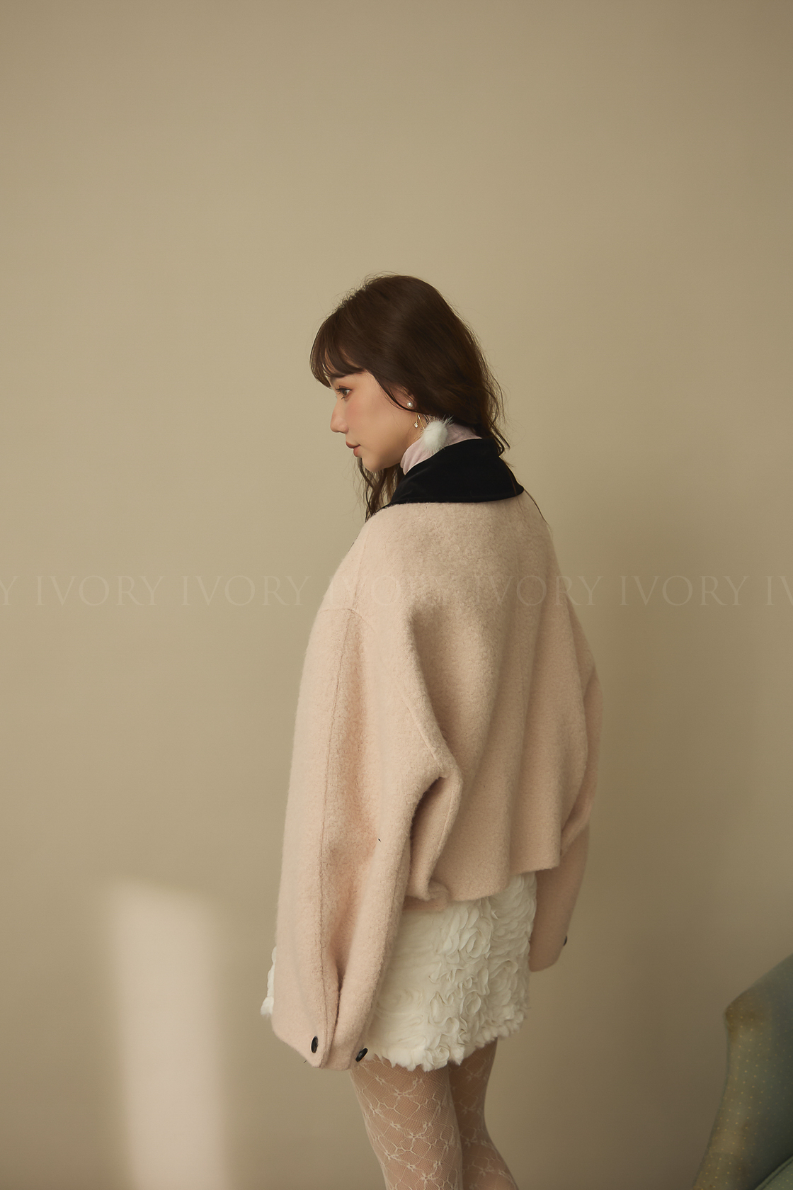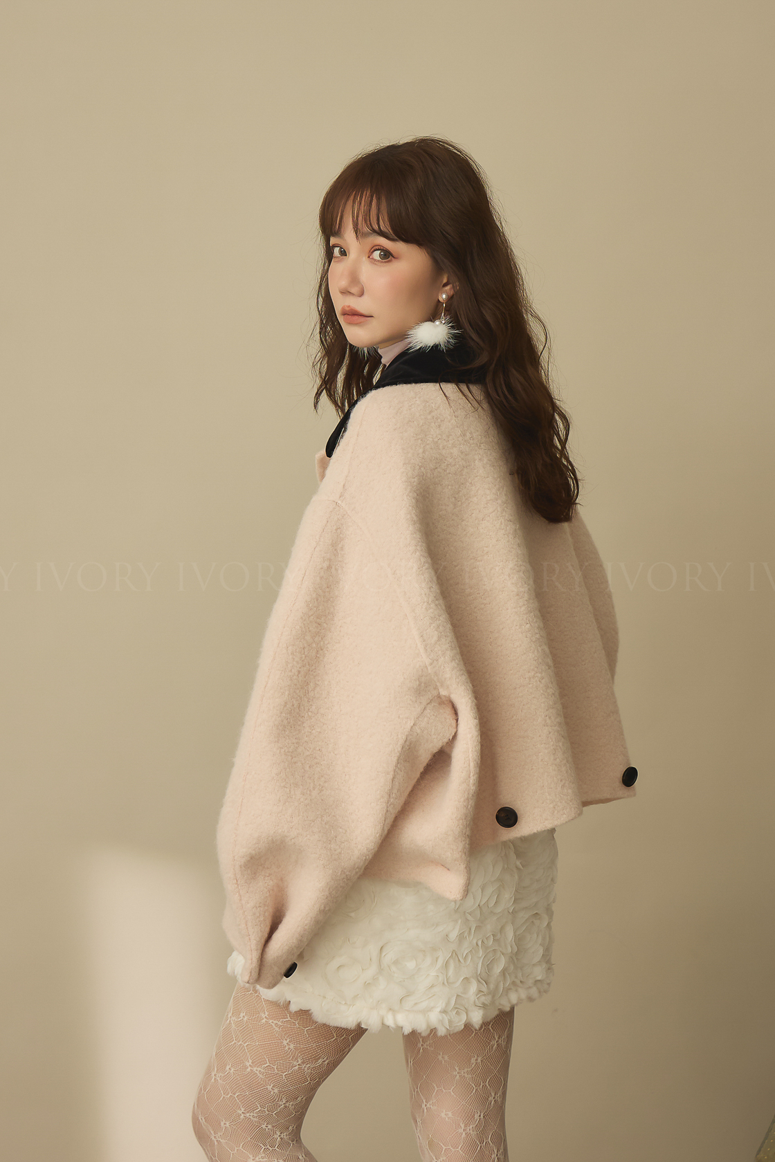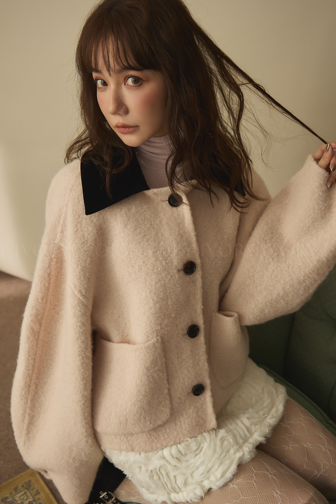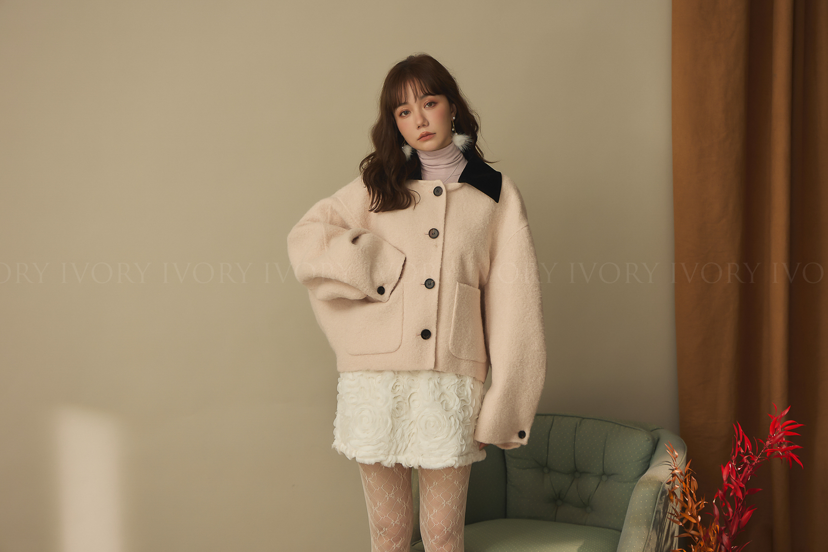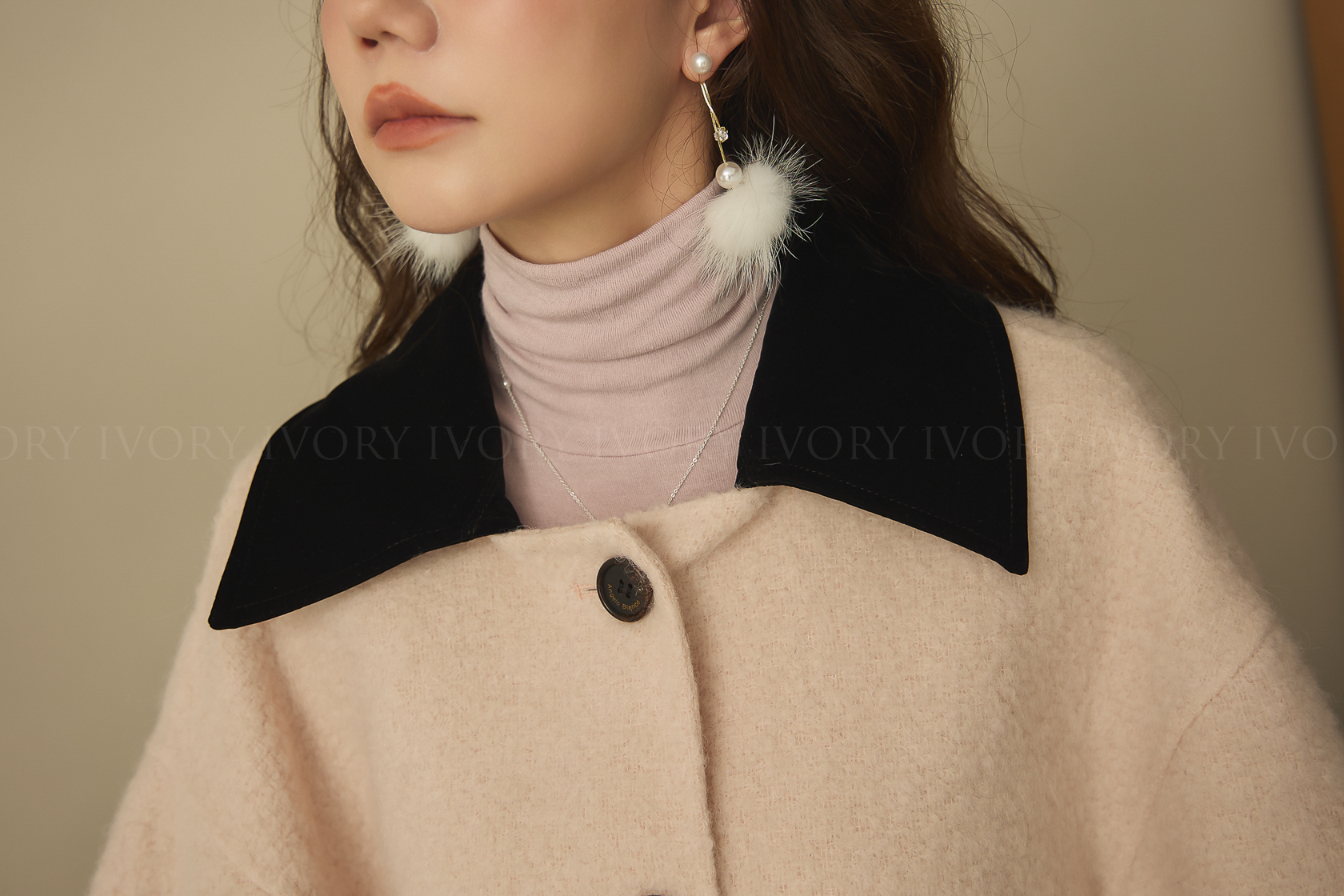 J60156軟軟棉花糖撞色領片繭型羊毛外套