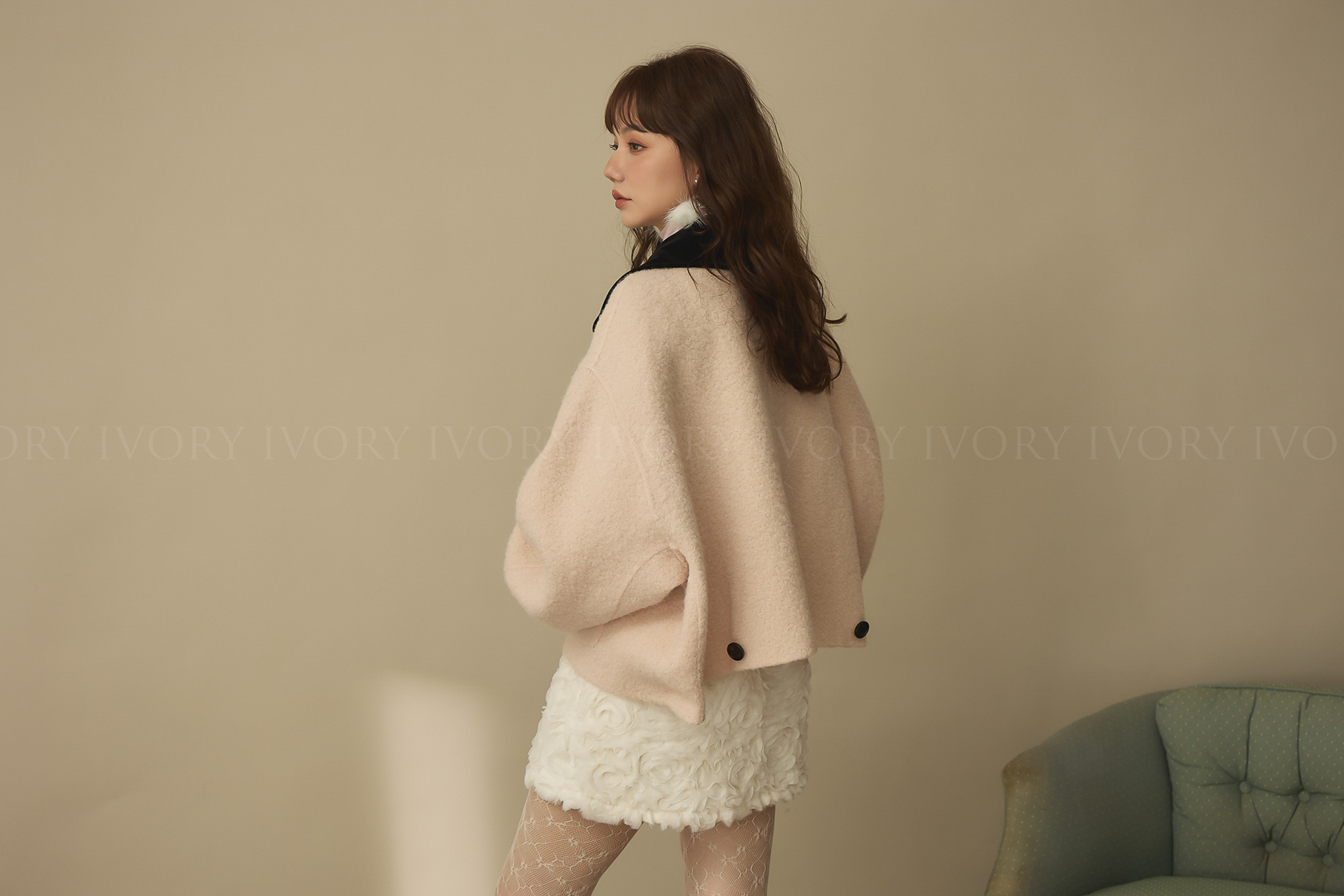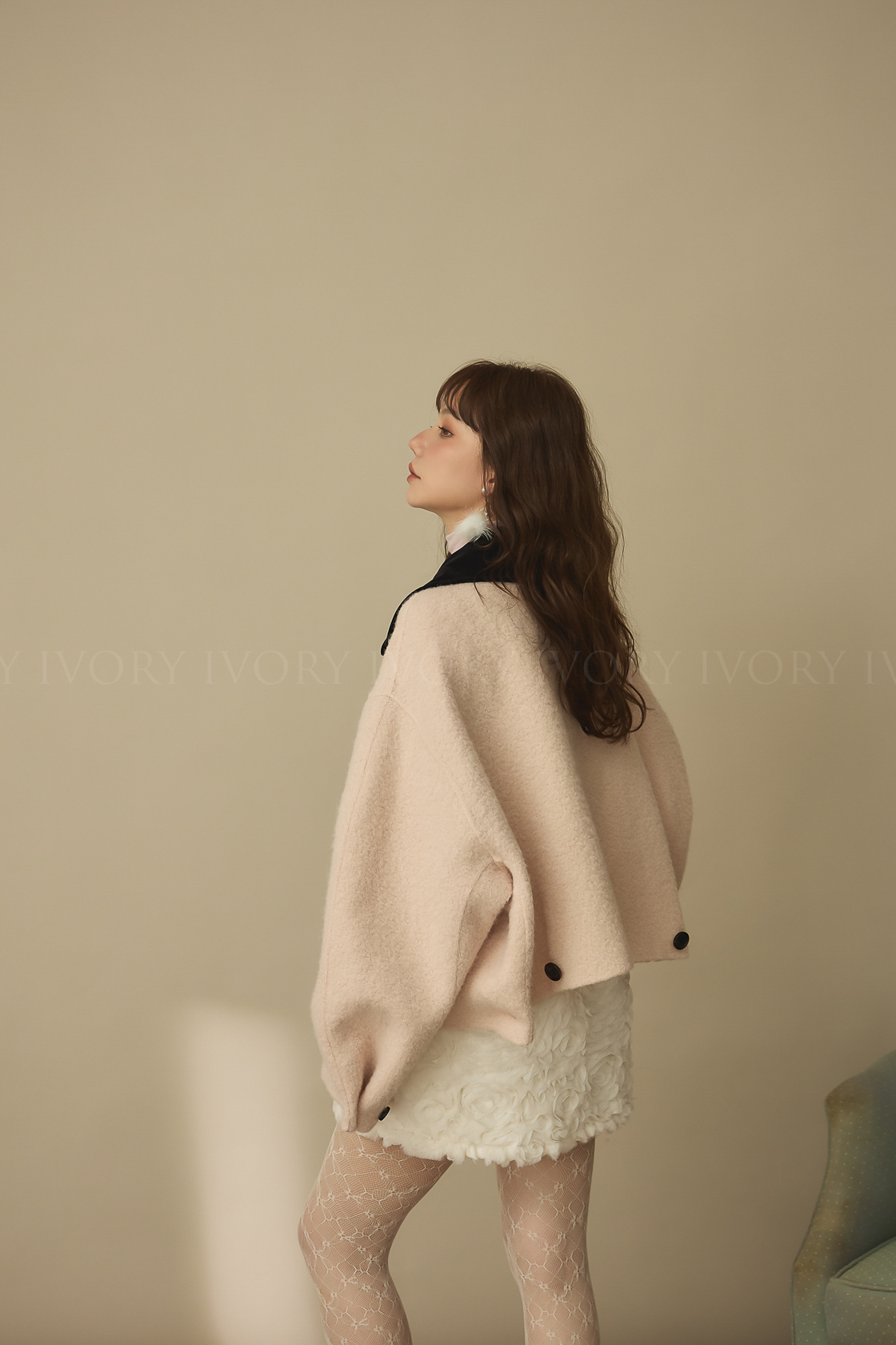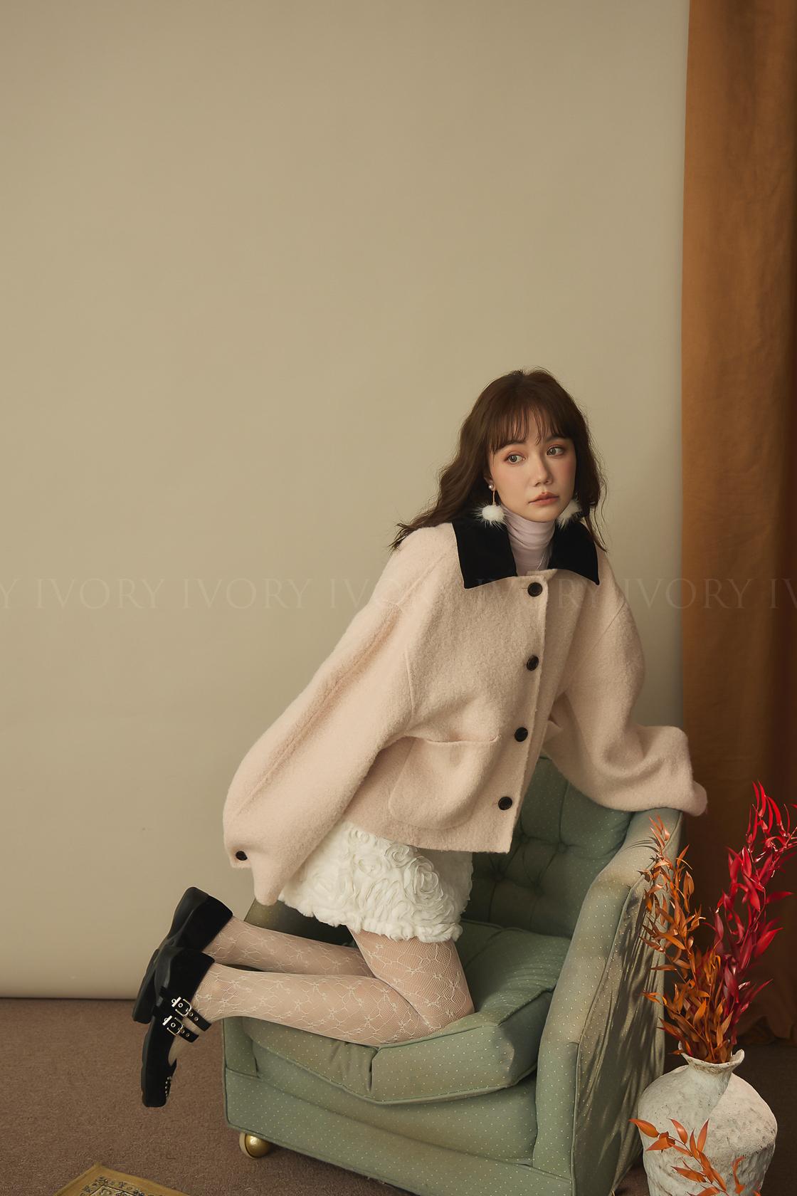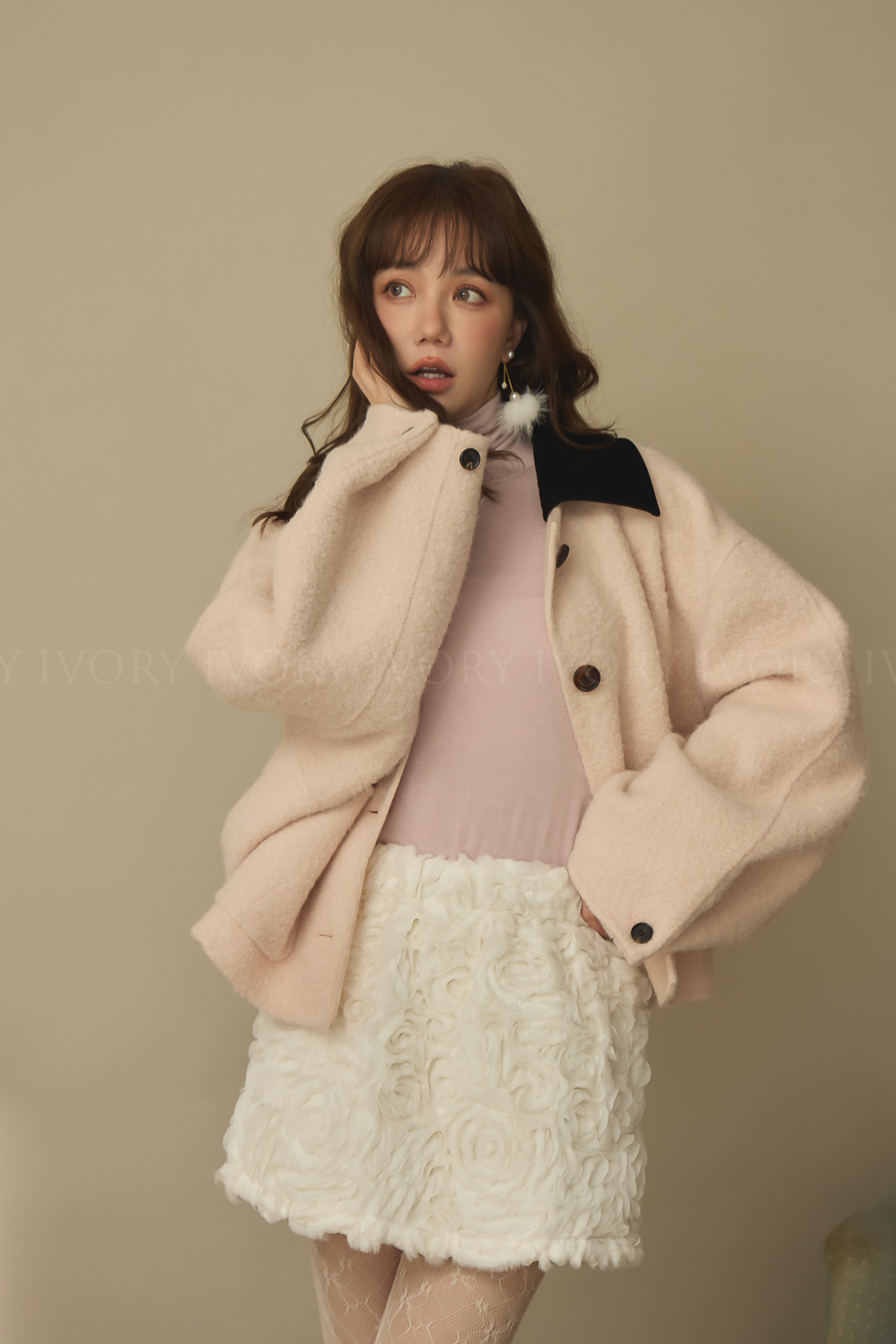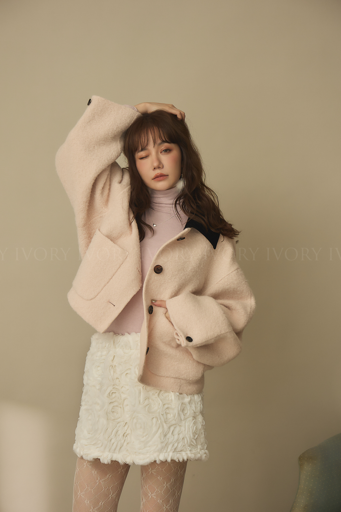 J60156軟軟棉花糖撞色領片繭型羊毛外套