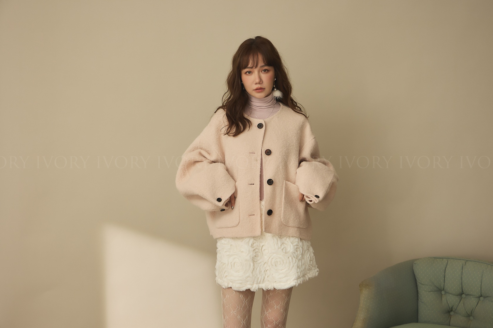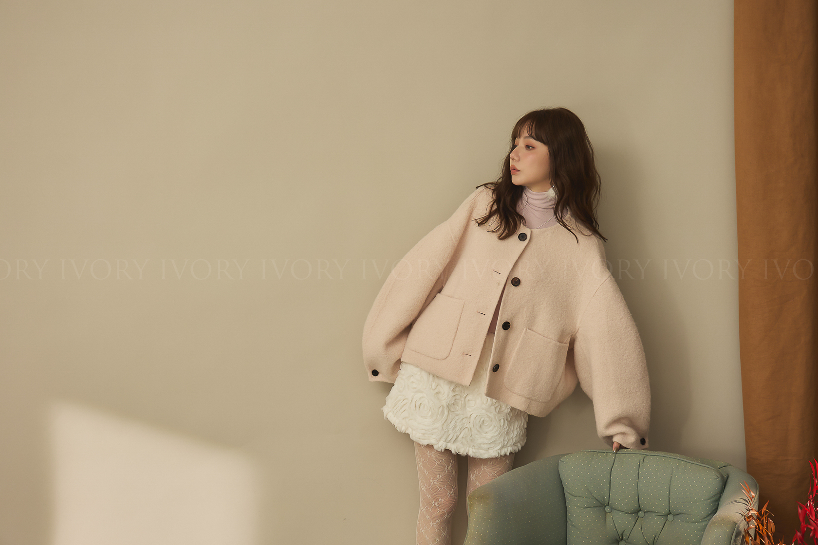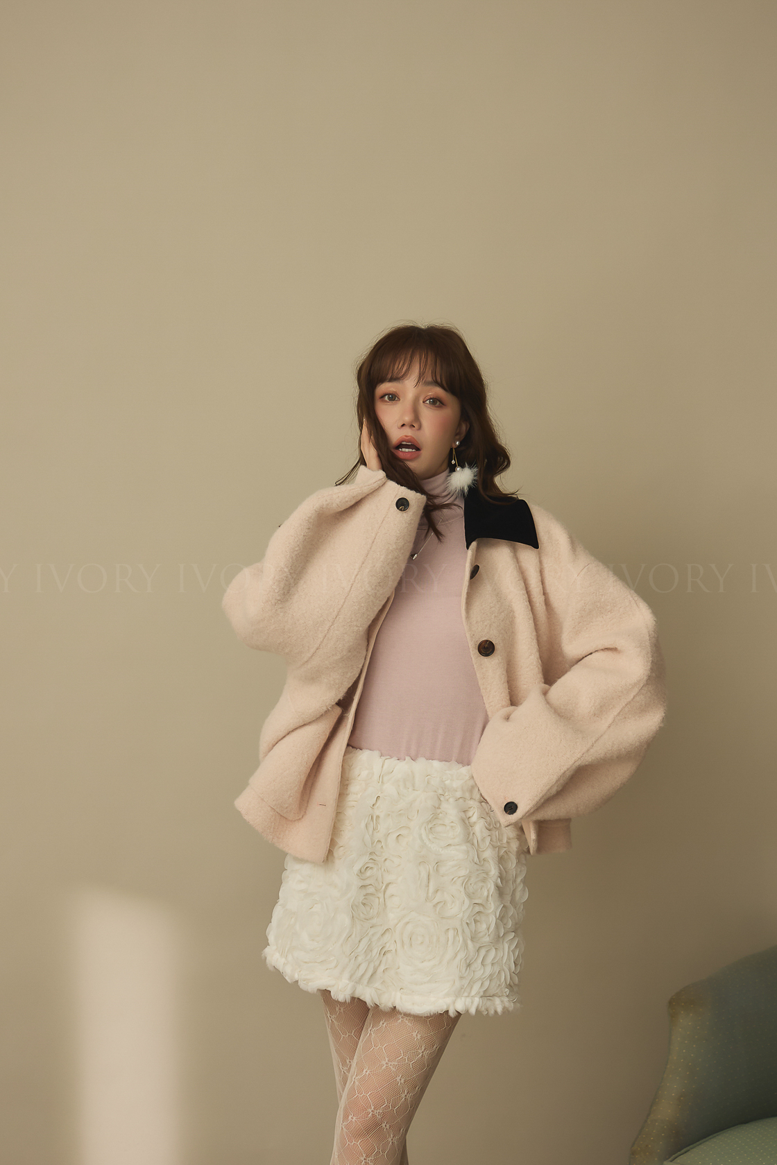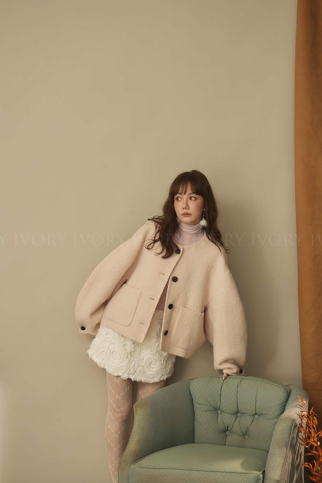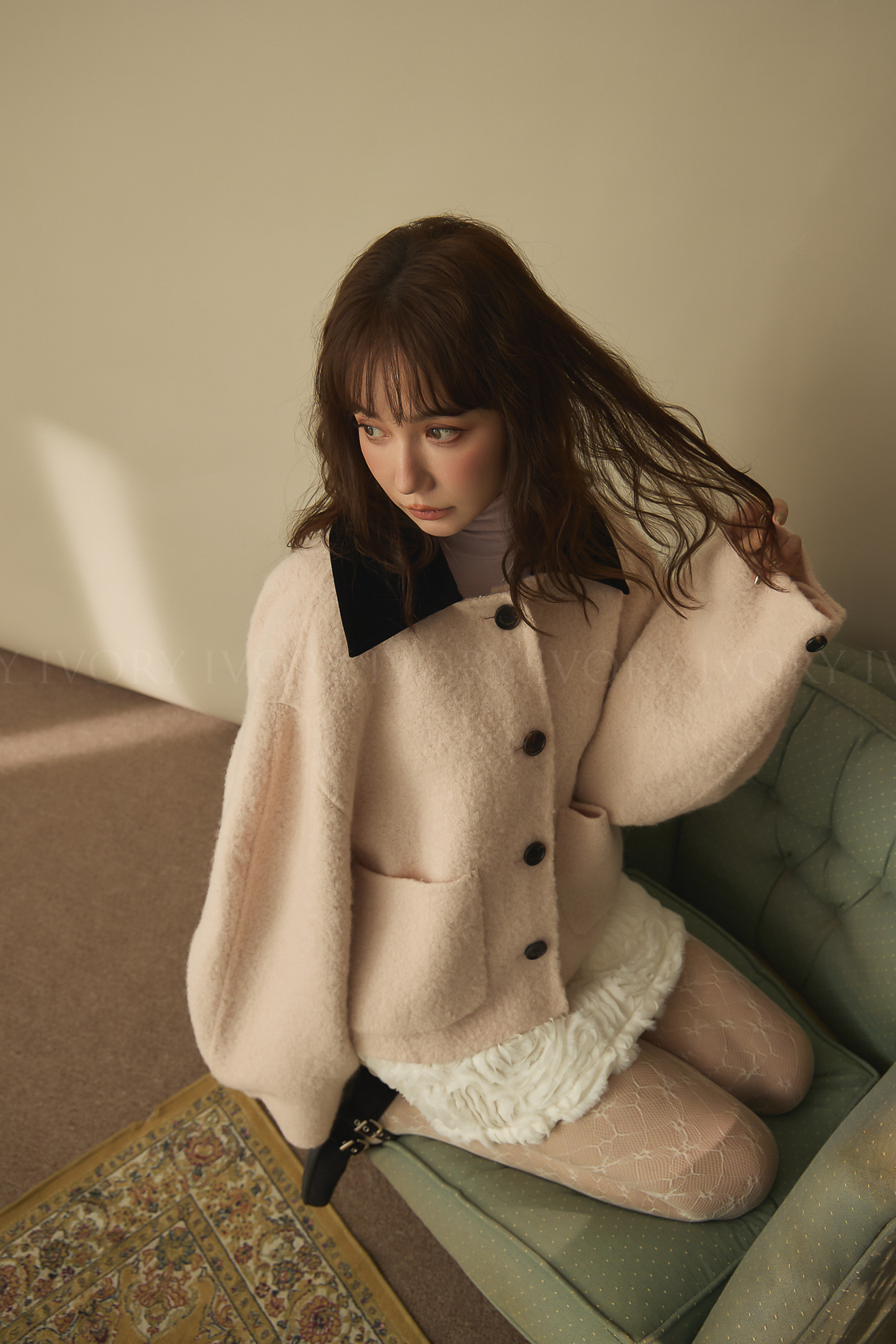 J60156軟軟棉花糖撞色領片繭型羊毛外套