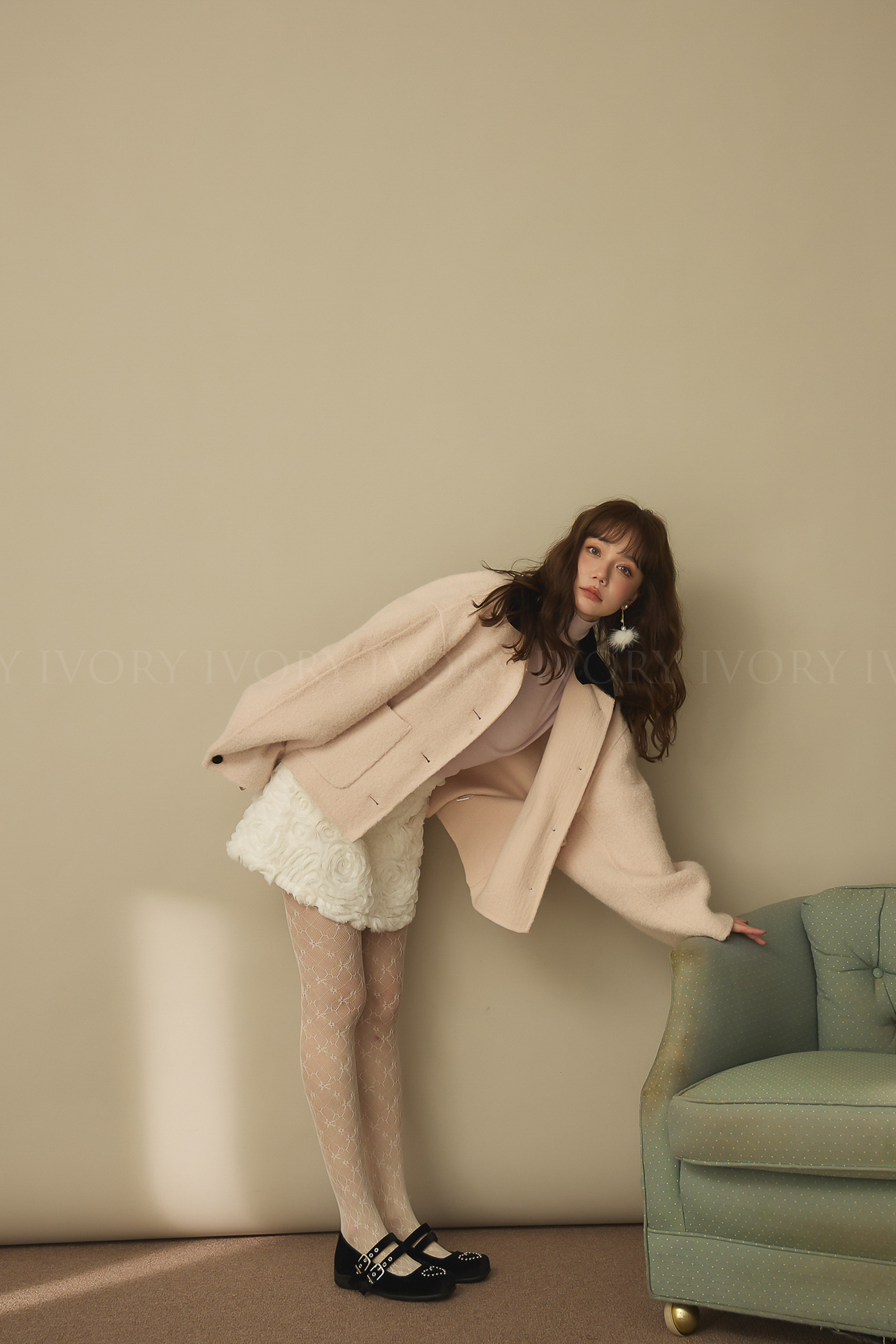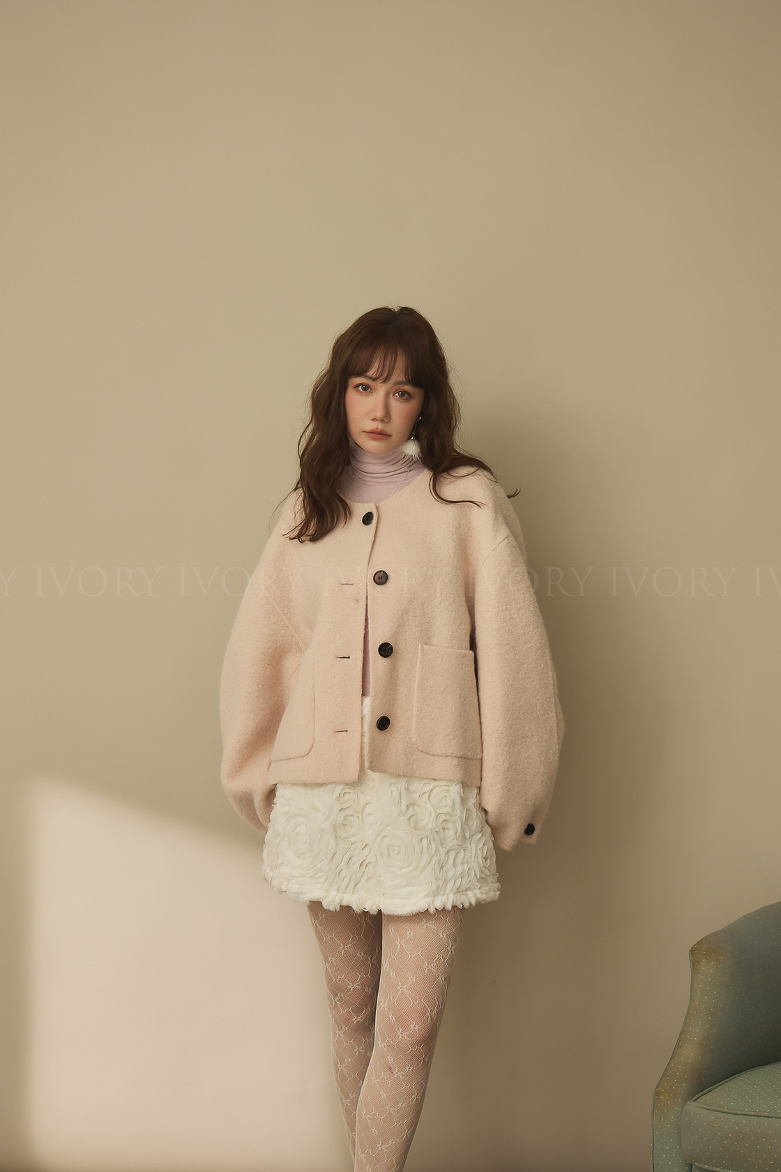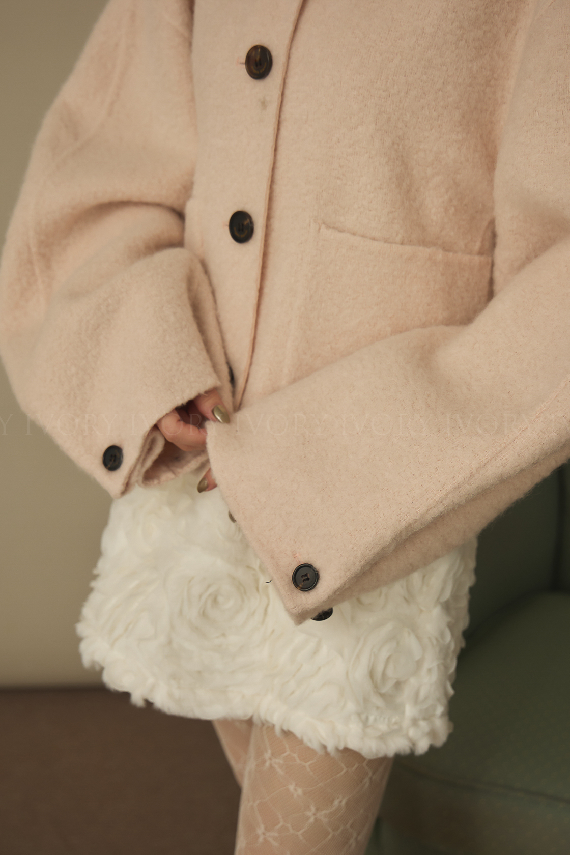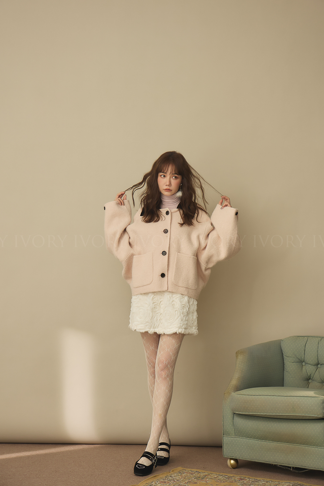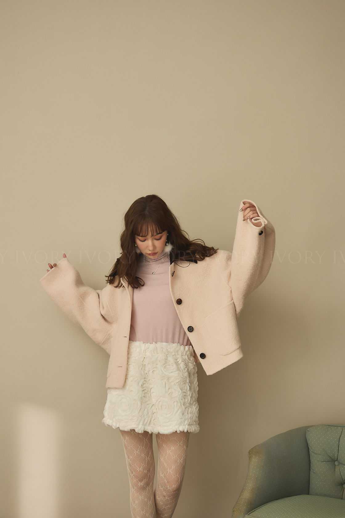 J60156軟軟棉花糖撞色領片繭型羊毛外套