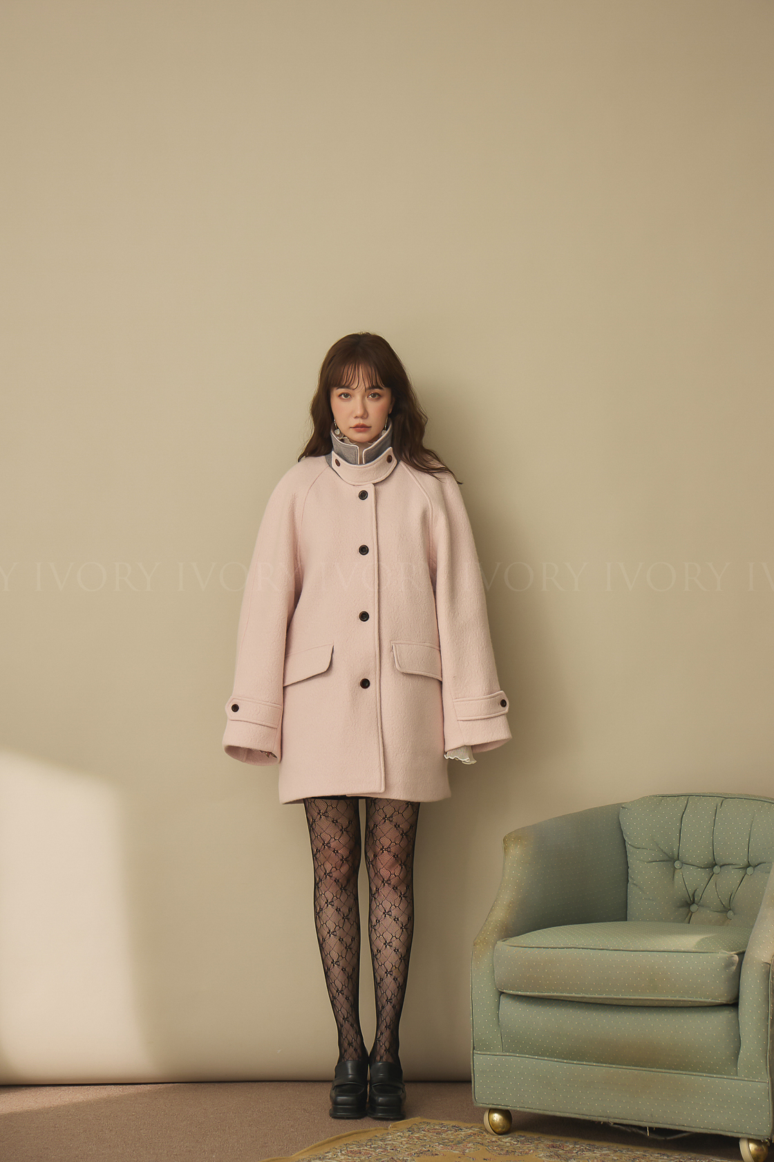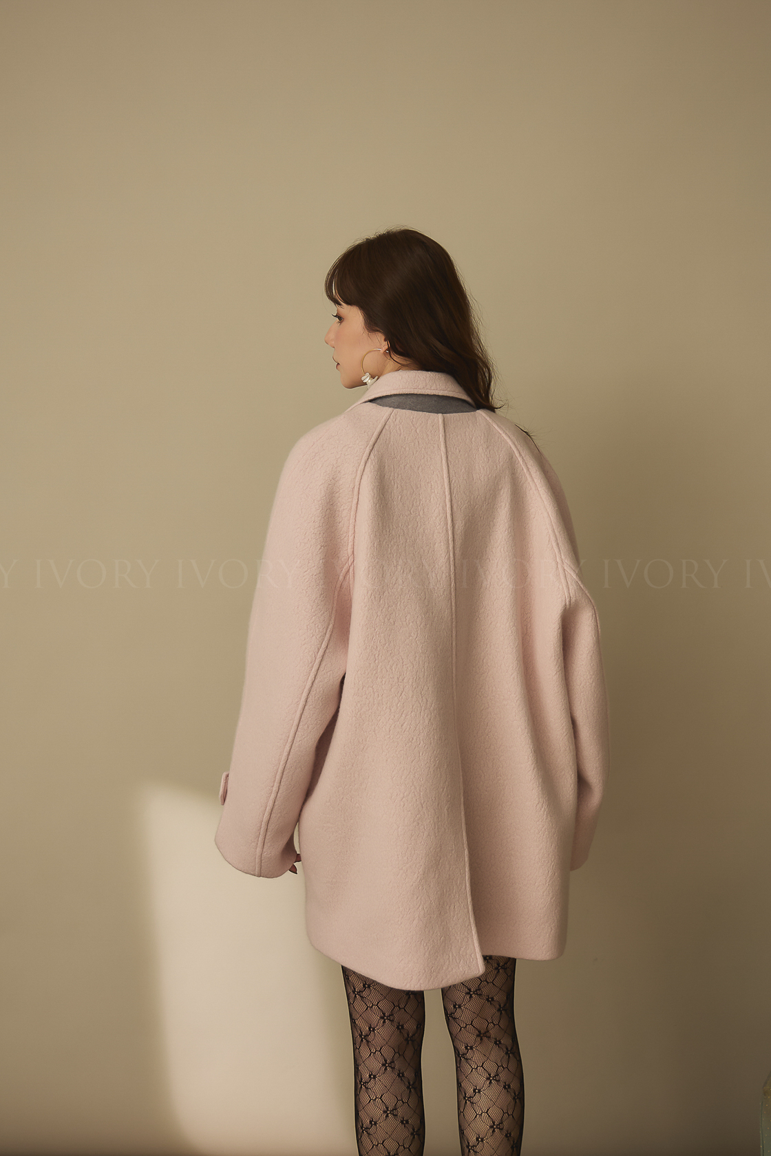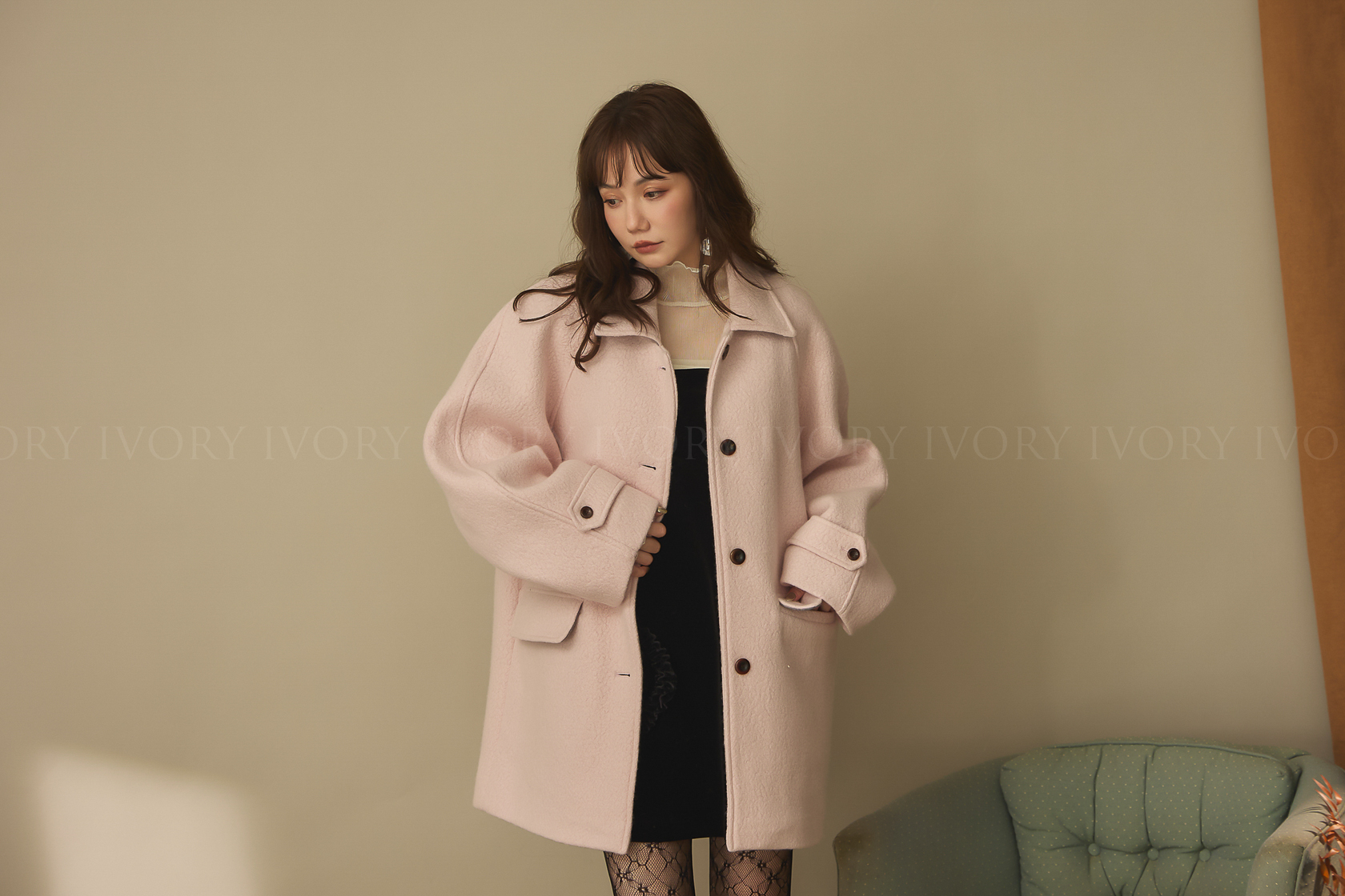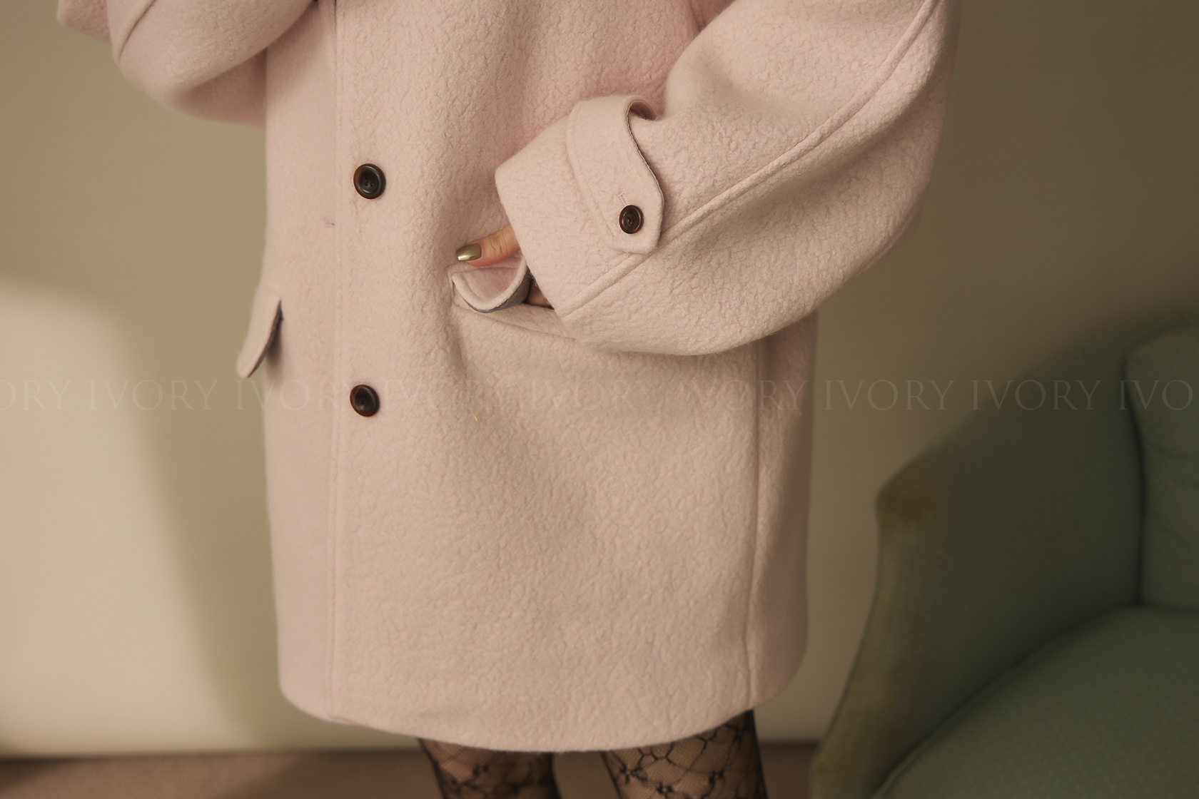 J60158草莓奶昔領邊撞色顆粒羊毛大衣
