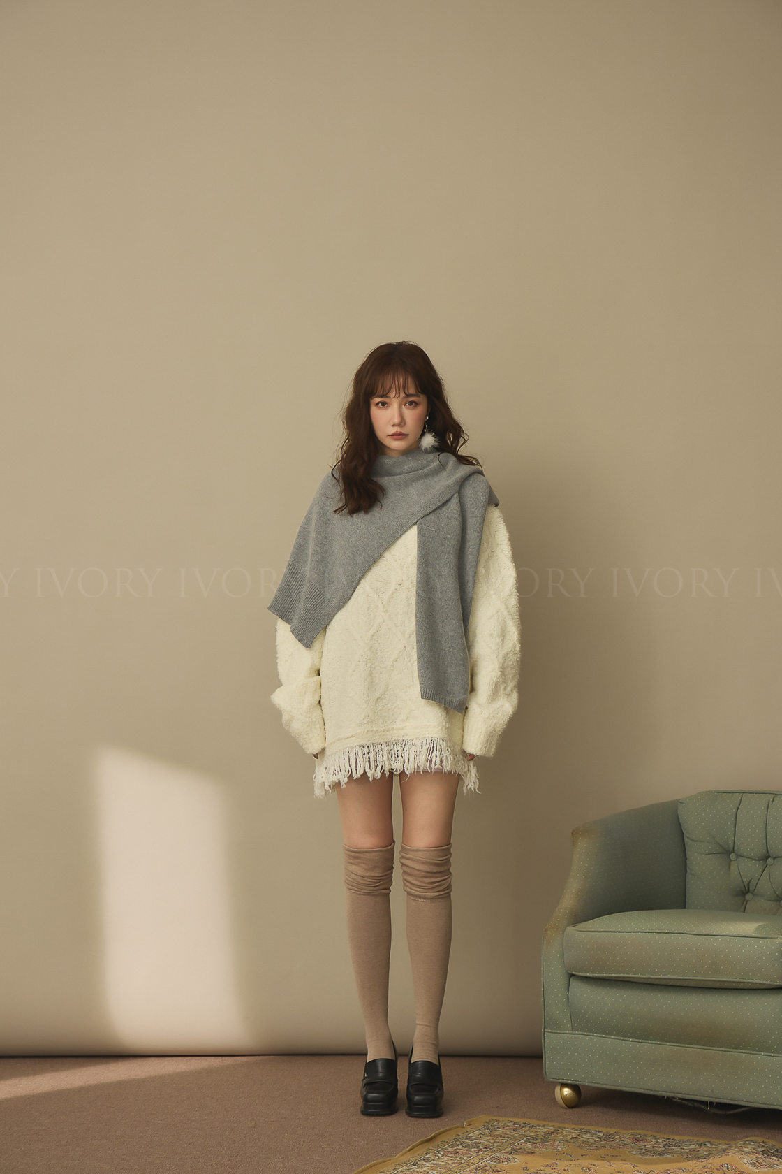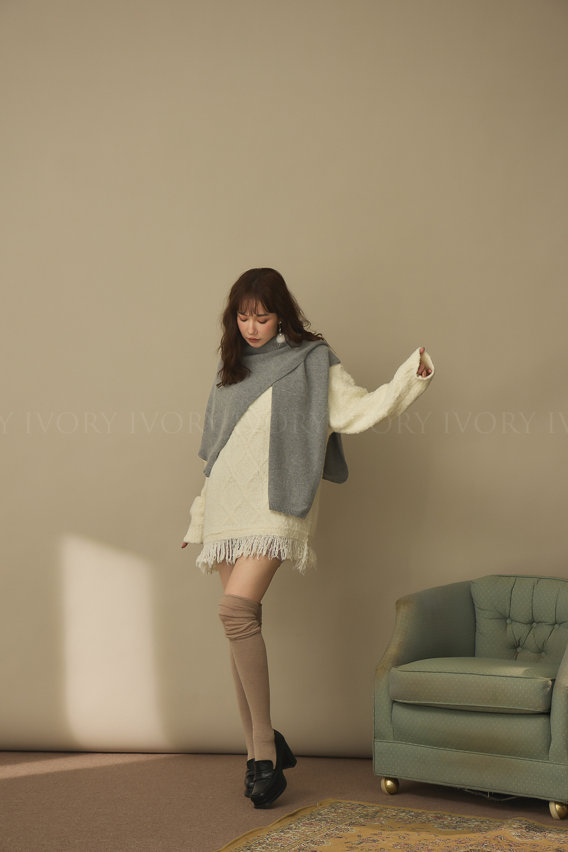 J60174超長腿素面過膝堆堆襪