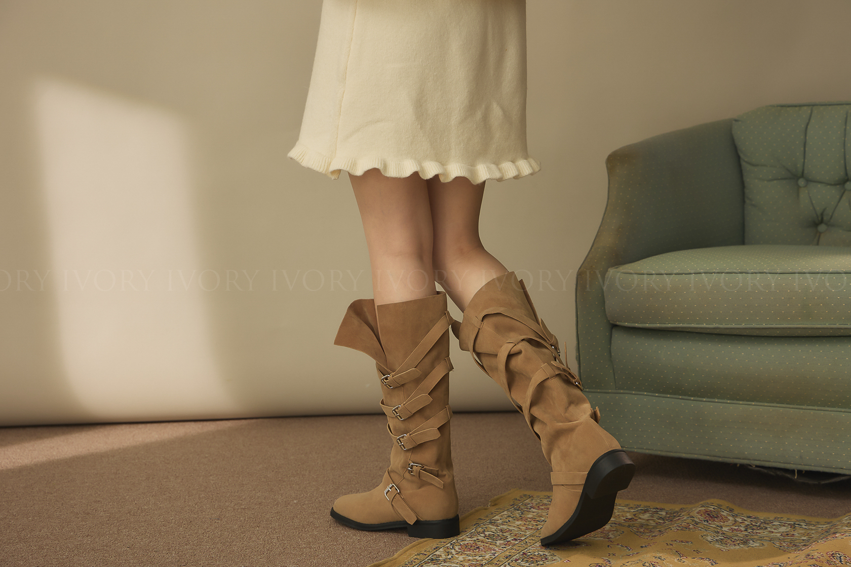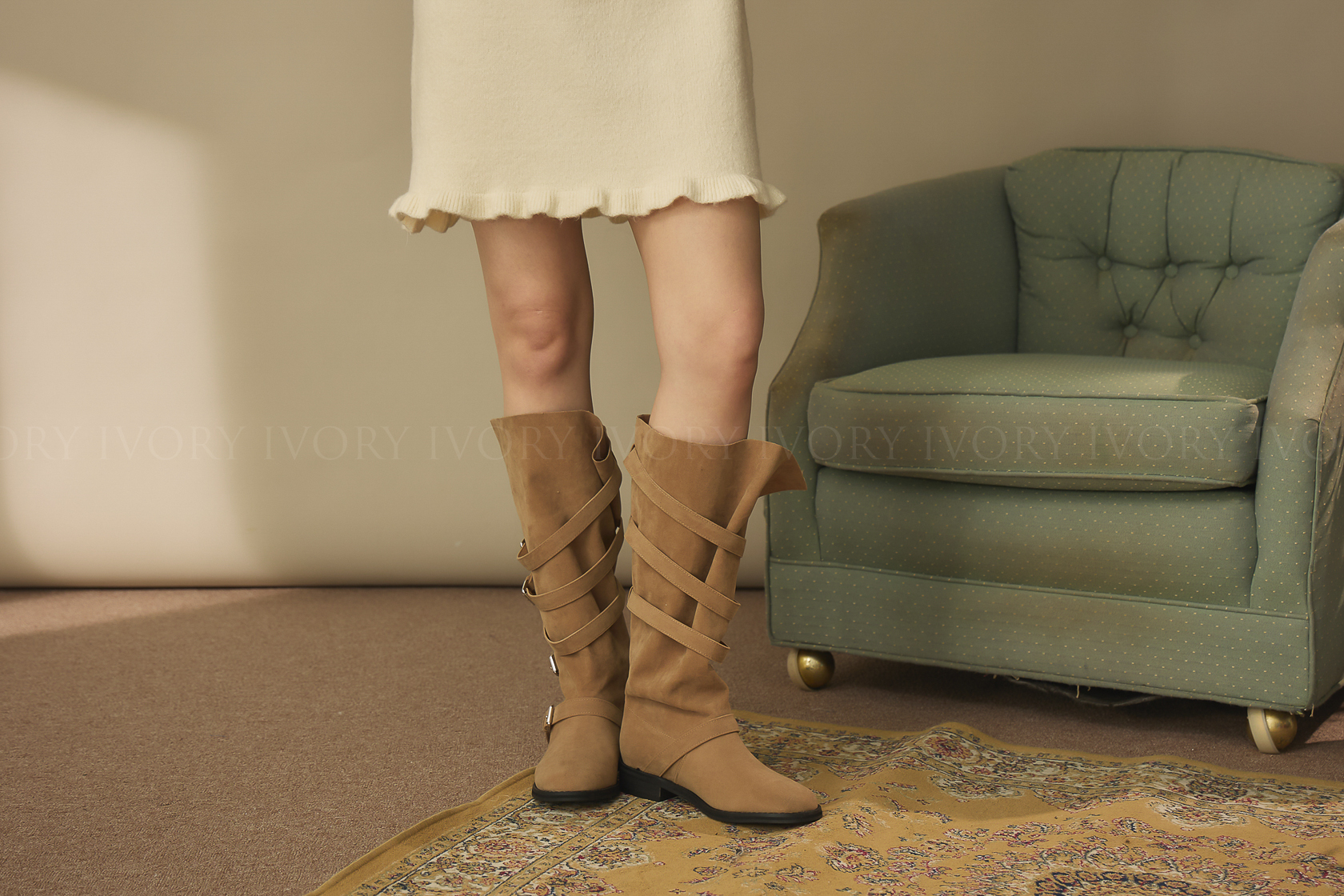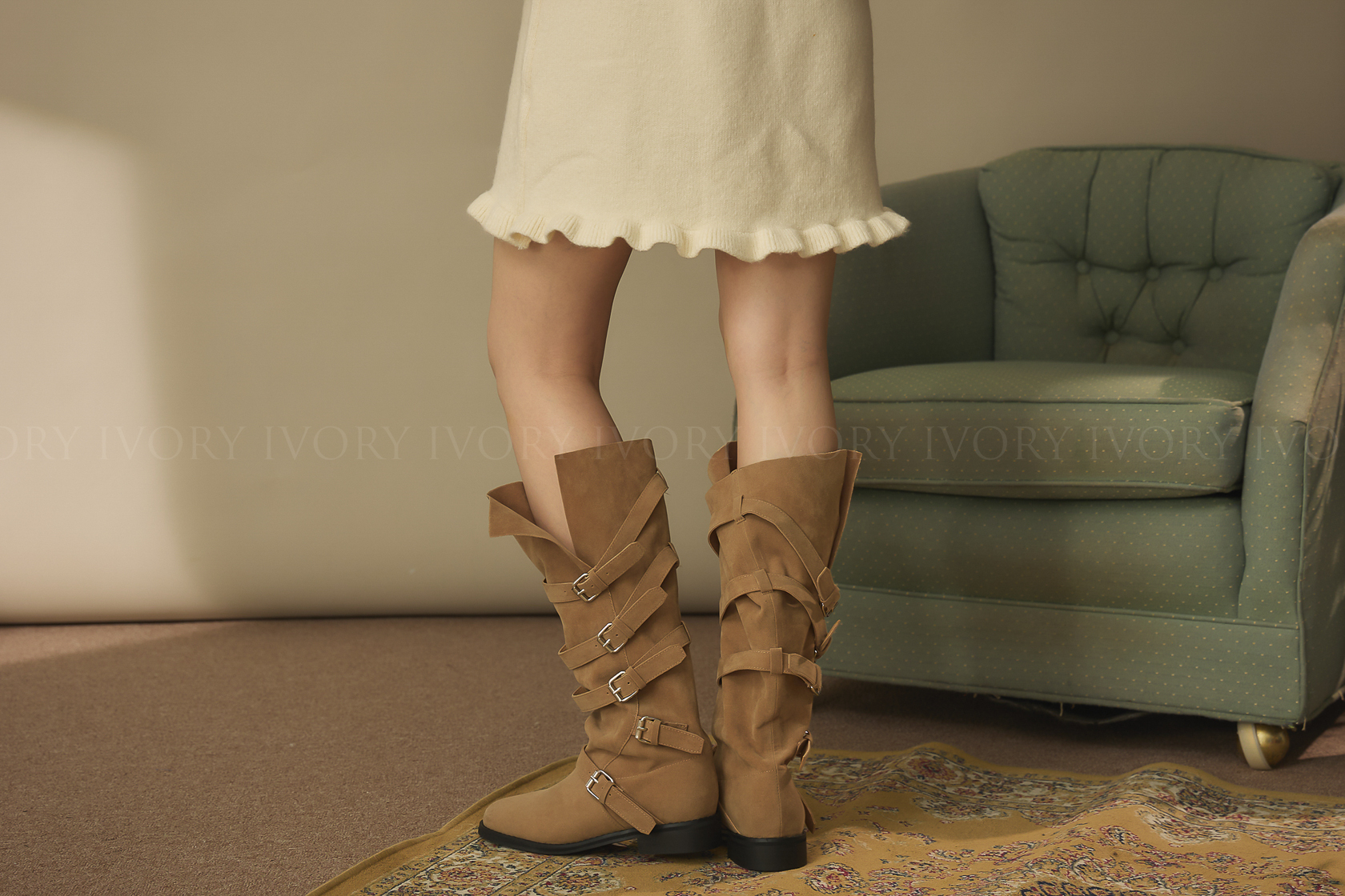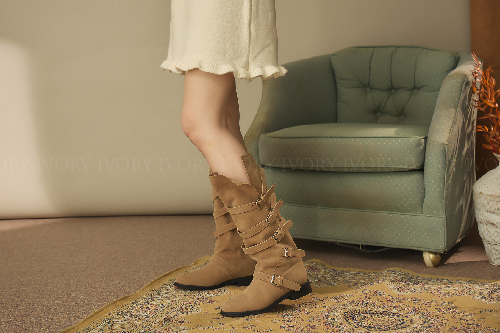 J60193滿版釦環造型側開衩長靴