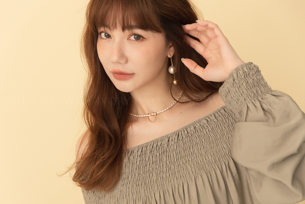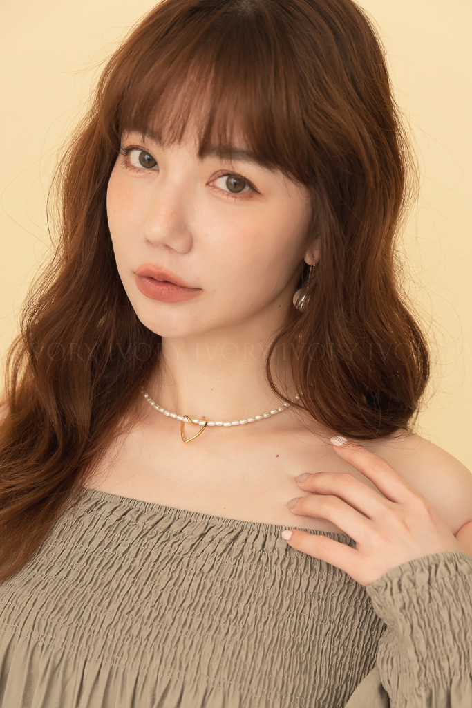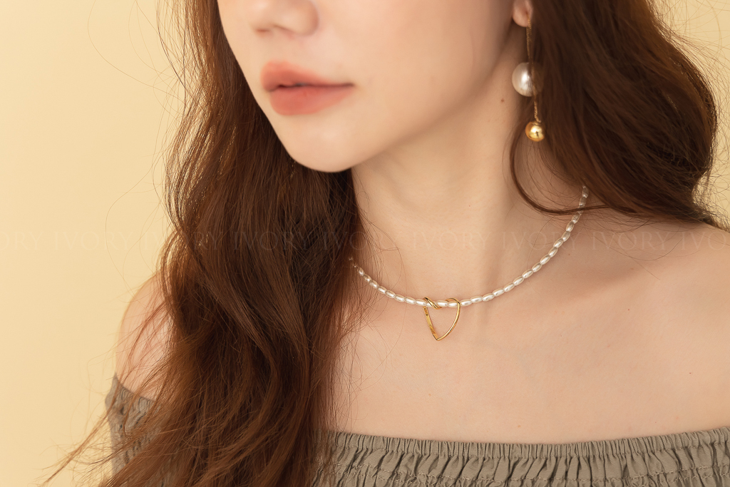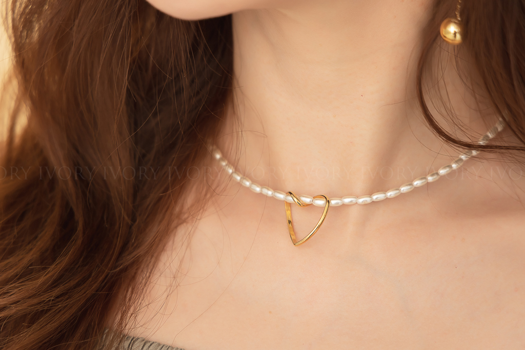 M53049簡約氣質簍空金色愛心珍珠短鍊