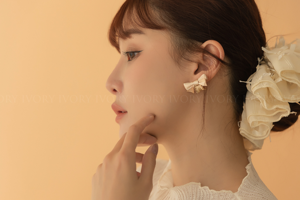 M55062簡約氣質蝴蝶結金色小C字耳環