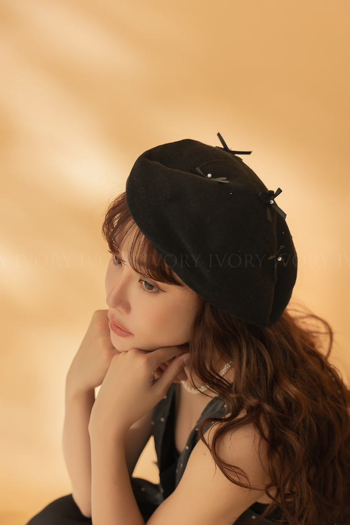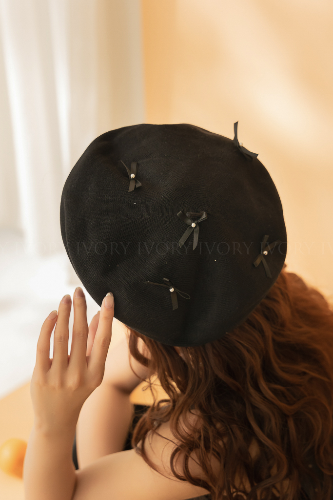 M55065復古甜心蝴蝶結編織貝蕾帽