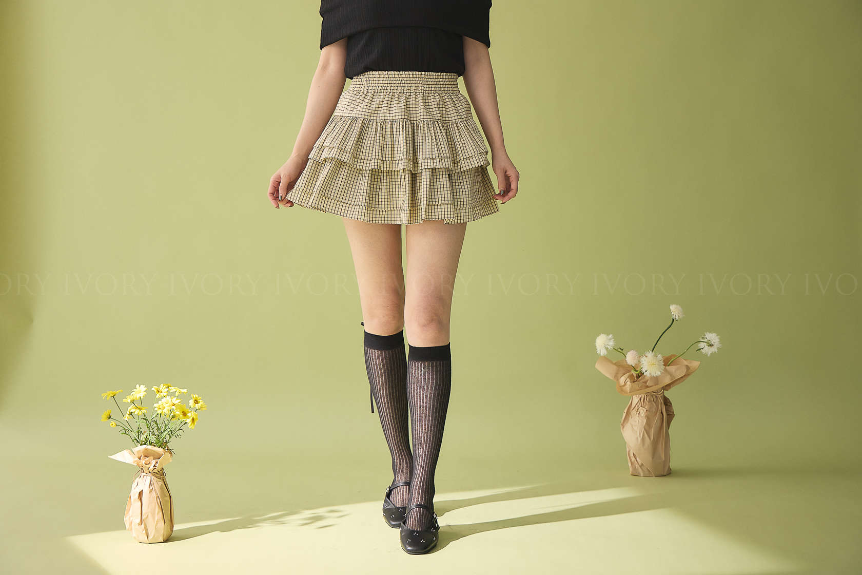 M60301英倫風復古格紋蛋糕小短裙
