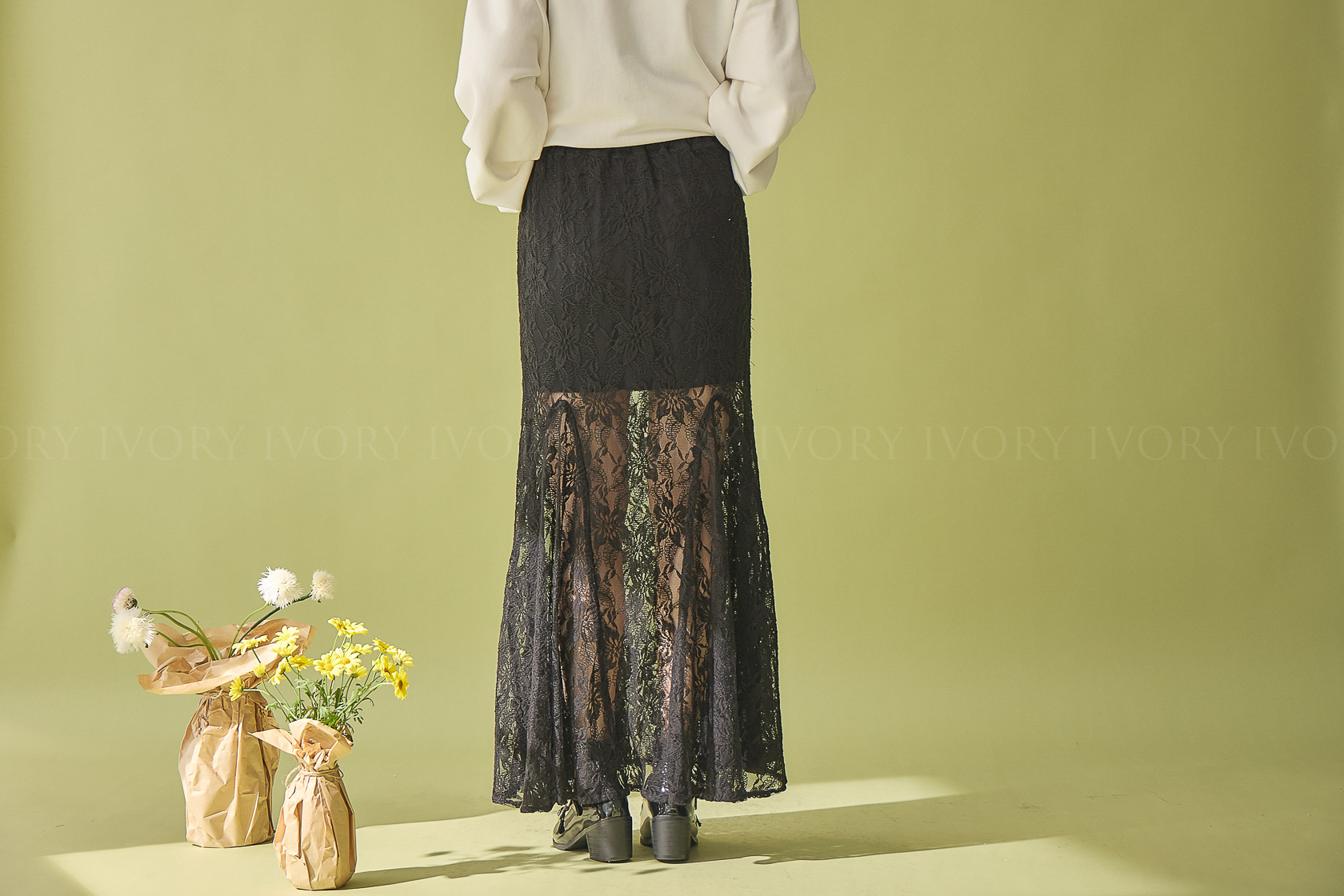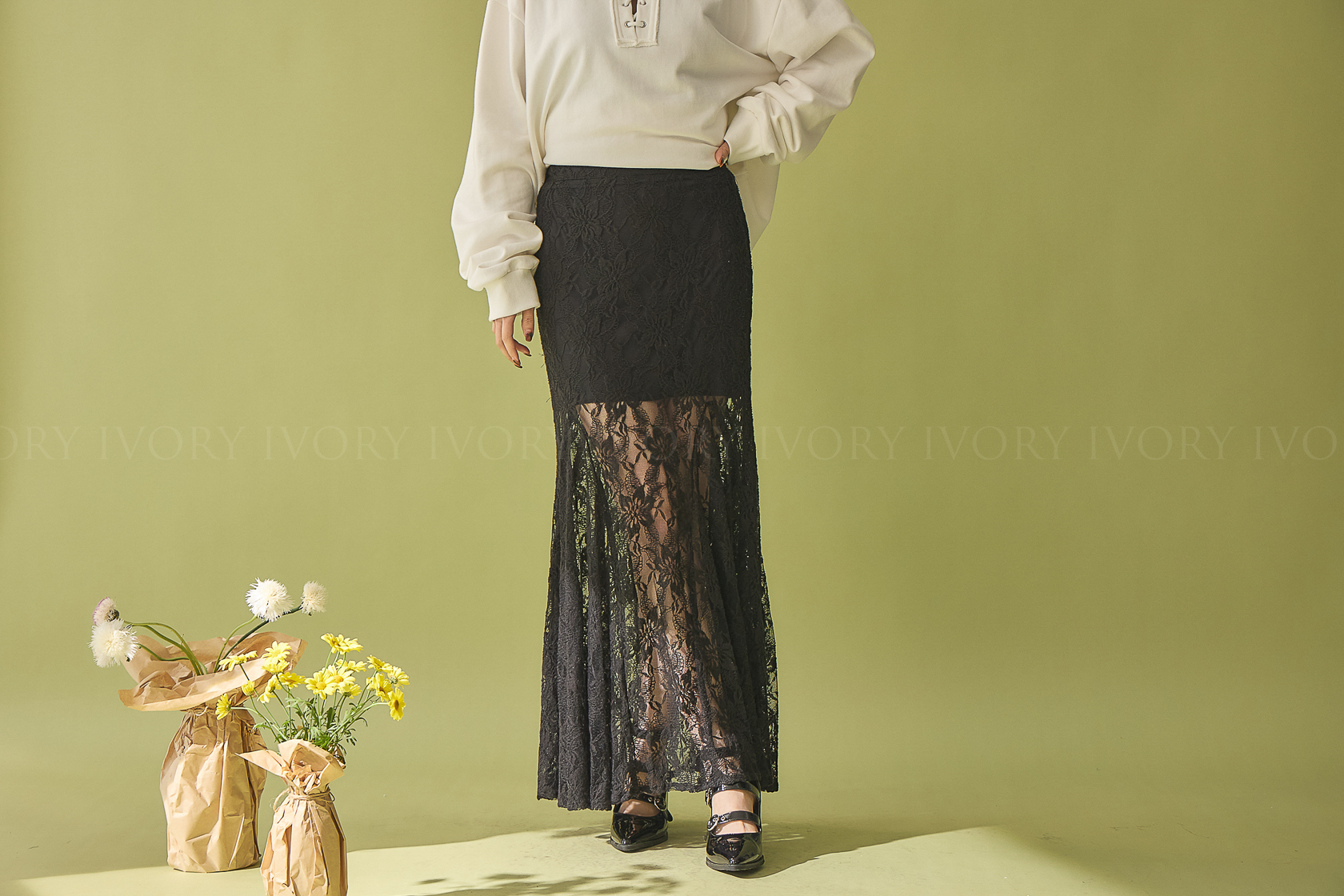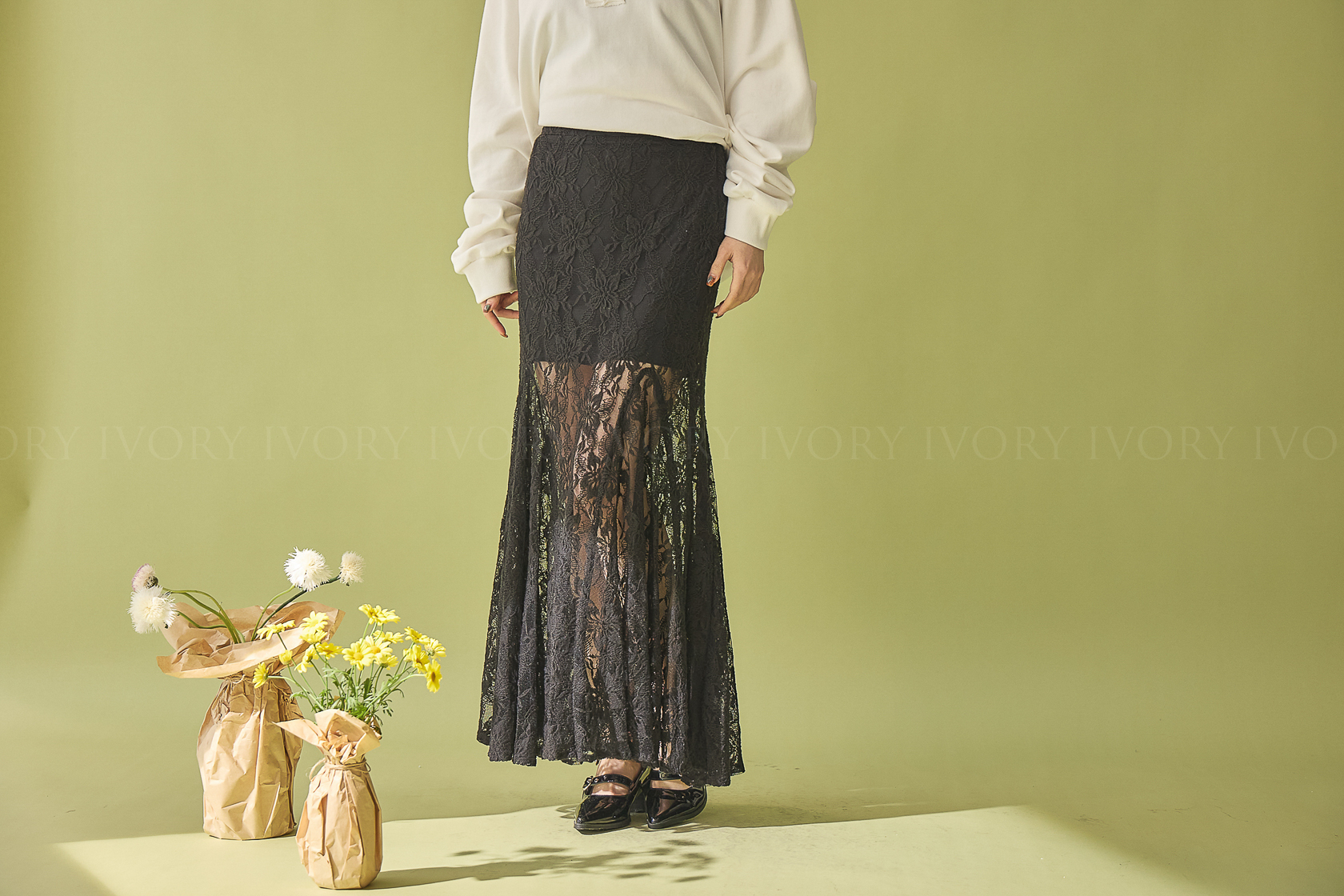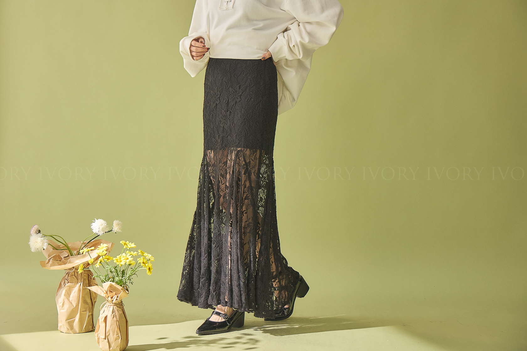 M60307美人魚透紗大花朵蕾絲魚尾長裙