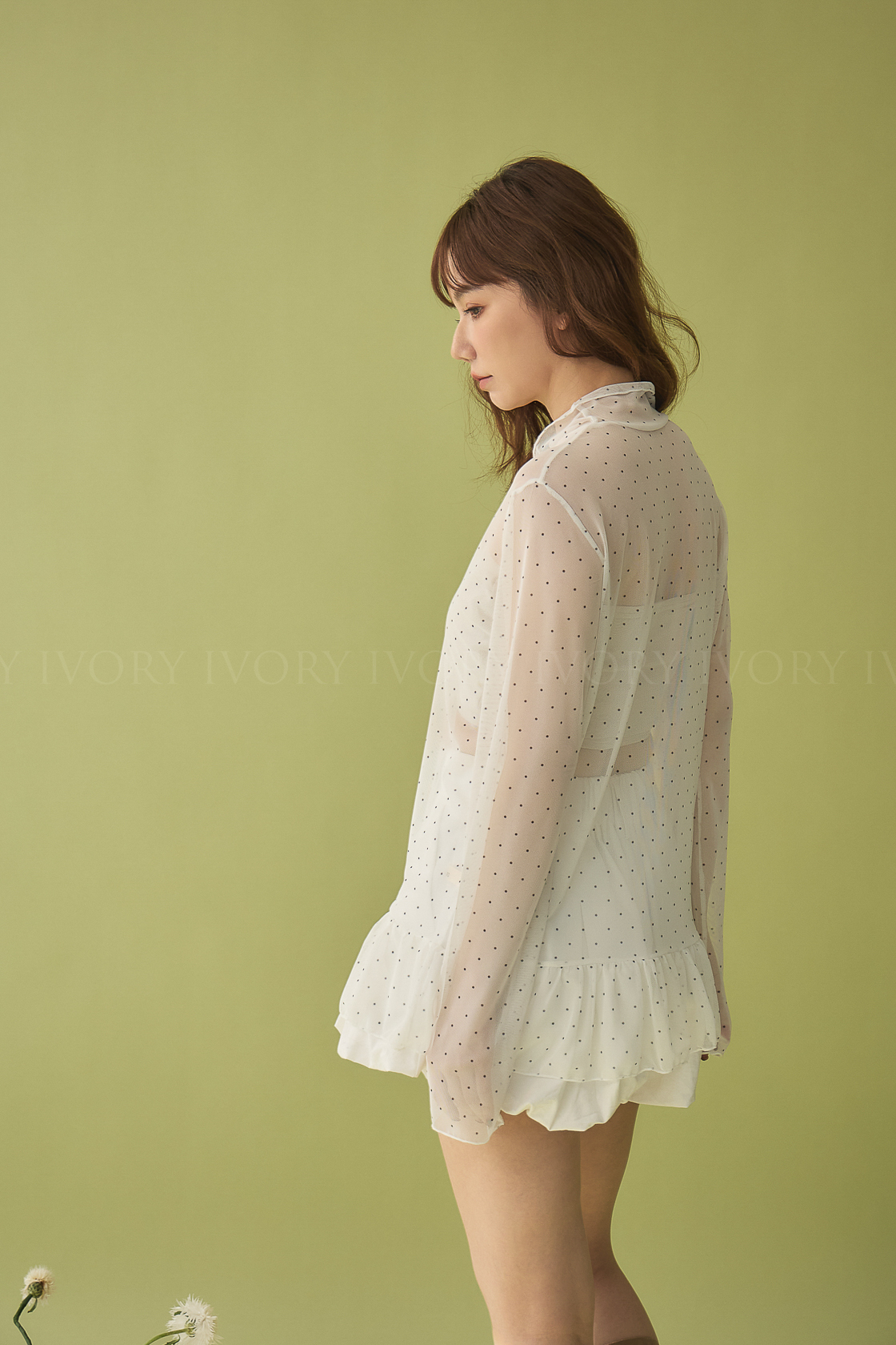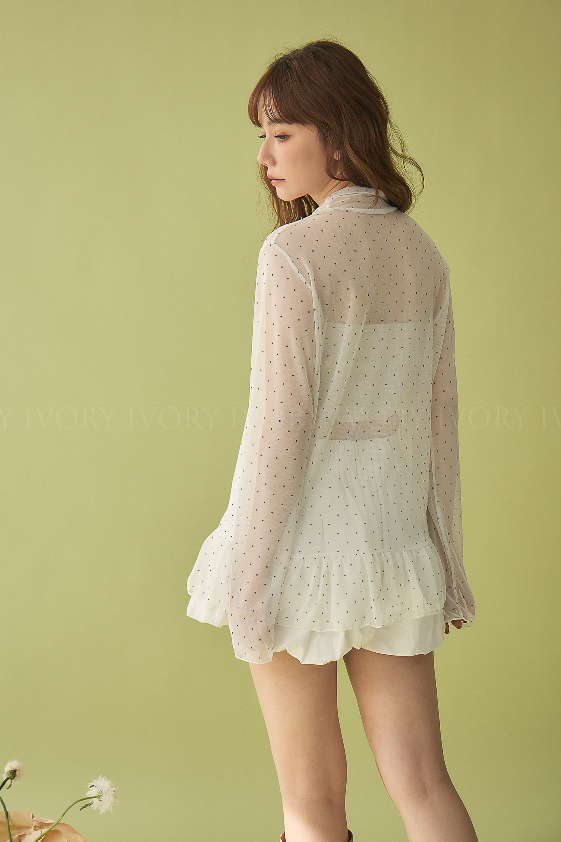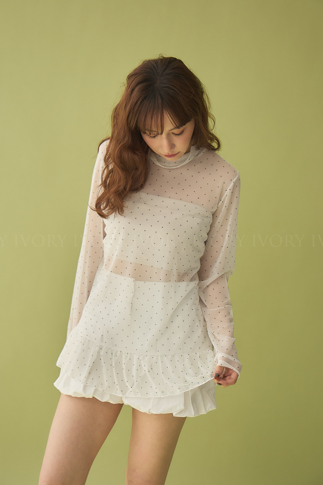 M60323點點透紗小裙擺立領上衣