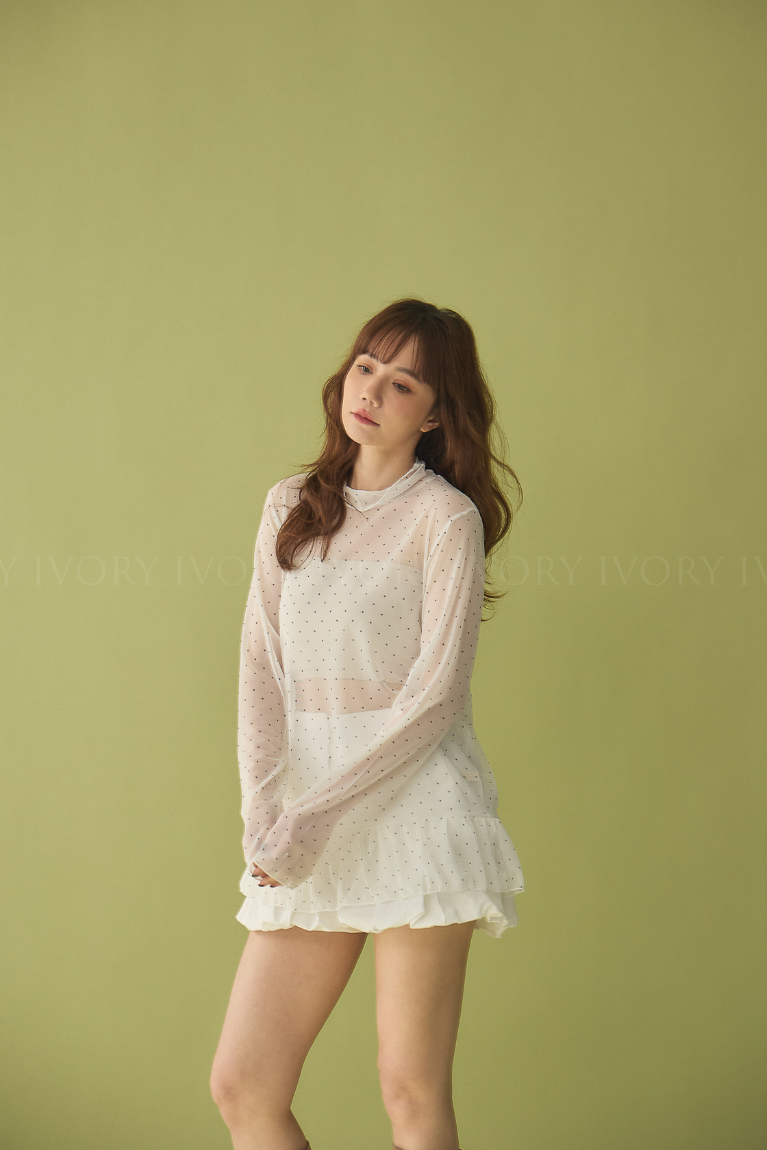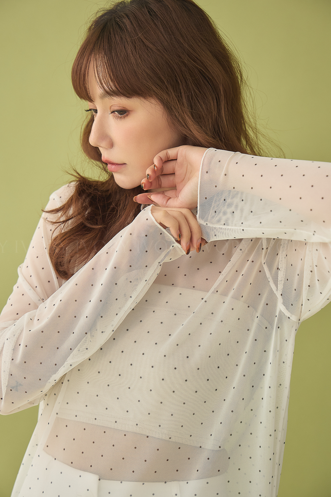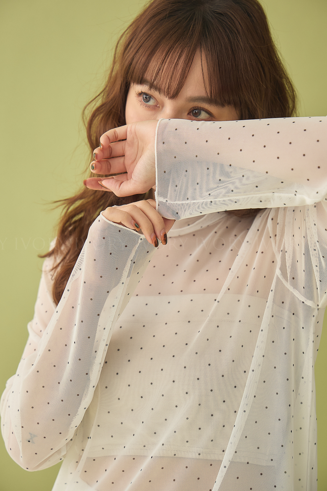 M60323點點透紗小裙擺立領上衣